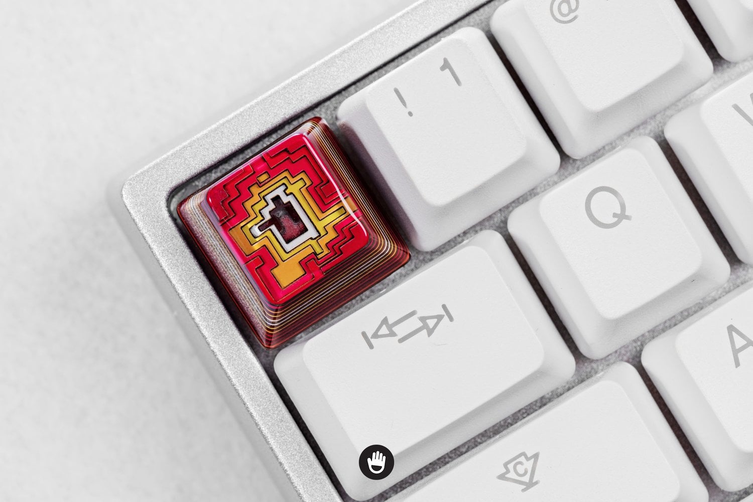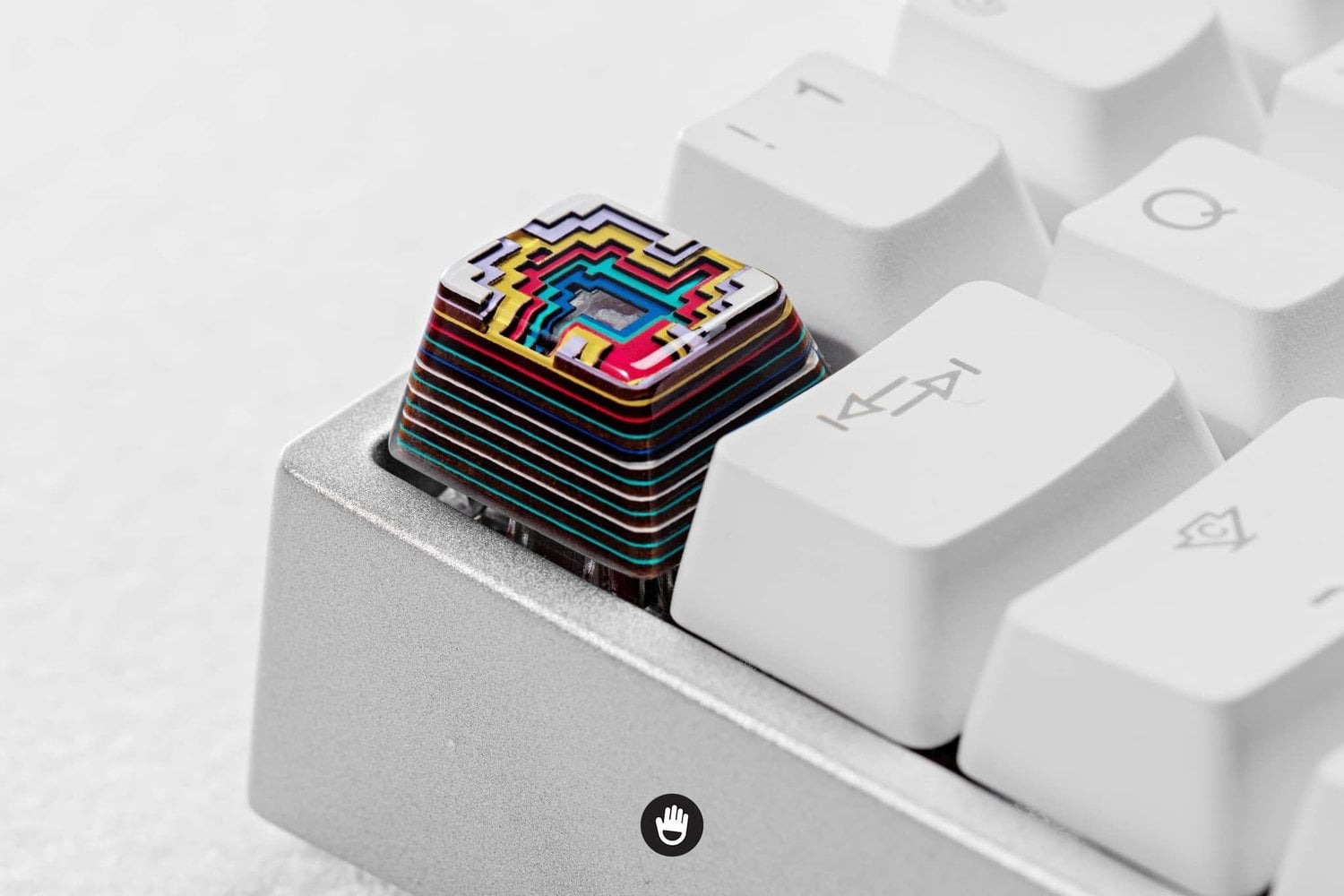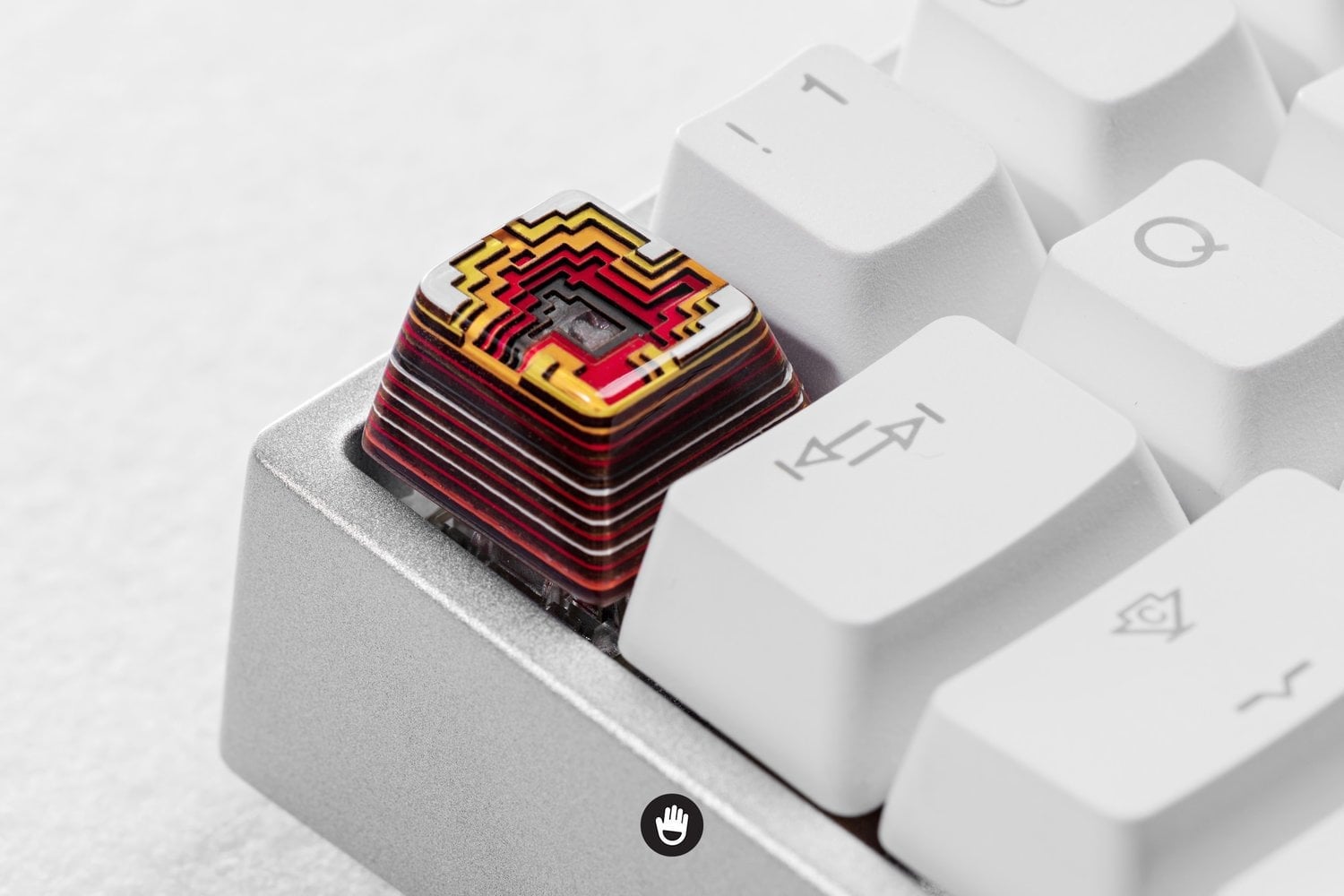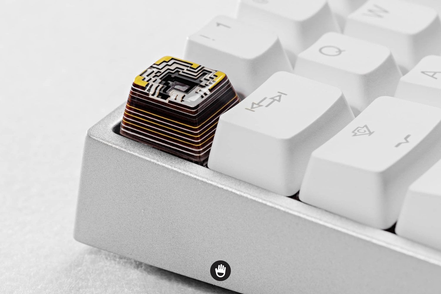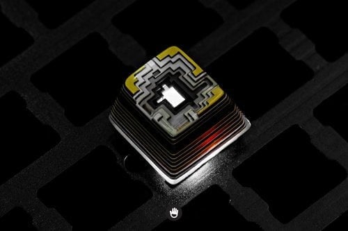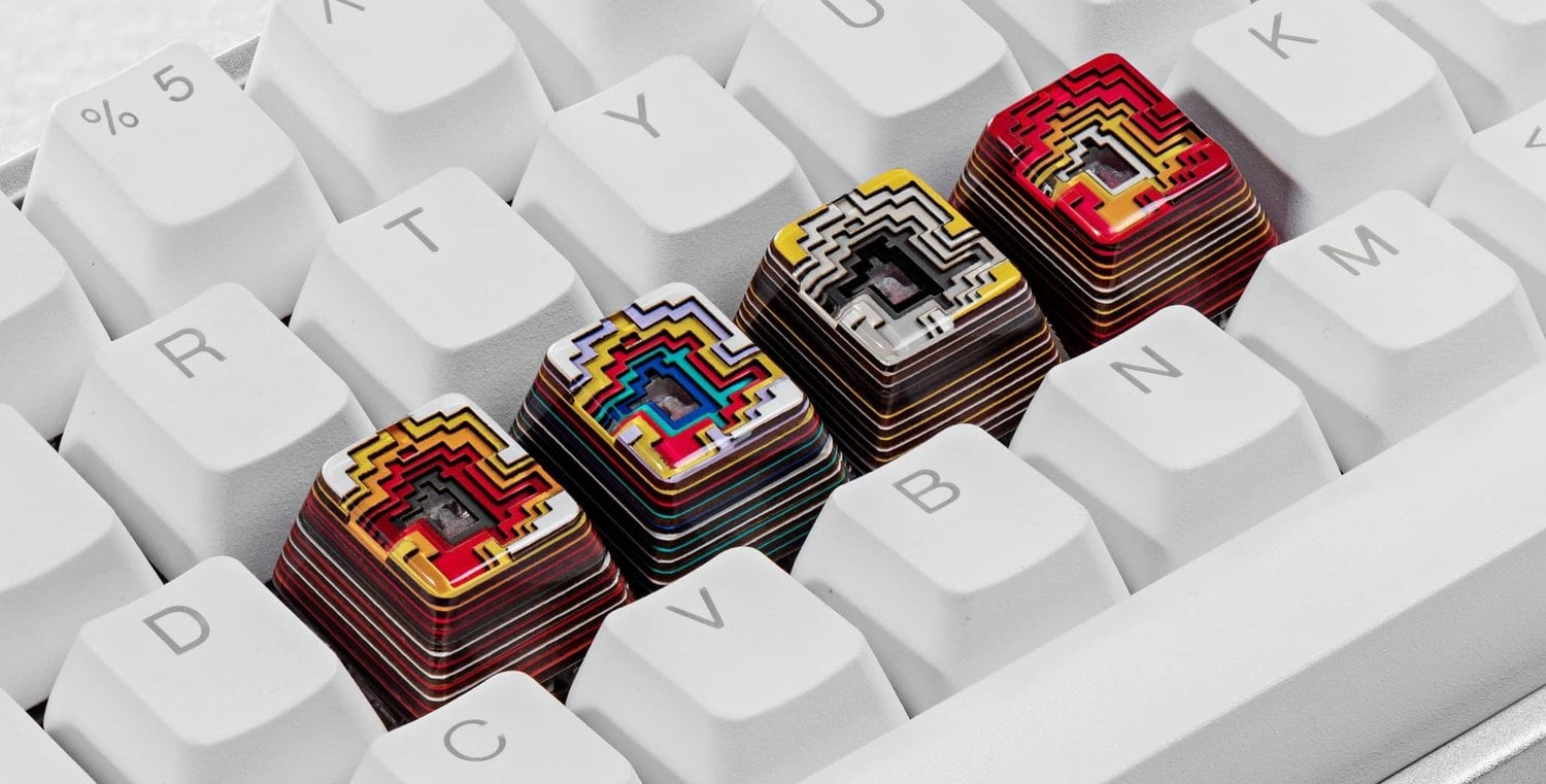 - Keycap made with resin, wood and powder.