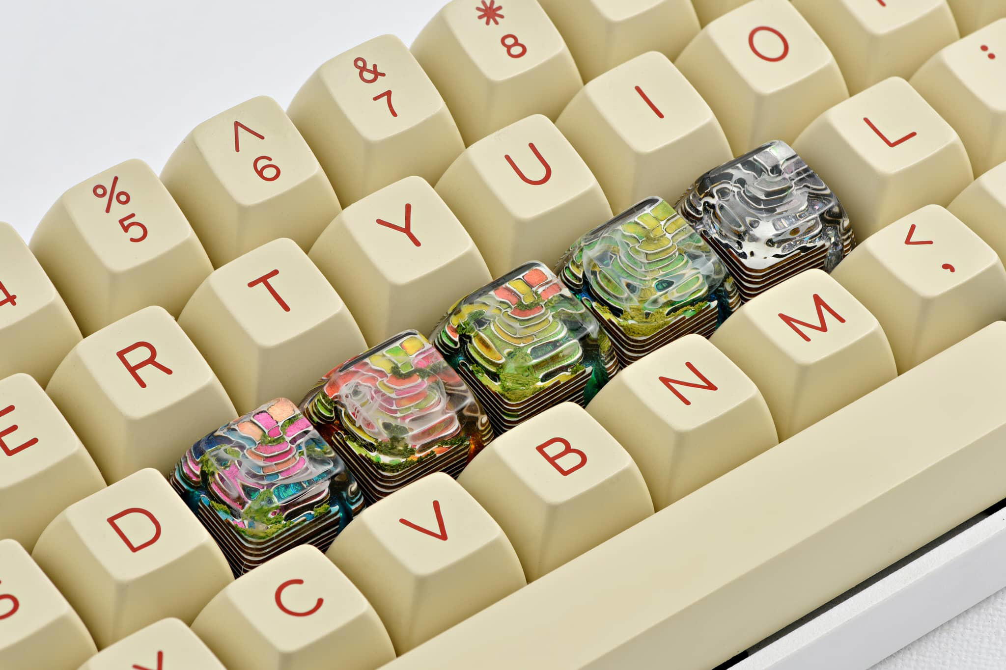- The final step is to polish all resin-molded keycap surfaces into a cohesive block and form the keycap shape.