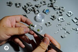 - The final step is to polish all resin-molded keycap surfaces into a cohesive block and form the keycap shape.