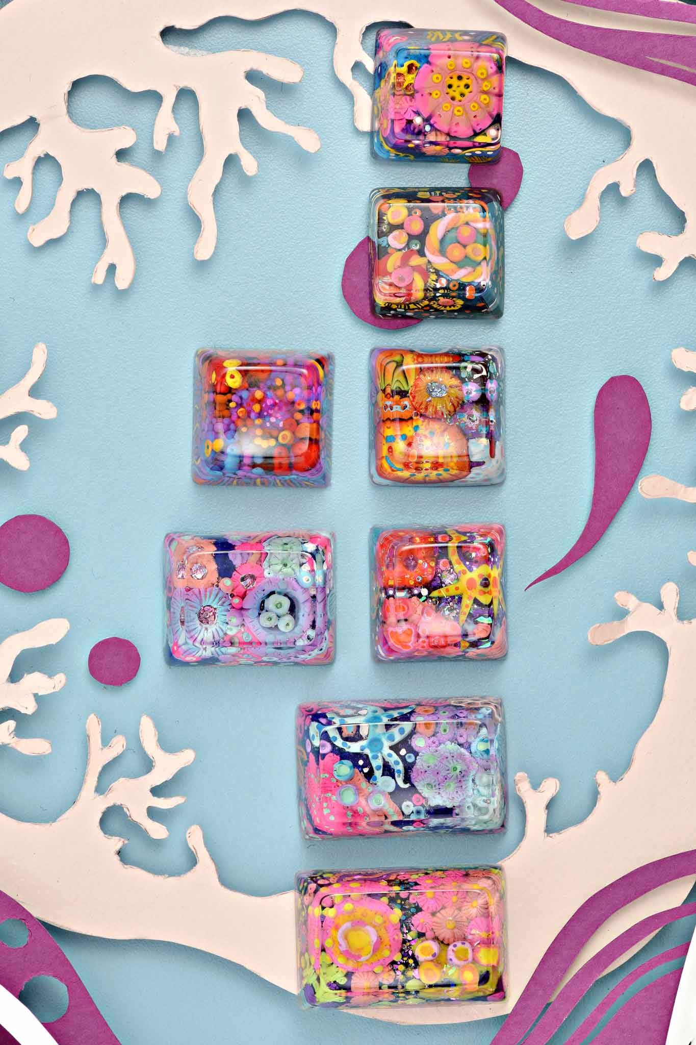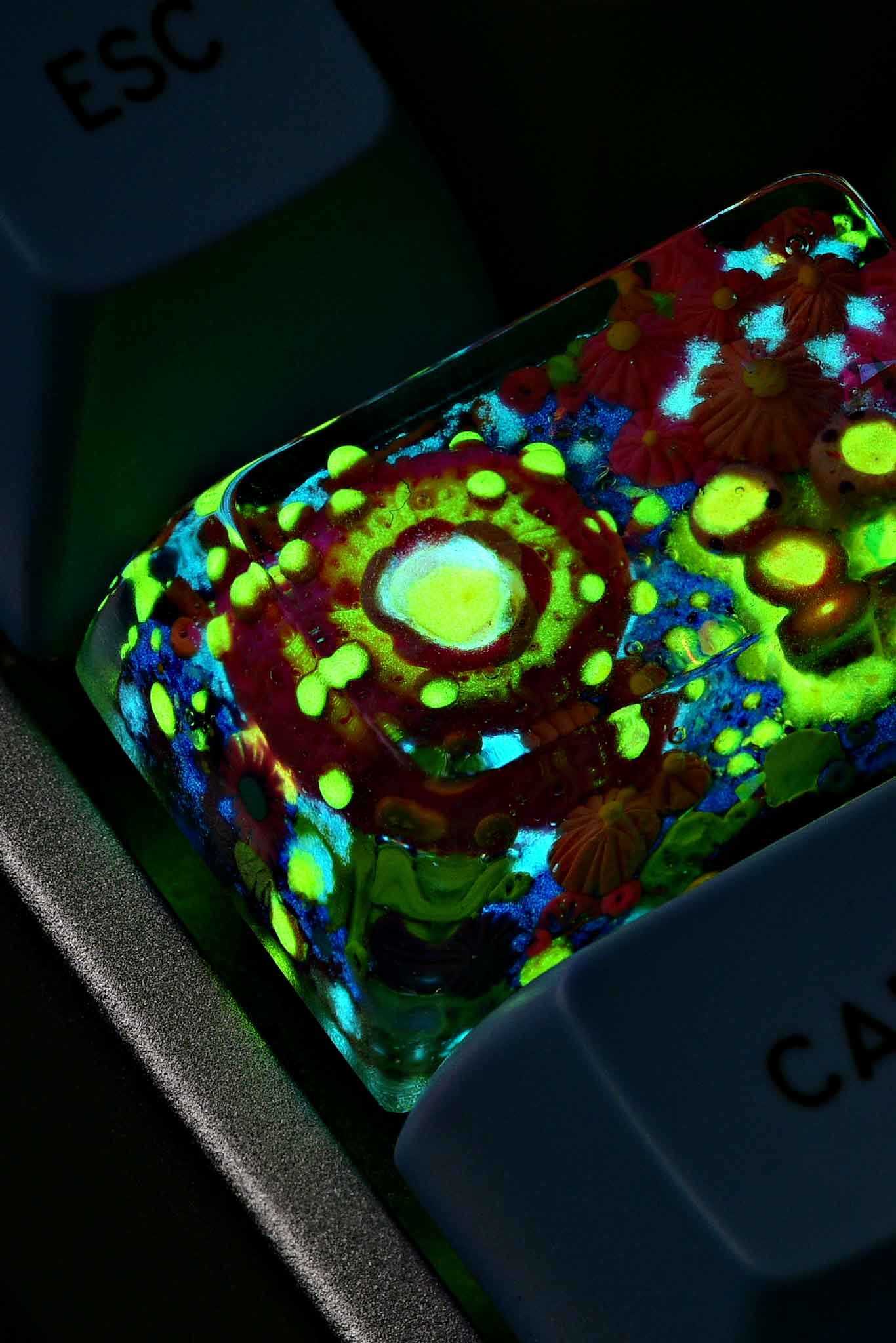 - Final step to complete the keycaps is the pouring technique to create bubbles in desired size at suitable position to simulate corals under water. Another important thing to do is polishing the keycaps in extreme care and moderate speed to create a shiny surface without any deformations.