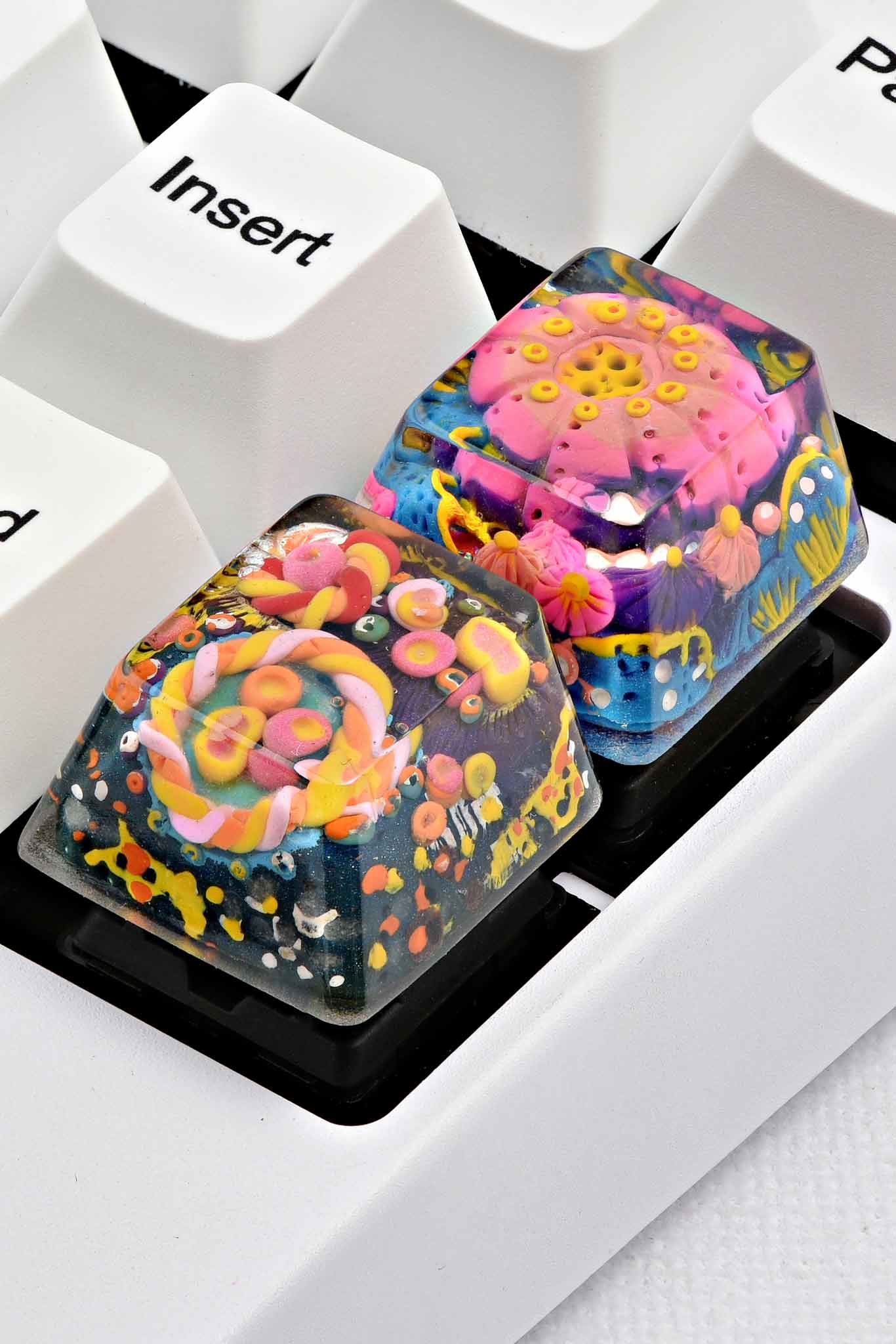 - 1 Atlantis Coral Artisan Keycaps by Jelly Key.