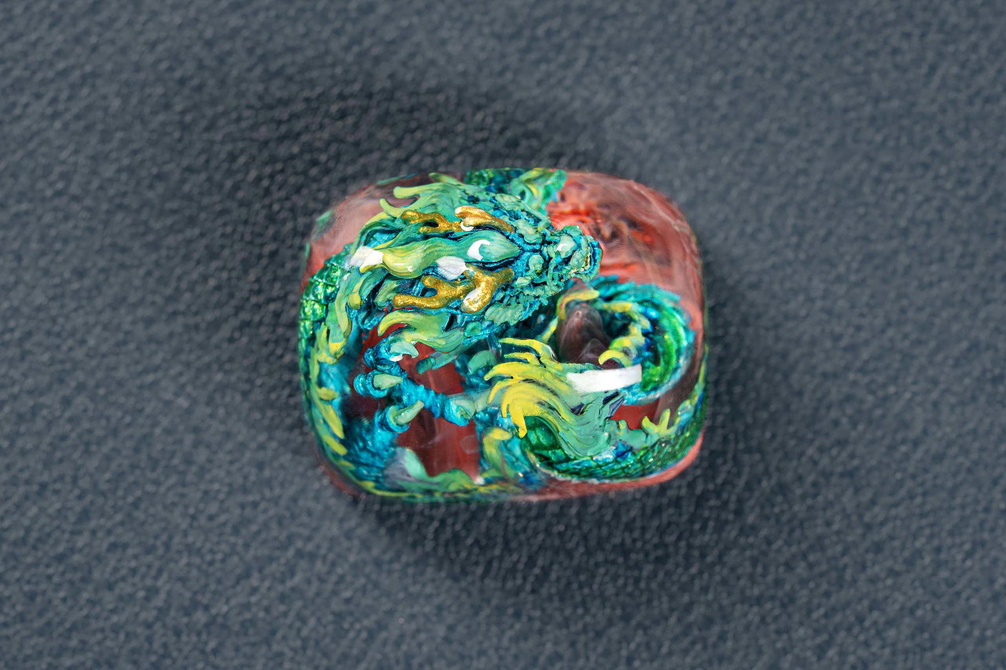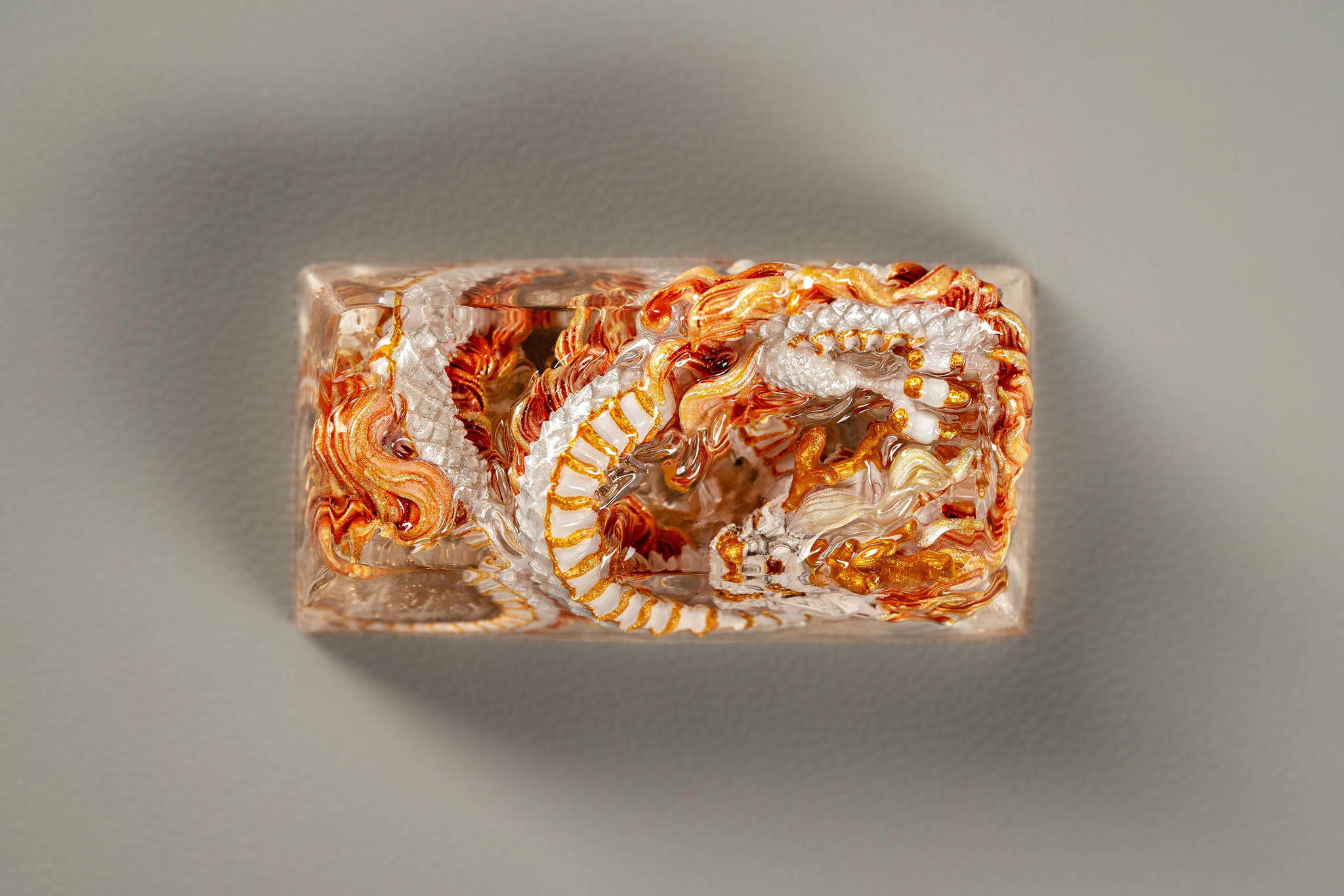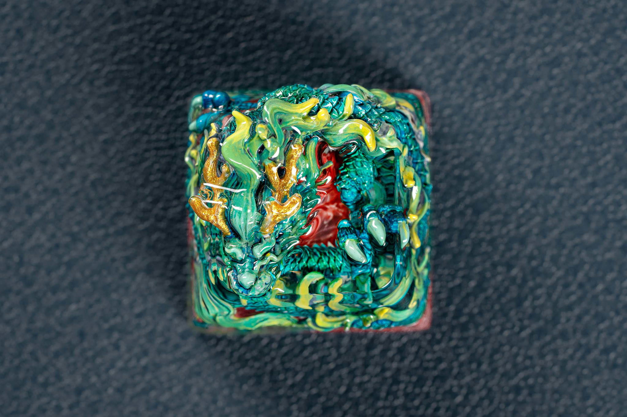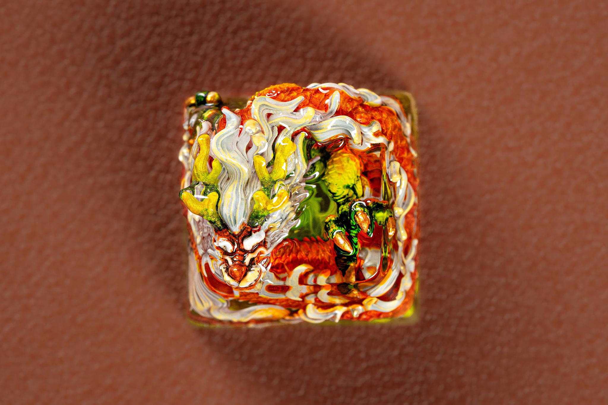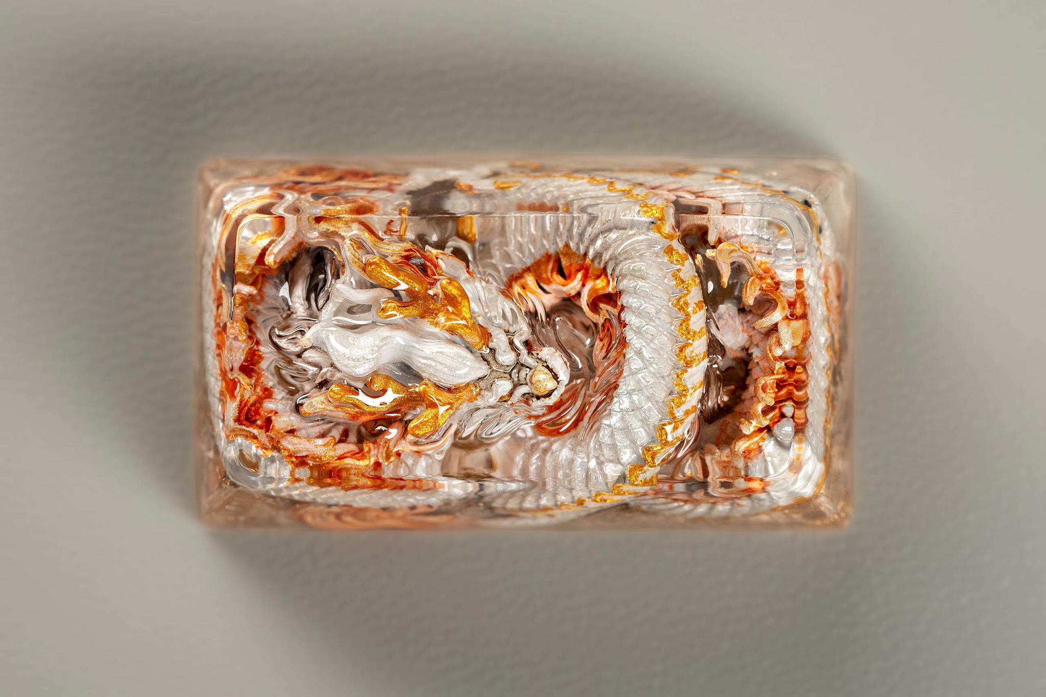 As you may know, the Cherry profile presents a real challenge for artisan keycaps due to the limited space for crafting and creating effects. However, this time, I have implemented a new EDEN casting technique, which reduces the height of the colour bursts and optimises the dragon’s size, making the 1u Cherry dragon version more perfect than ever.