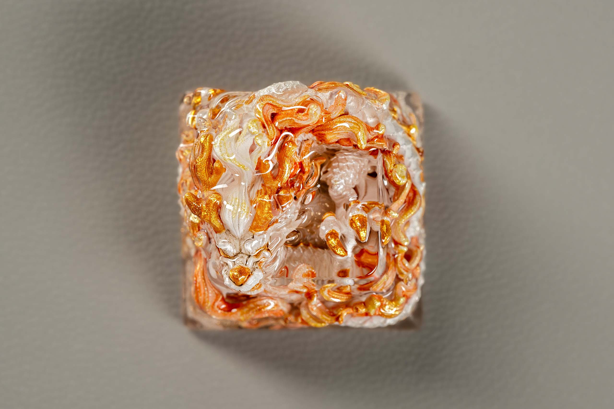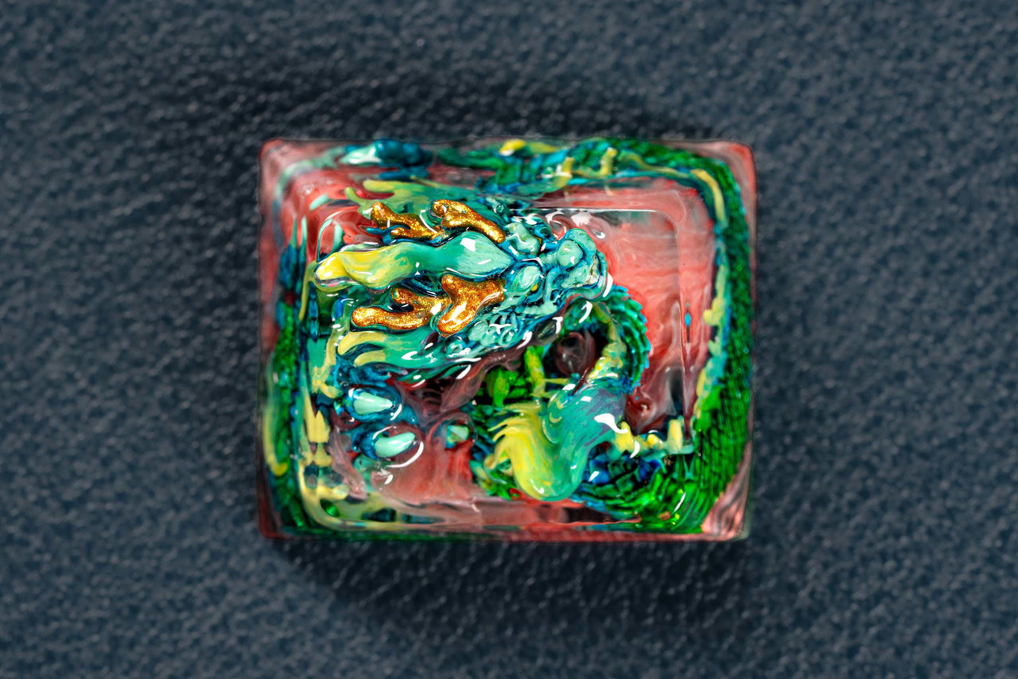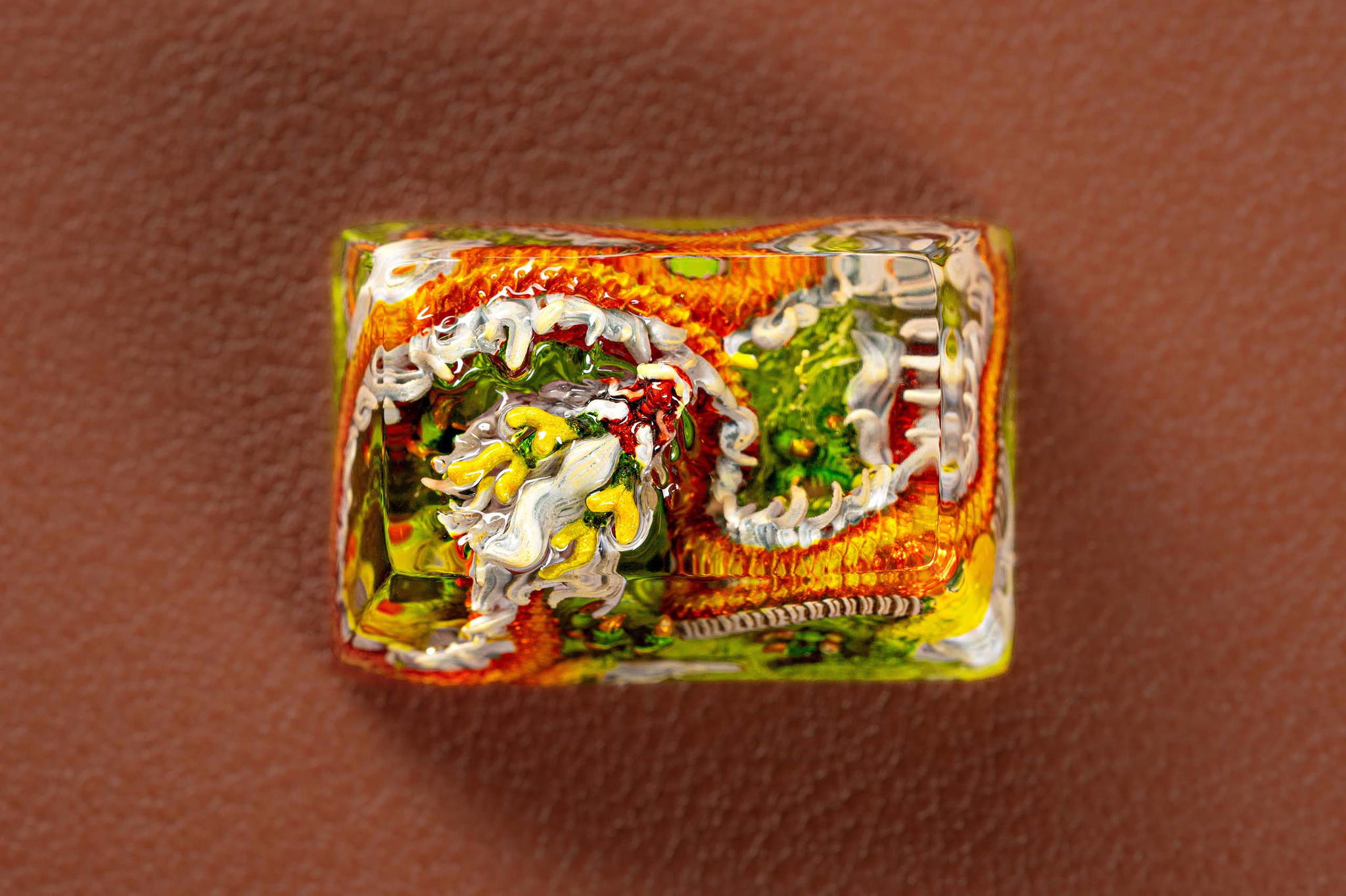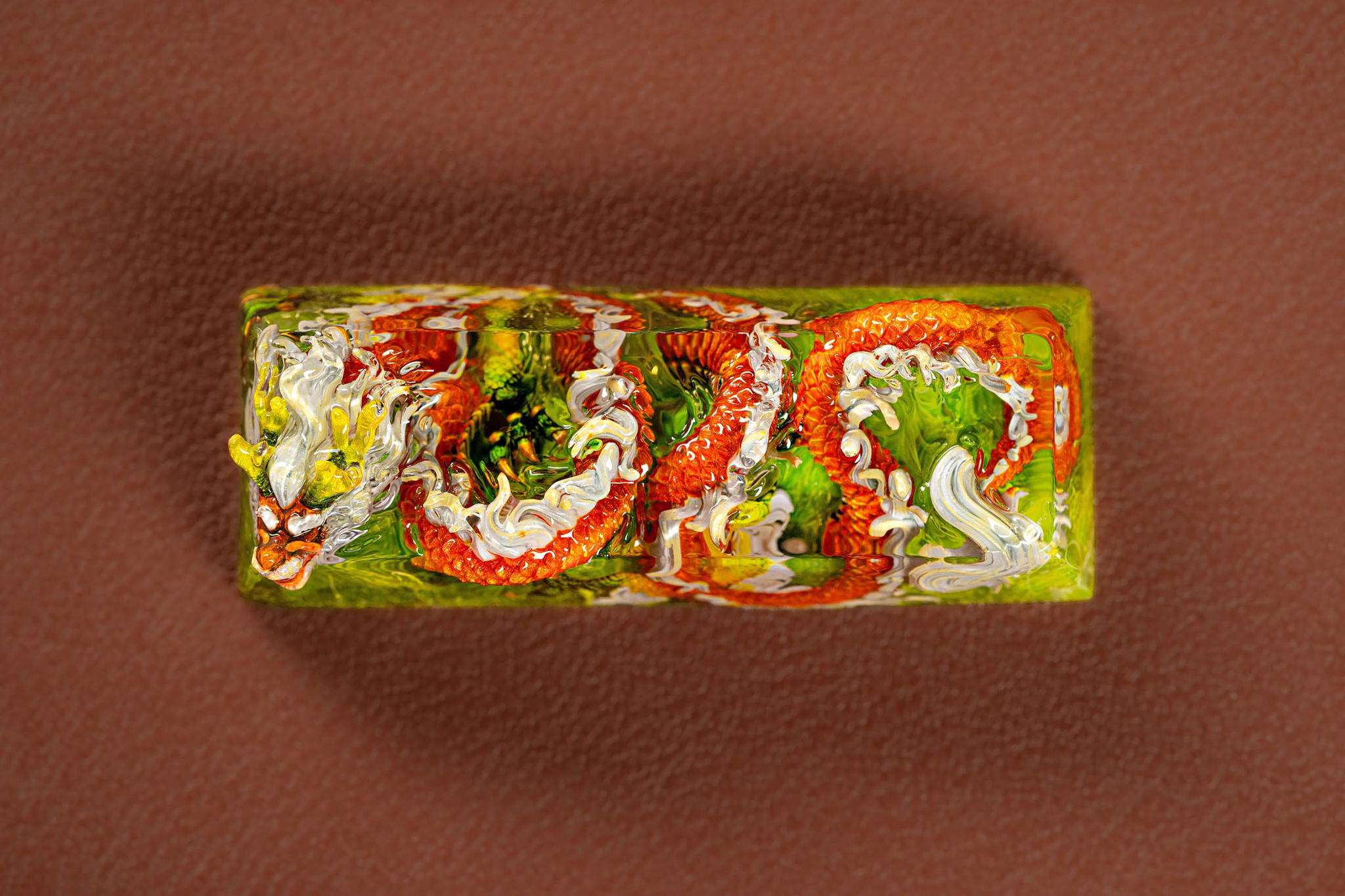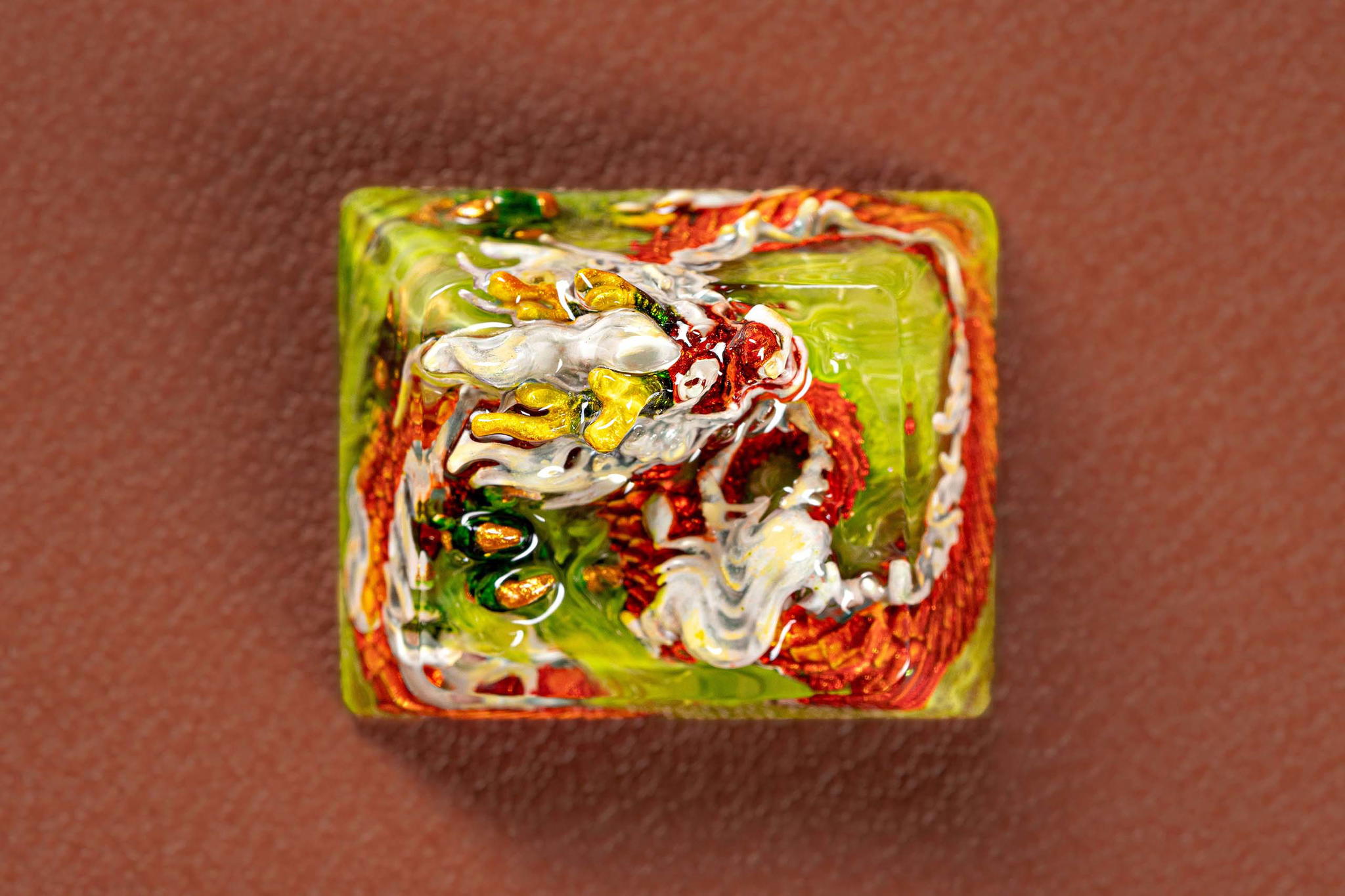 As you may know, the Cherry profile presents a real challenge for artisan keycaps due to the limited space for crafting and creating effects. However, this time, I have implemented a new EDEN casting technique, which reduces the height of the colour bursts and optimises the dragon’s size, making the 1u Cherry dragon version more perfect than ever.