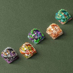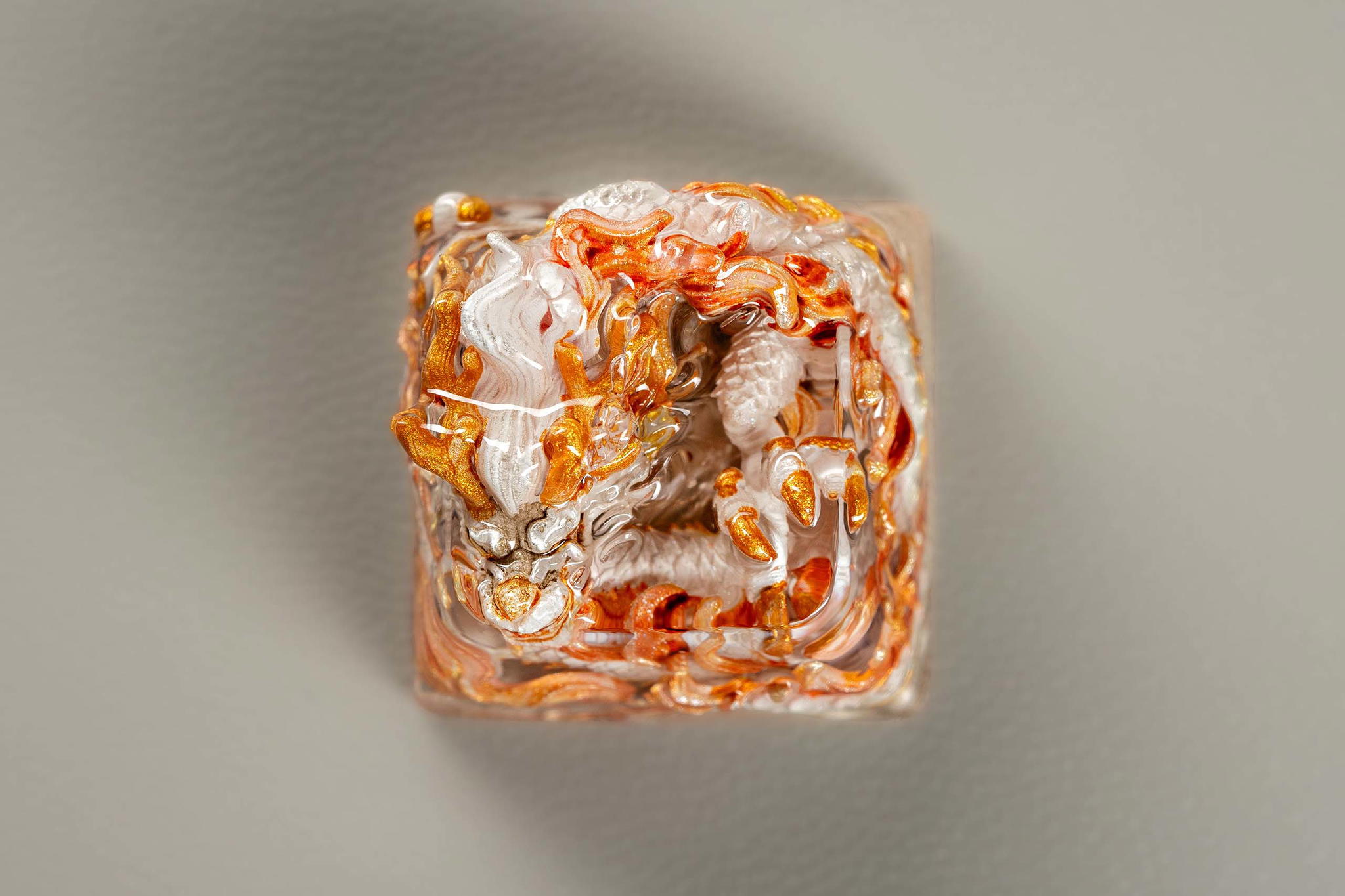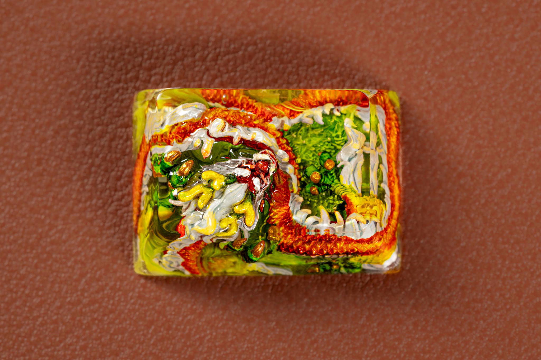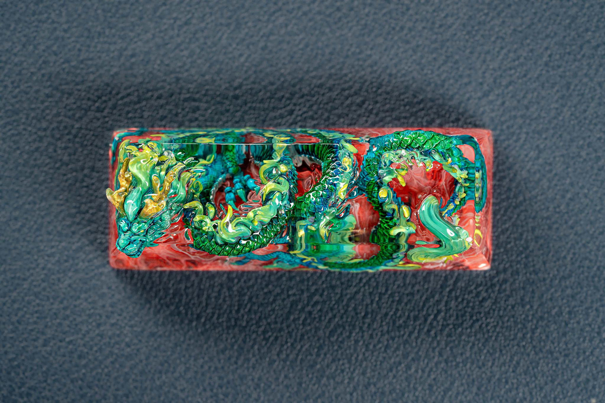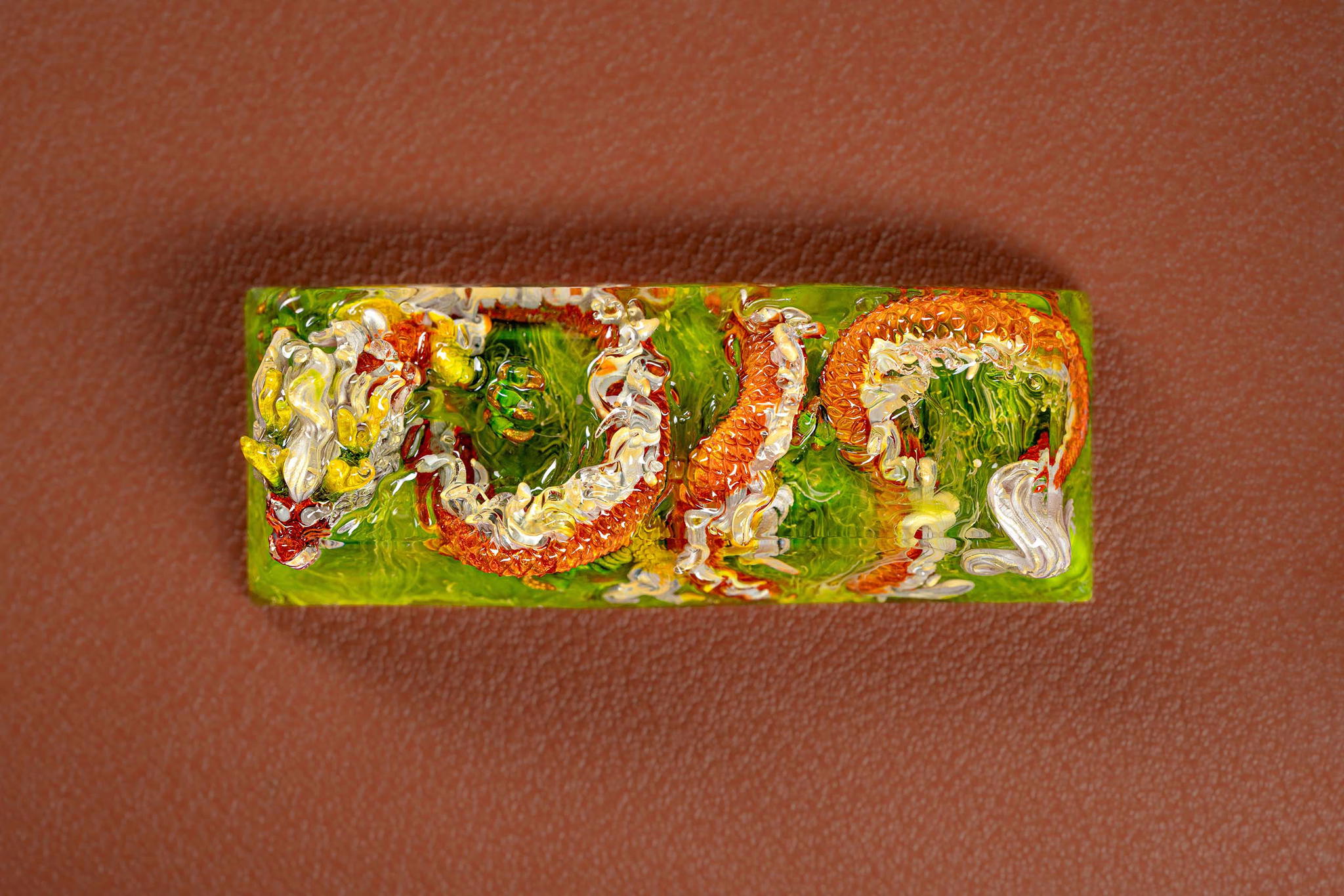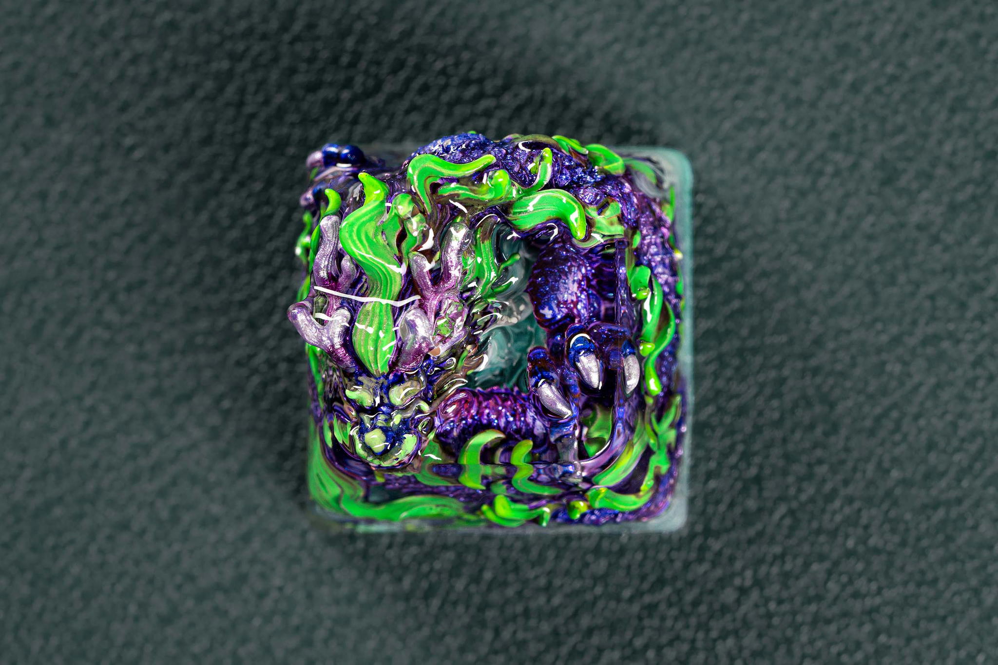 As you may know, the Cherry profile presents a real challenge for artisan keycaps due to the limited space for crafting and creating effects. However, this time, I have implemented a new EDEN casting technique, which reduces the height of the colour bursts and optimises the dragon’s size, making the 1u Cherry dragon version more perfect than ever.