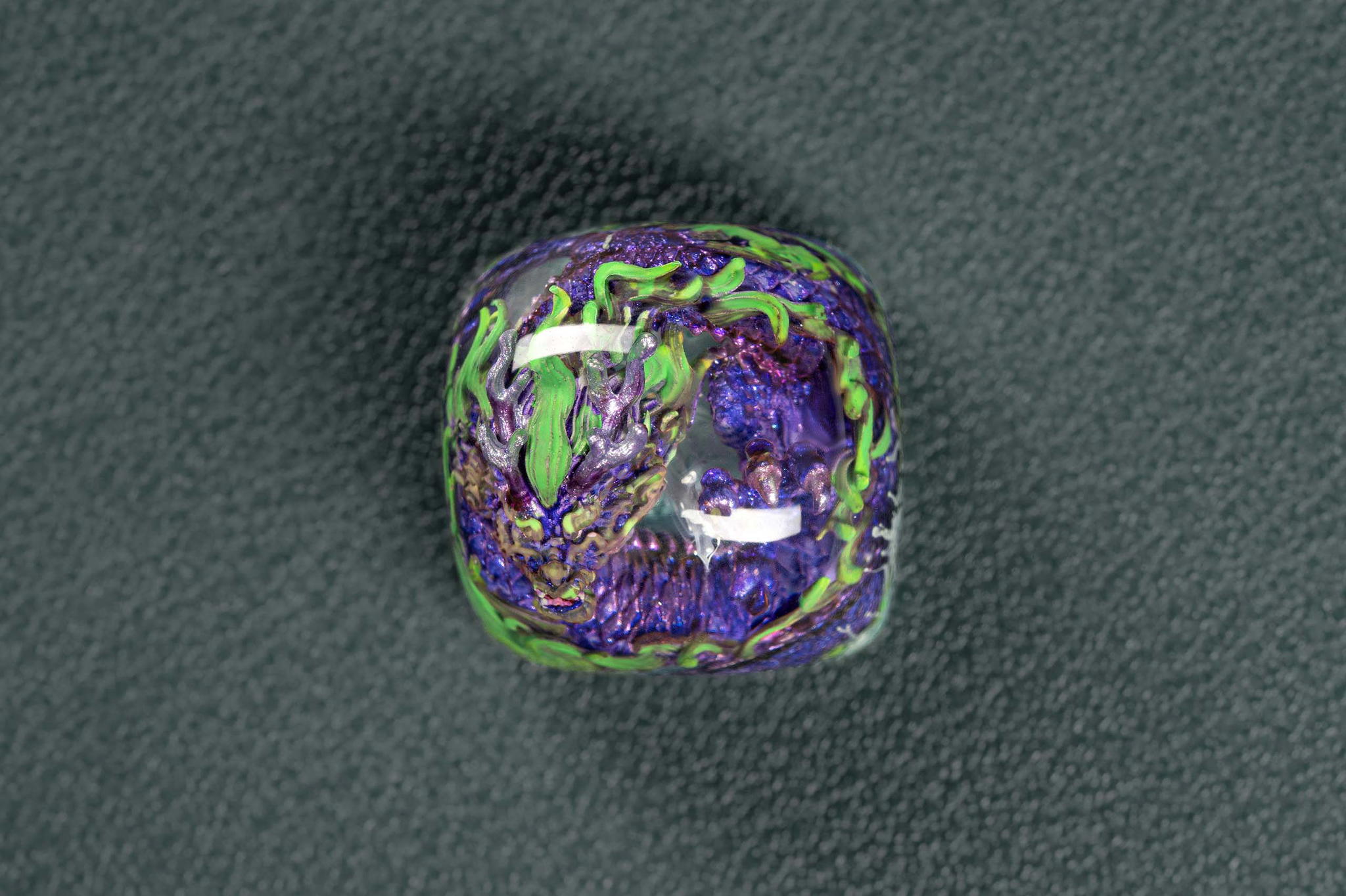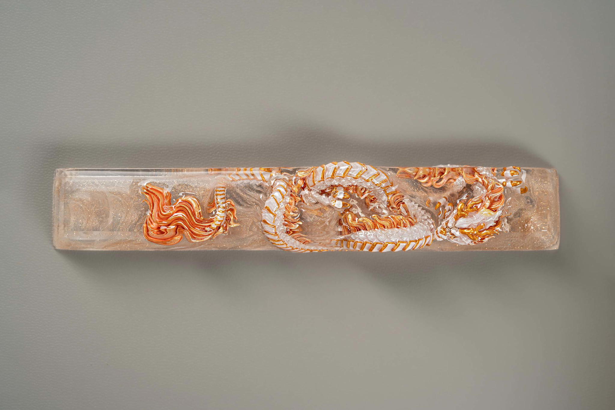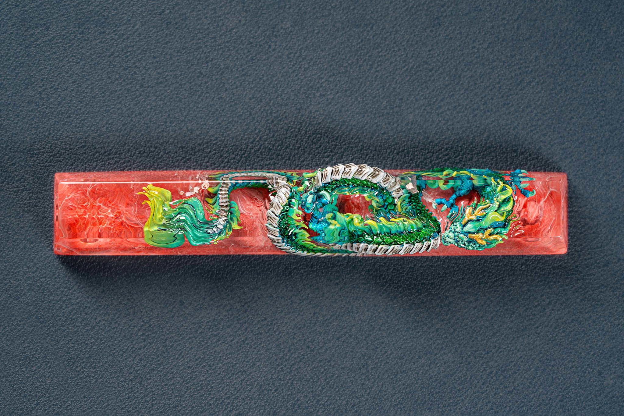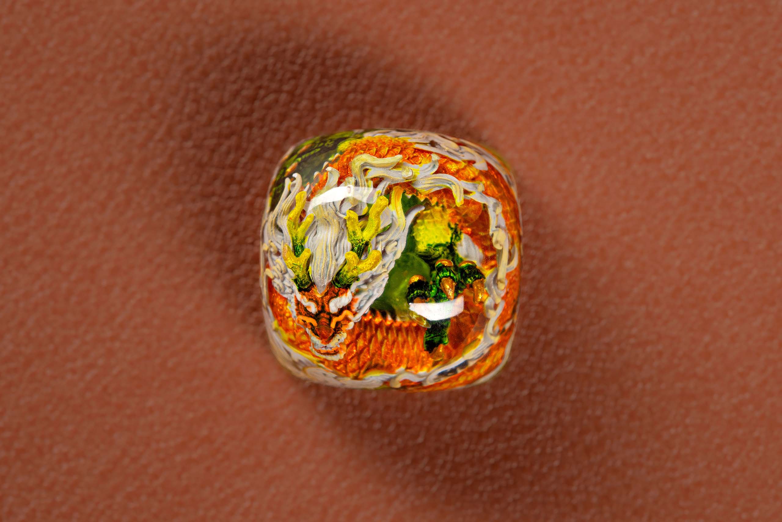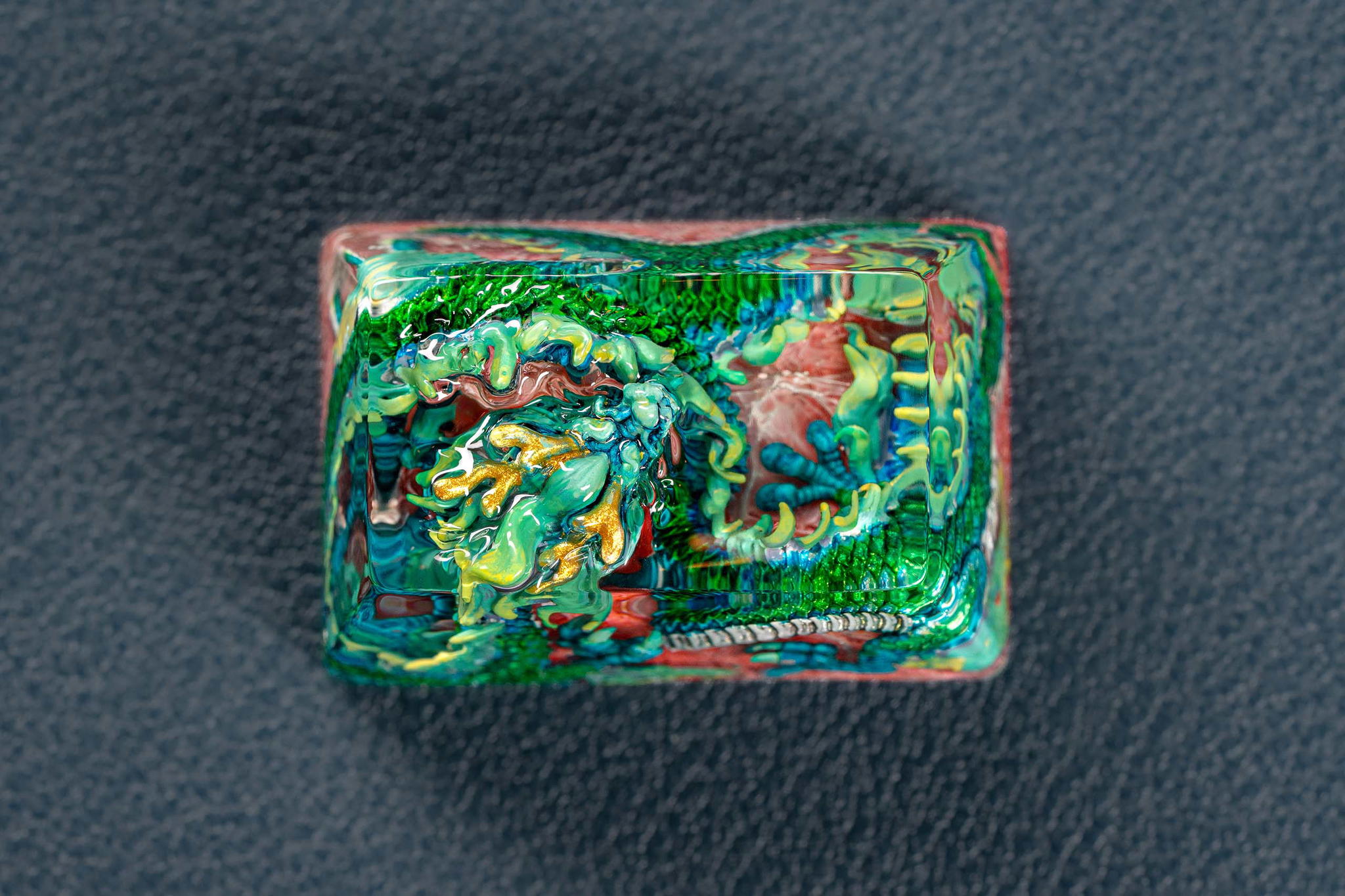 As you may know, the Cherry profile presents a real challenge for artisan keycaps due to the limited space for crafting and creating effects. However, this time, I have implemented a new EDEN casting technique, which reduces the height of the colour bursts and optimises the dragon’s size, making the 1u Cherry dragon version more perfect than ever.