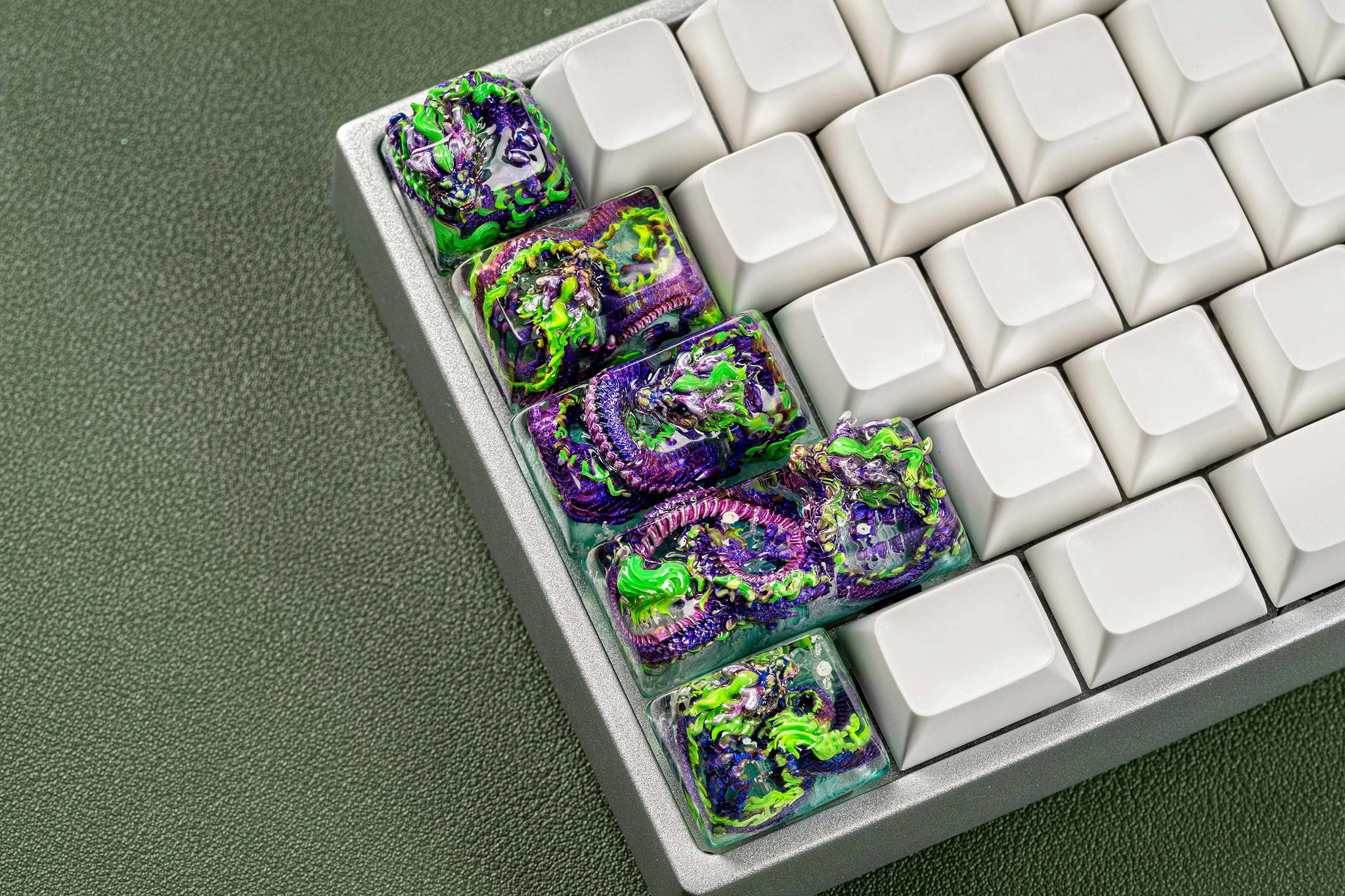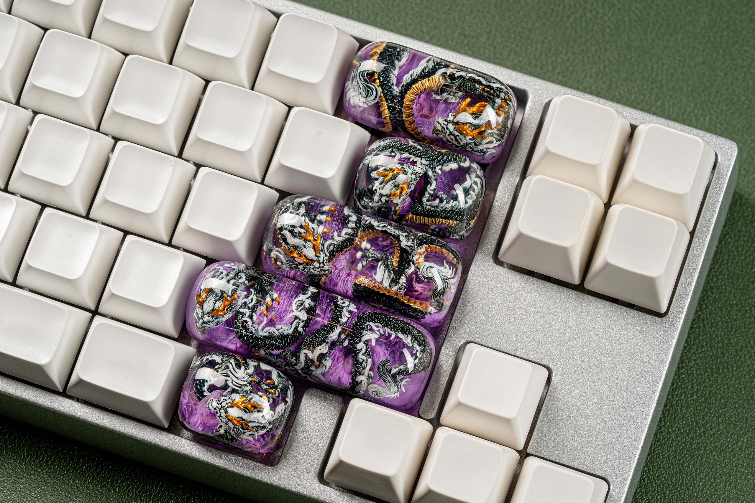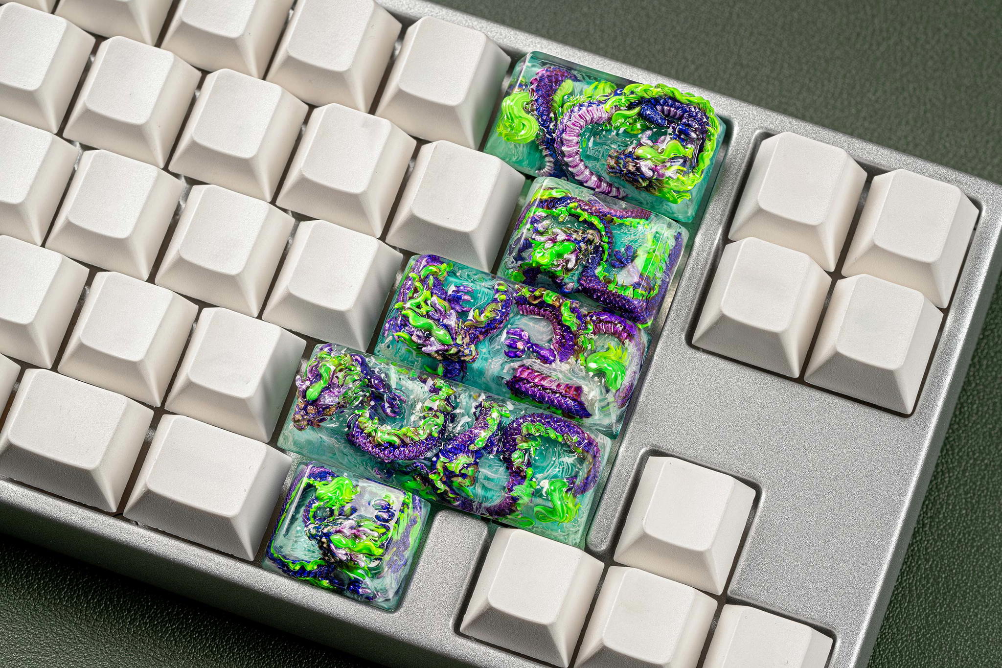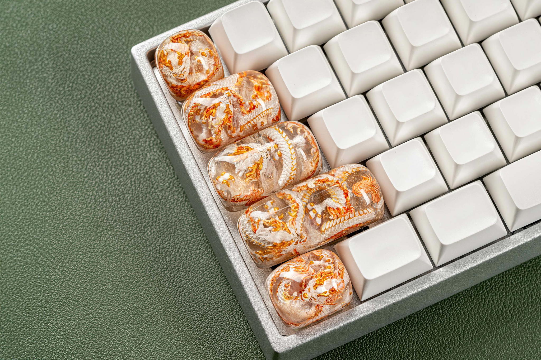 Here’s an extra tip: using a magnifying glass or macro photography, you’ll notice an outer transparent layer with a unique shape. This layer enhances the dragon’s visual appeal and grandeur while protecting details like claws, horns, and the head. I’ve tested these keycaps rigorously, and they withstand rough handling without any damage.