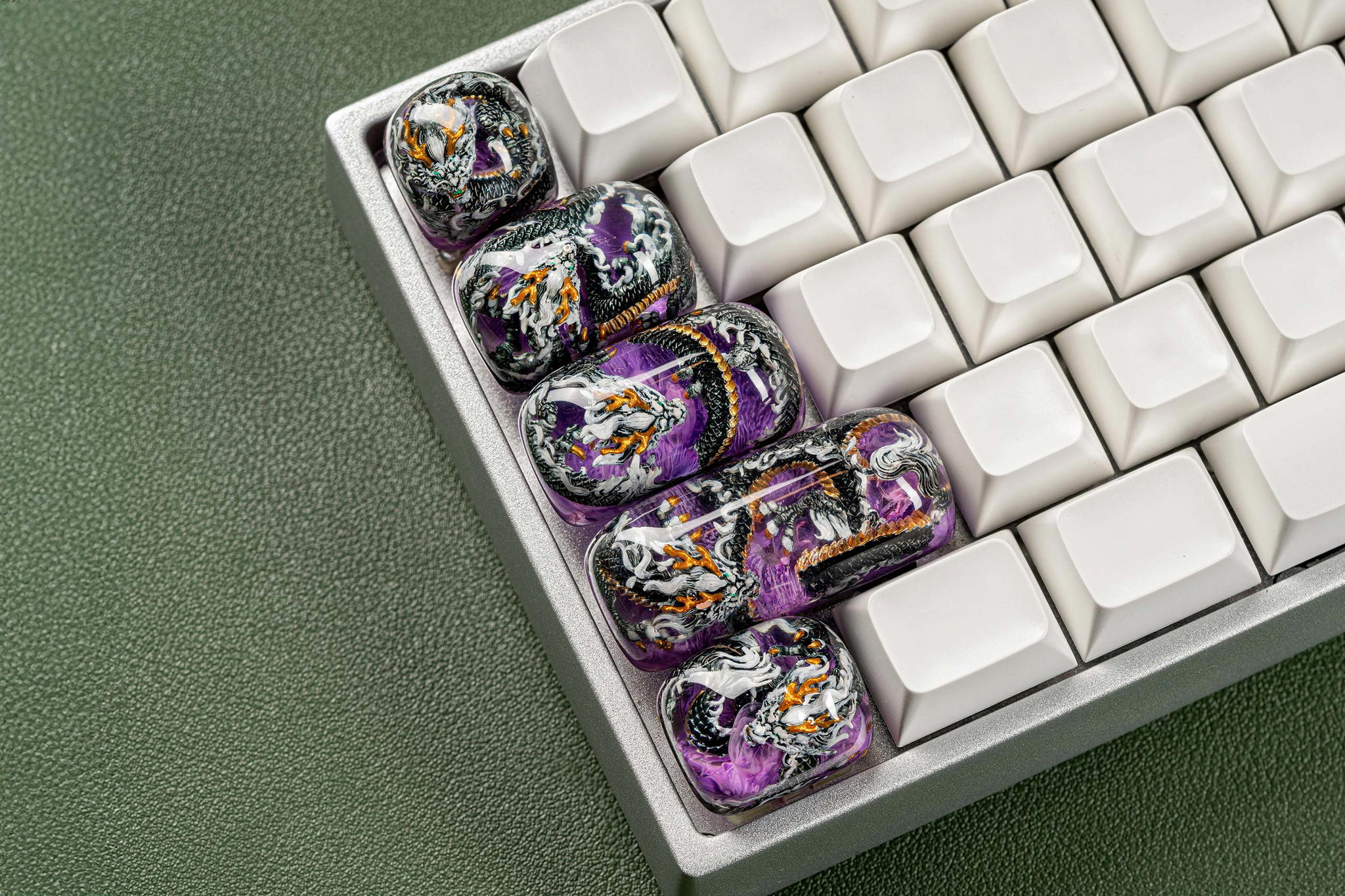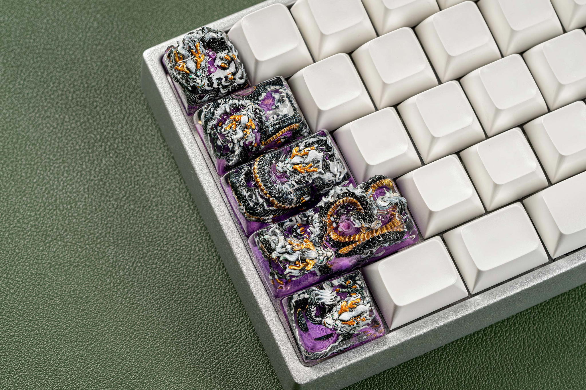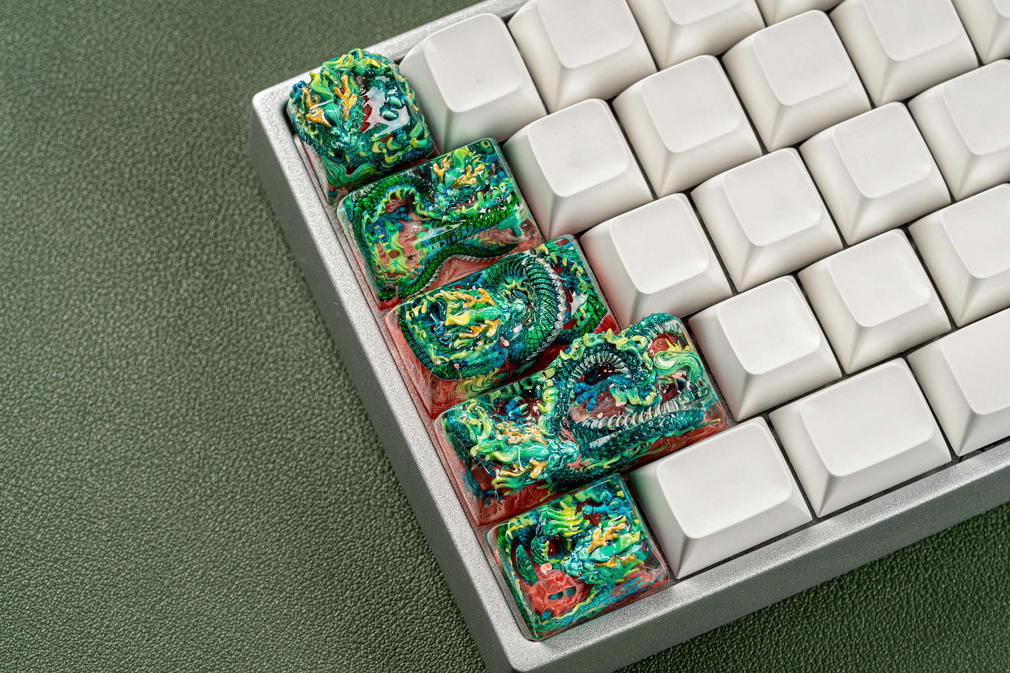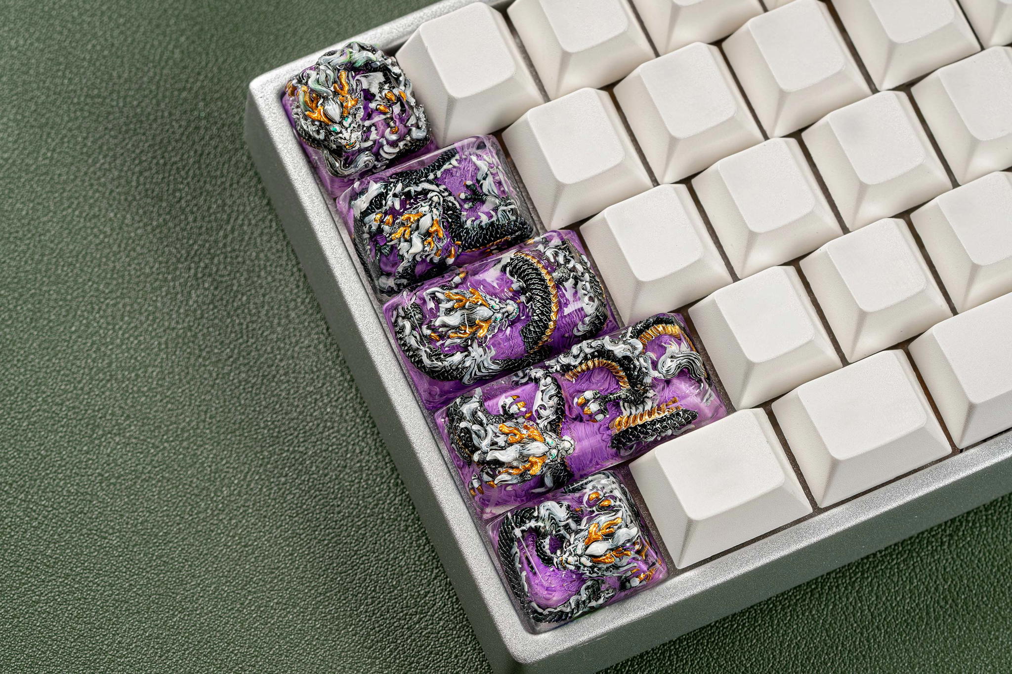 In the latest release of this series, the Jelly Key design team has been constantly researching and exploring books, movies, and online materials, as well as based on ancient relics and historical sites… about the history of mythical dragons in Asian culture. Our artisans have achieved a completely new design, with each dragon pose meticulously sculpted on each keycap size, along with the delicately controlled Eden effect, bringing incredible vibrancy.
