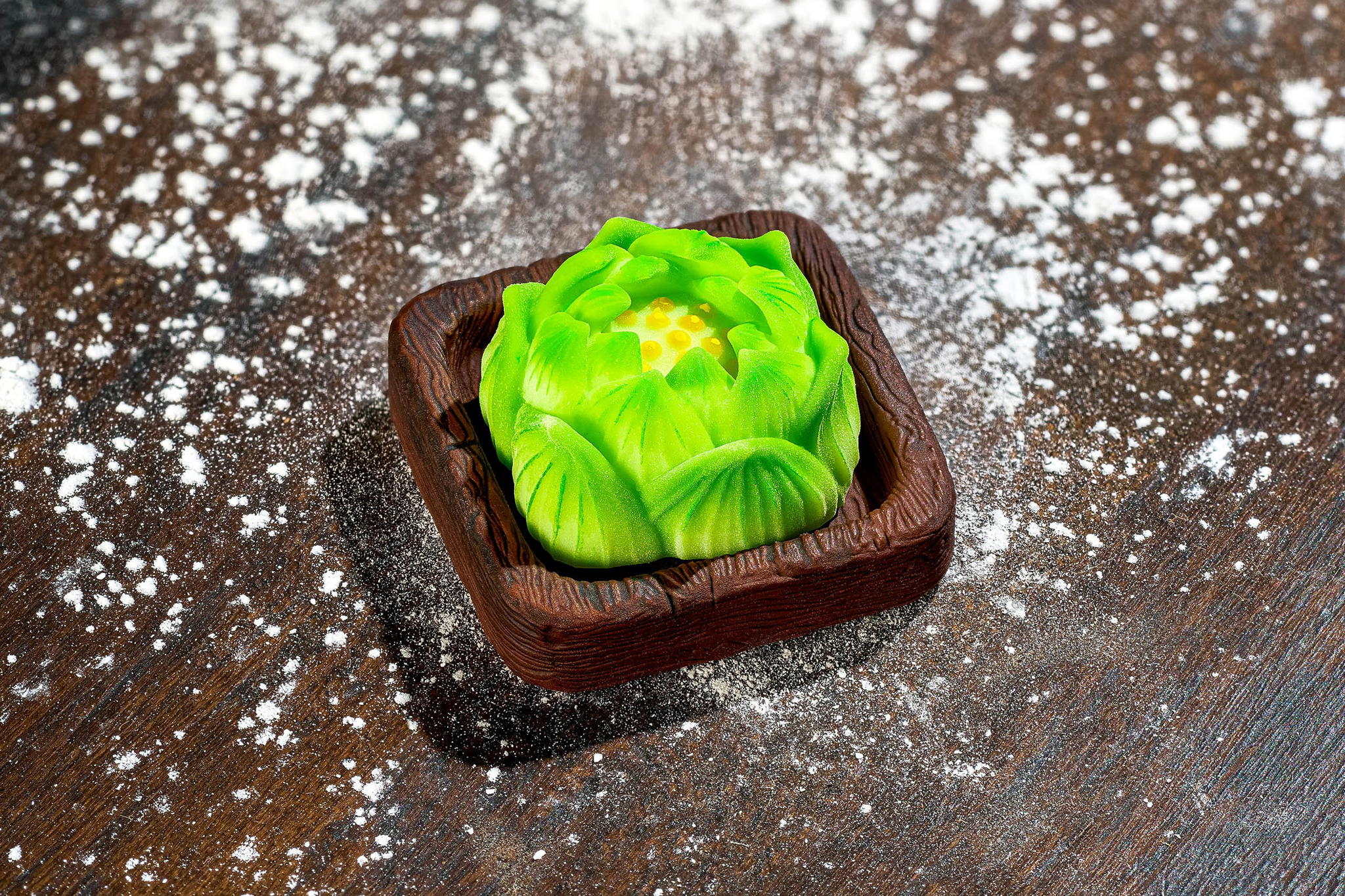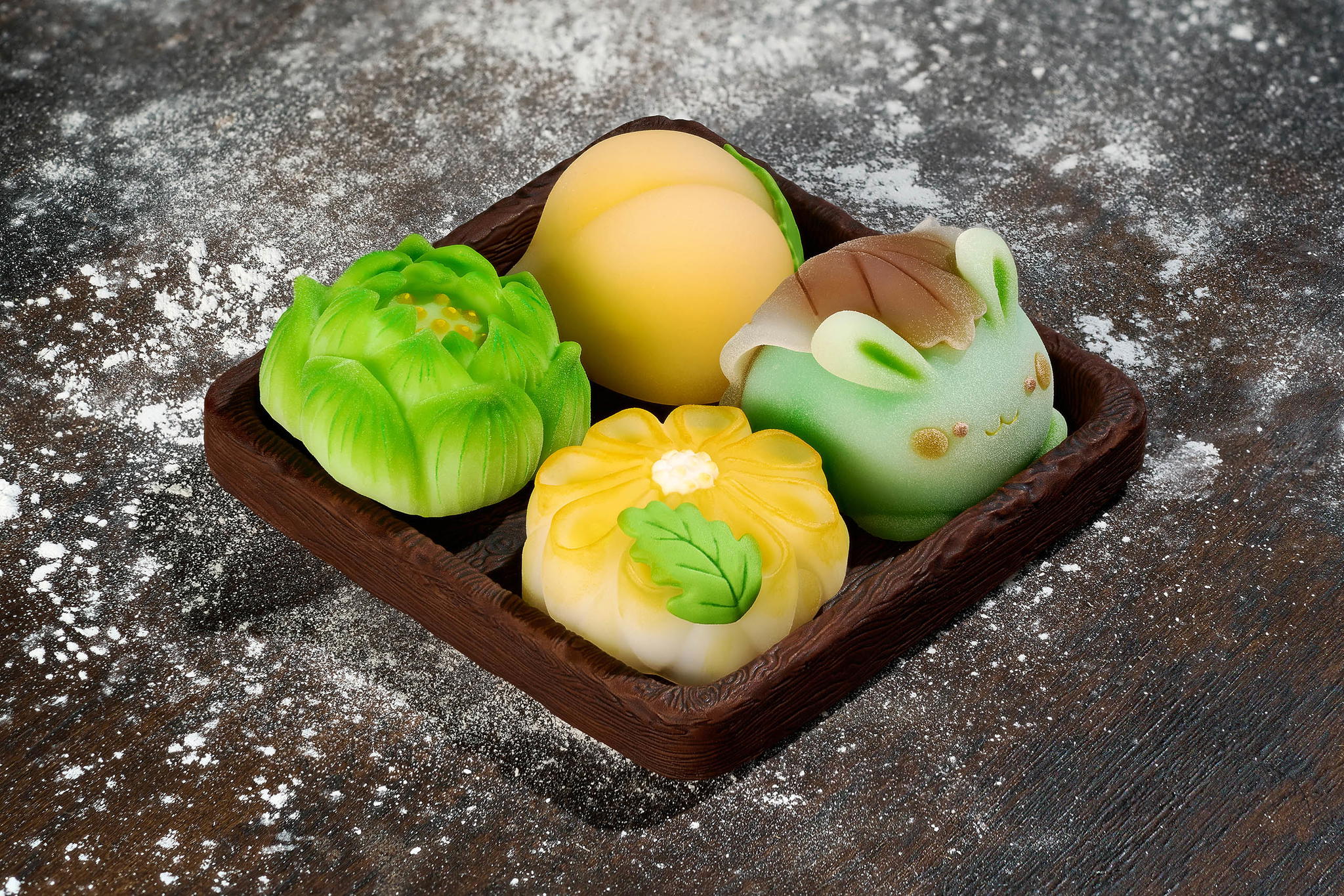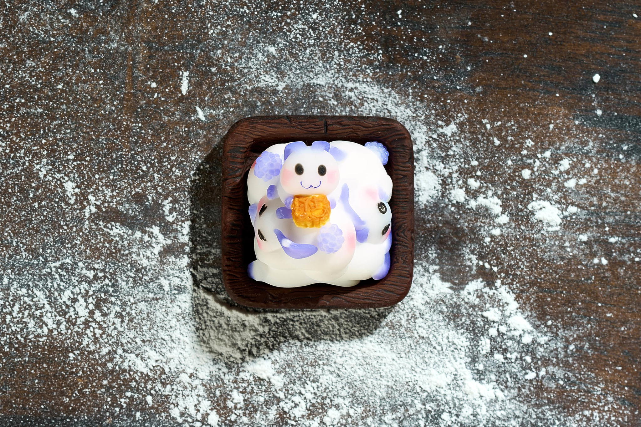 For each soft mooncake design, the casting technique differs completely from baked versions. It requires recreating multiple translucent resin casting layers – the outer translucent layer neither too thin nor thick, with color layers perfectly balanced to create the dough surface appearance while remaining transparent enough to reveal inner colors mimicking cake fillings. Color selection plays a crucial role in conveying the soft mooncake wrapper sensation and the sweet inner filling.