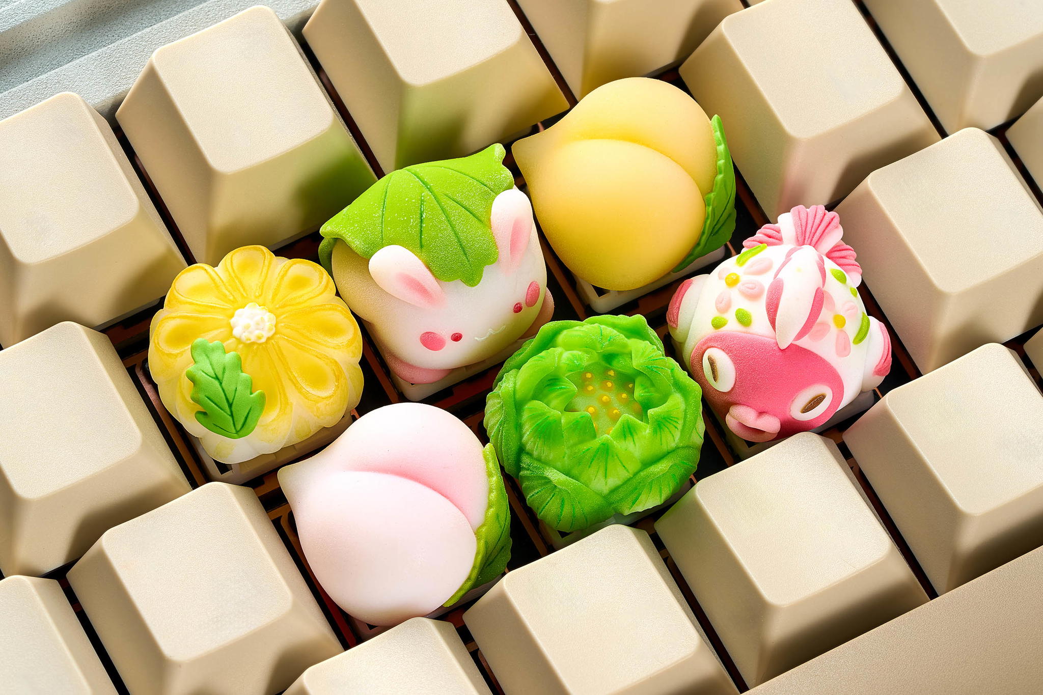 We have two special Soft Mooncake themed artisan keycaps this round: the Mochi Master and the Moon Rabbit. When you buy 6 keycaps, you get a free Mochi Master. When you buy 12 keycaps, you get both for free.