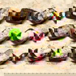 – Each keycap comes in a handmade wooden box. All keycaps are fully handcrafted using resin casting and layer-by-layer coloring. No 3D printing. The photos show real prototype keycaps, not renders. The display trays are also resin-cast and painted to look like wood; they are not real wood.