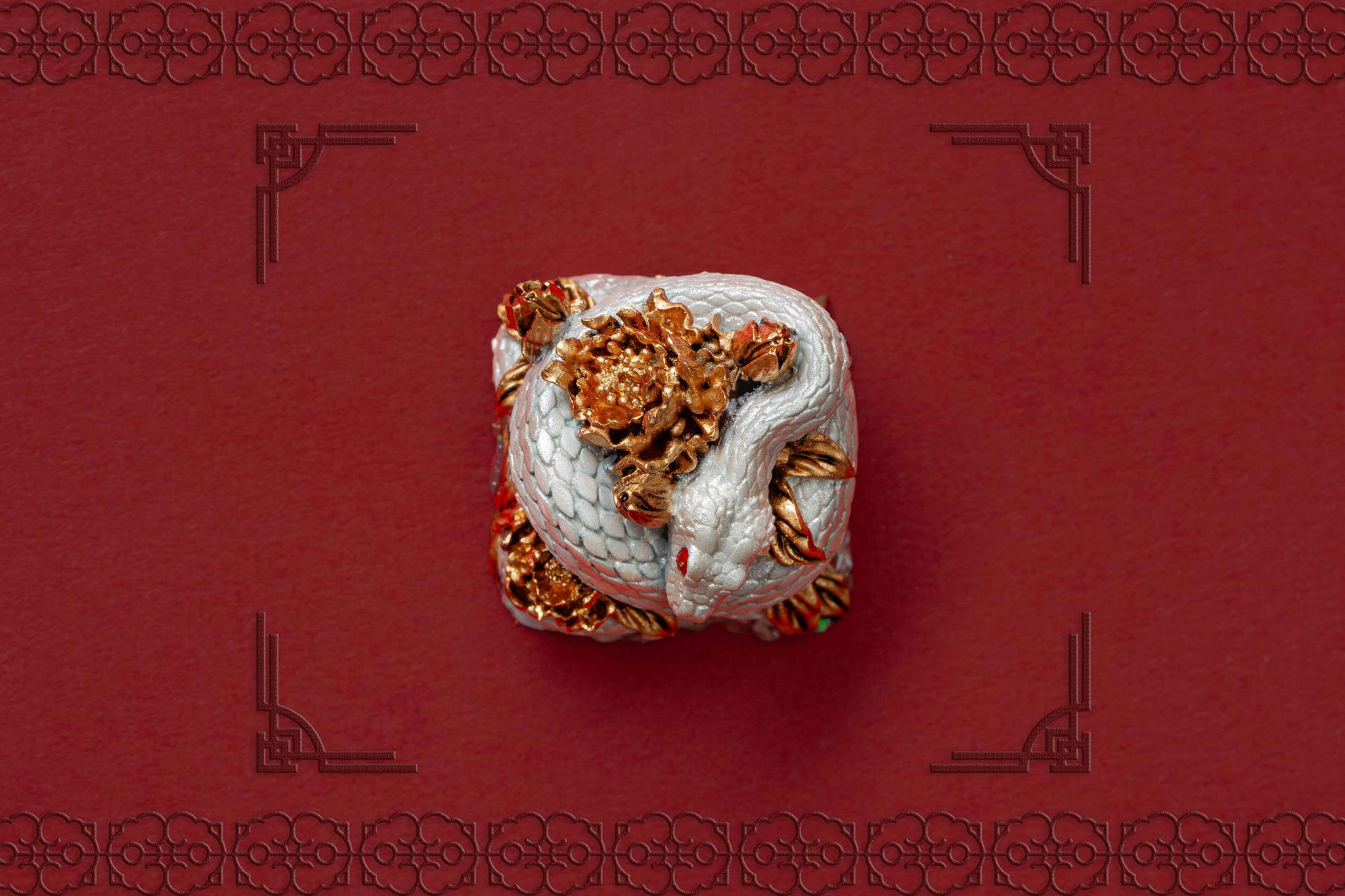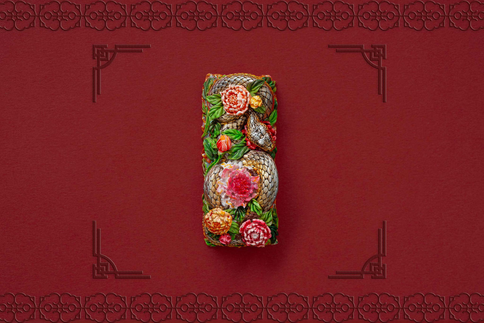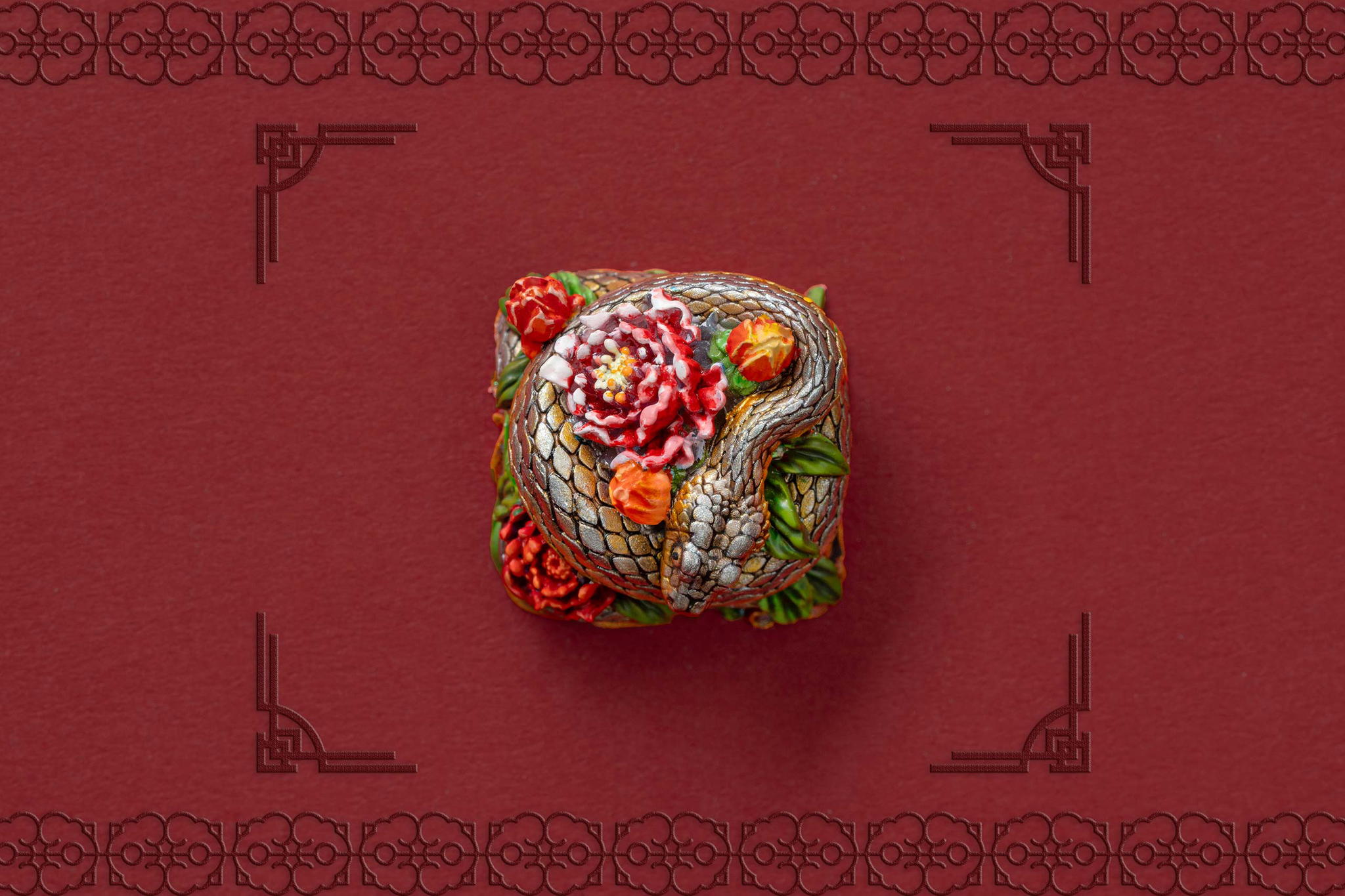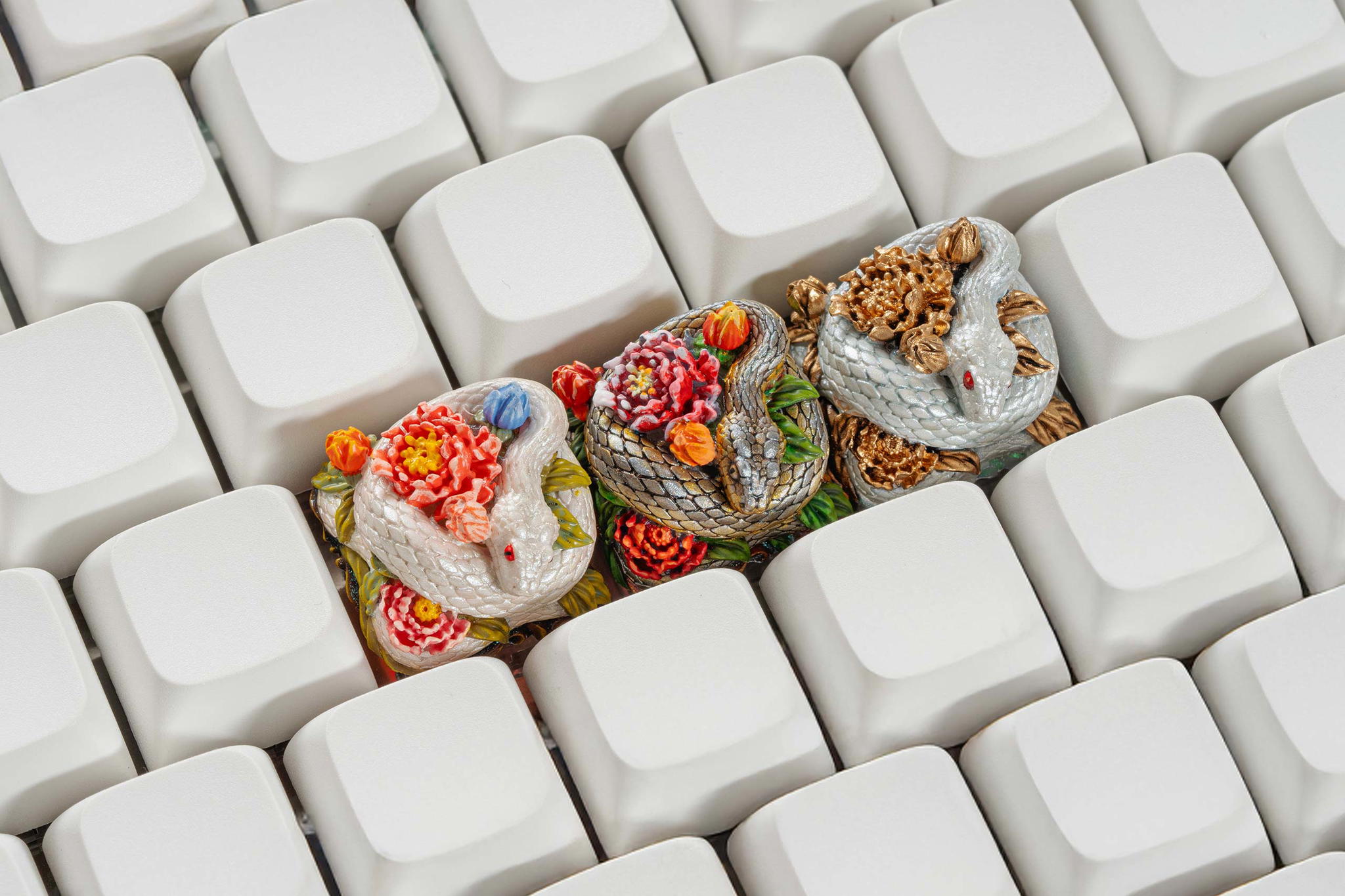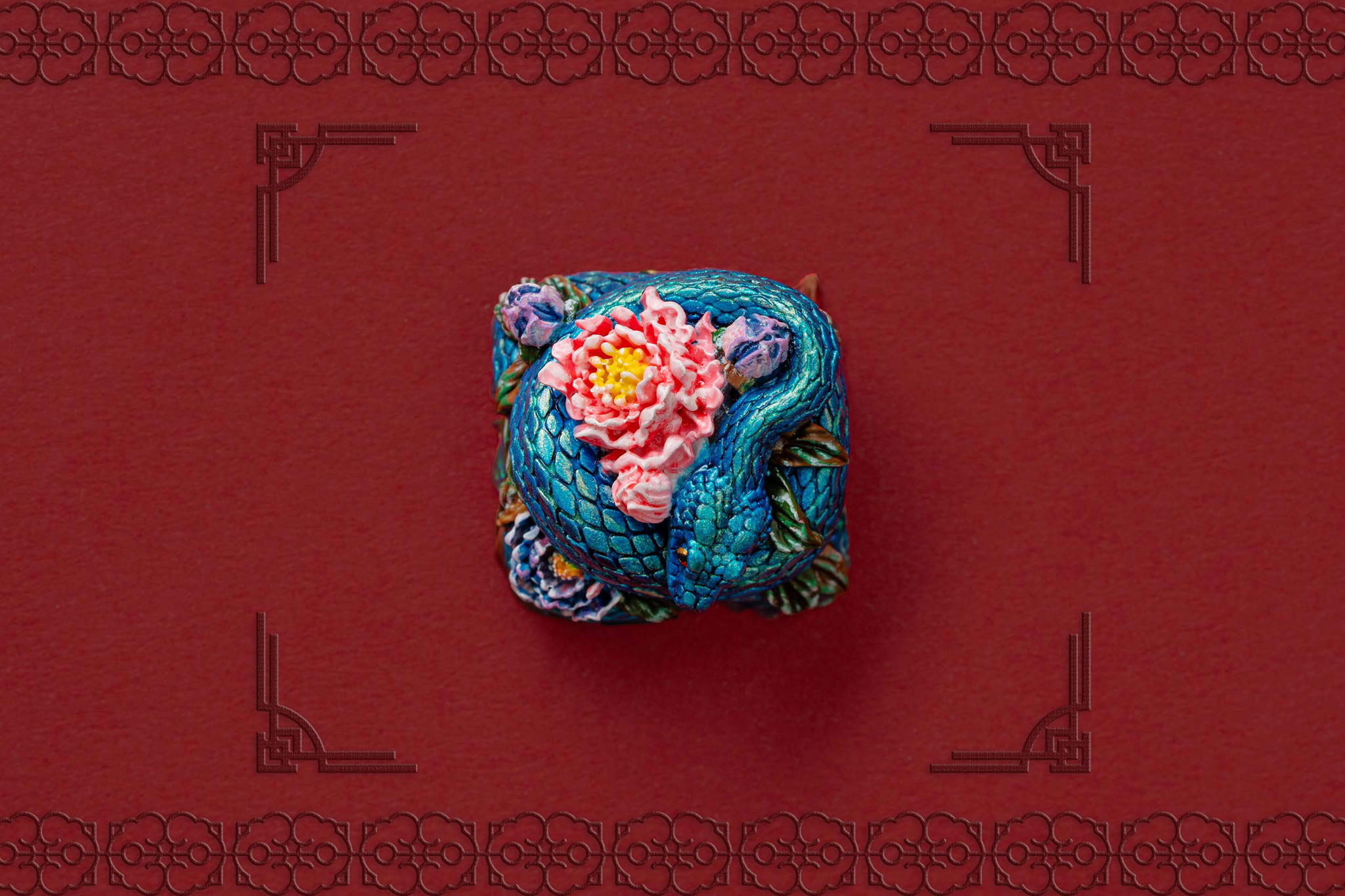 Inspired by this profound symbolism, the “Mystic Snake” artisan keycap collection emerges as a true masterpiece, celebrating the perfect fusion of power and elegance through the imagery of a serpent gracefully coiling around a blooming peony. This exquisite design represents the balance between strength and beauty, mystery and sophistication. The snake—fluid yet unwavering—symbolizes sharp intellect, patience, and resilience in the face of adversity. Meanwhile, the peony, often referred to as the “king of flowers,” signifies wealth, eternal beauty, and a life filled with fulfillment and happiness. Its lush, radiant petals embody grace, nobility, and deep, everlasting love.