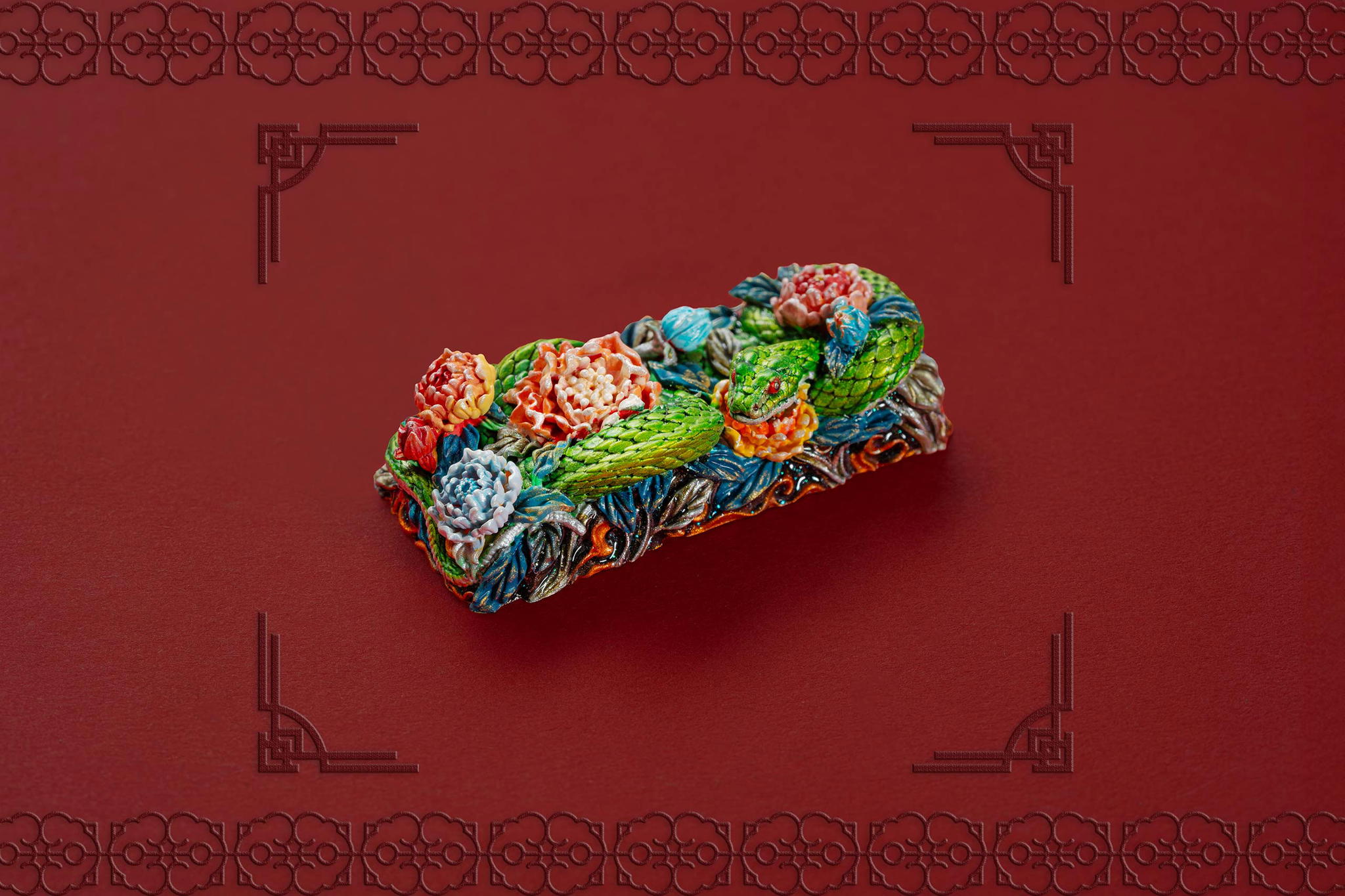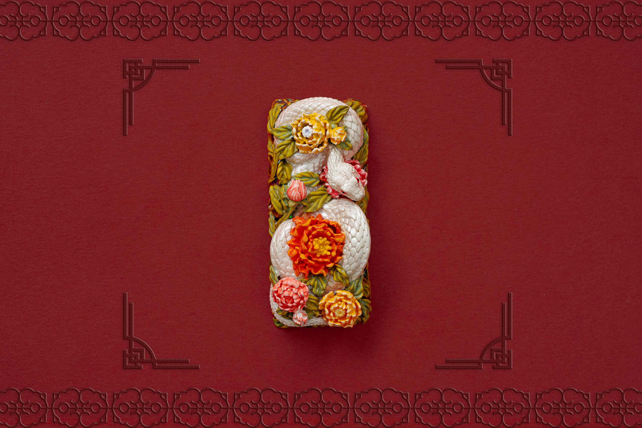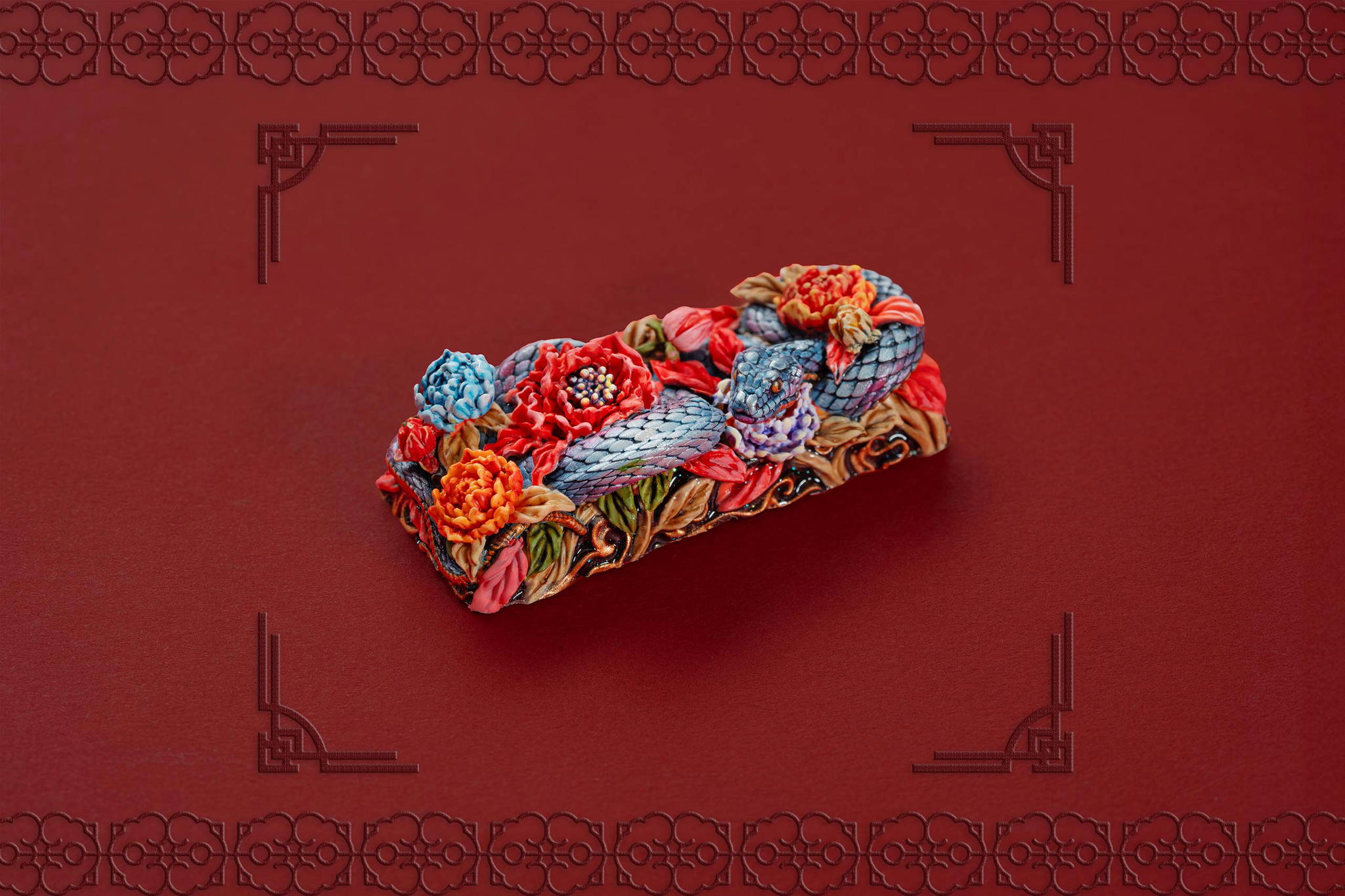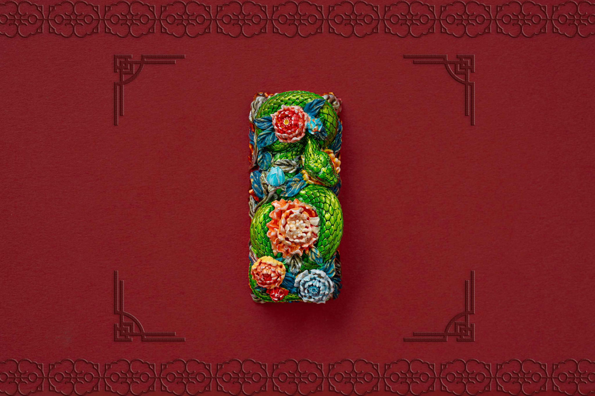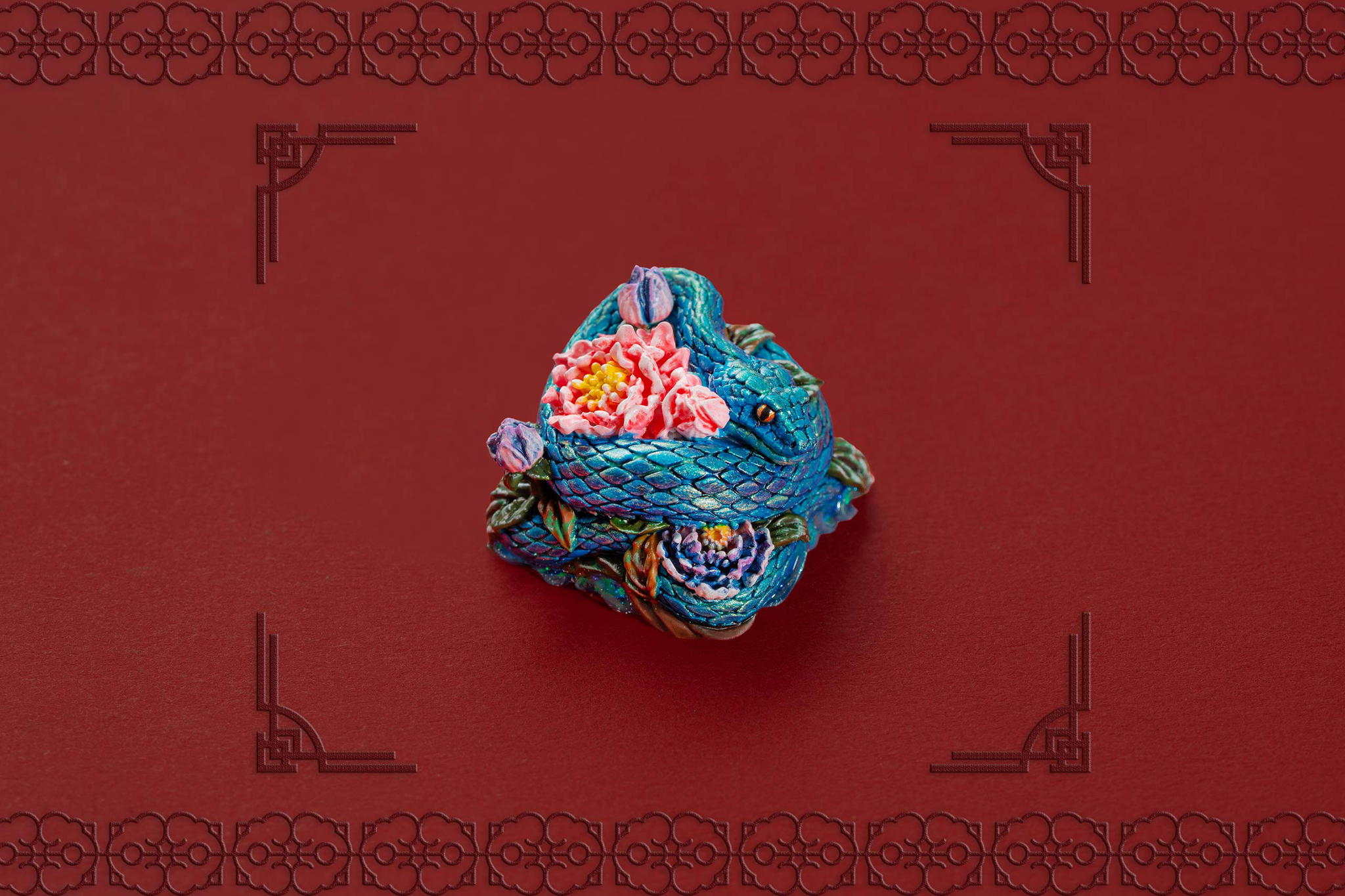 Inspired by this profound symbolism, the “Mystic Snake” artisan keycap collection emerges as a true masterpiece, celebrating the perfect fusion of power and elegance through the imagery of a serpent gracefully coiling around a blooming peony. This exquisite design represents the balance between strength and beauty, mystery and sophistication. The snake—fluid yet unwavering—symbolizes sharp intellect, patience, and resilience in the face of adversity. Meanwhile, the peony, often referred to as the “king of flowers,” signifies wealth, eternal beauty, and a life filled with fulfillment and happiness. Its lush, radiant petals embody grace, nobility, and deep, everlasting love.