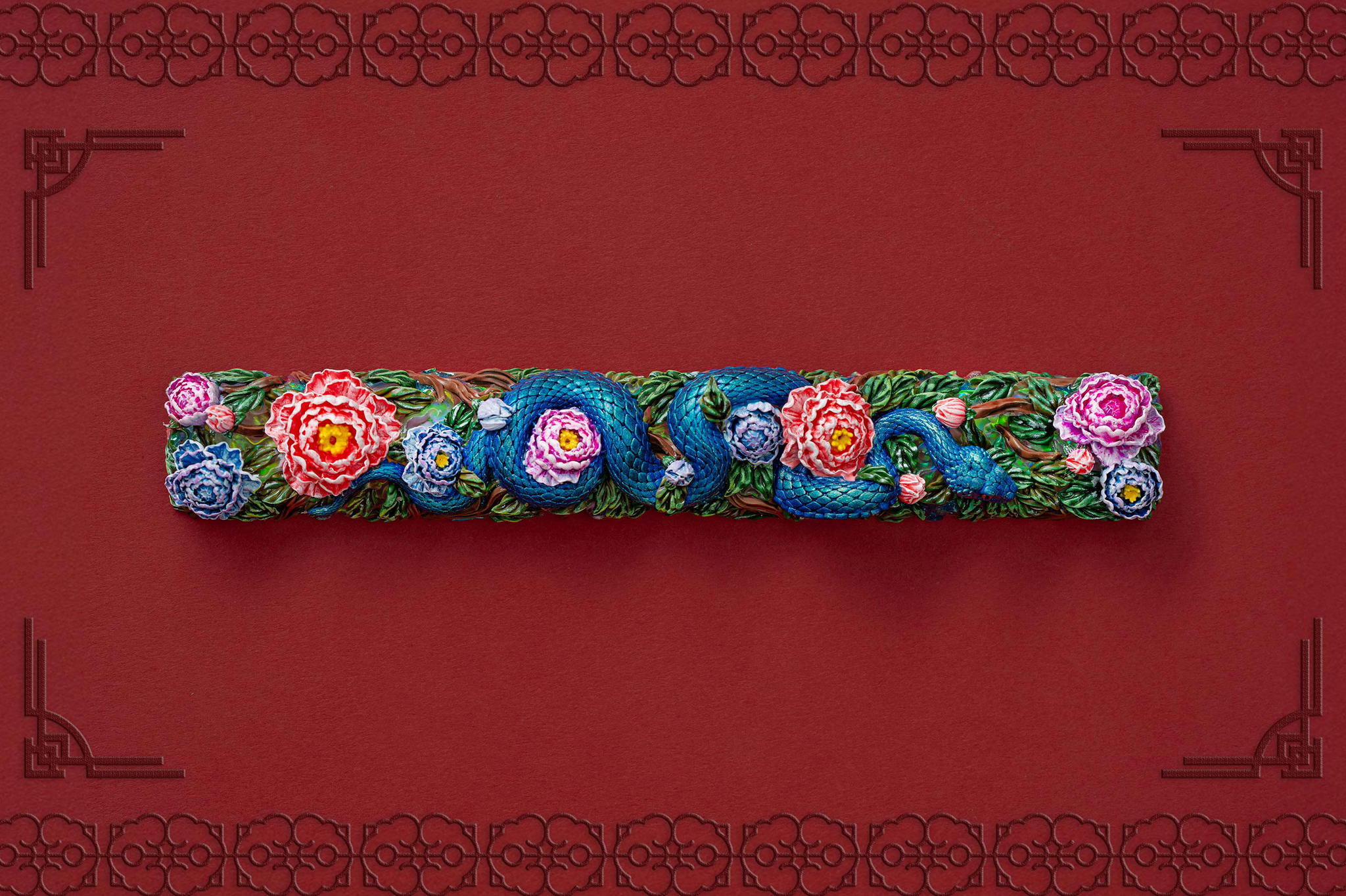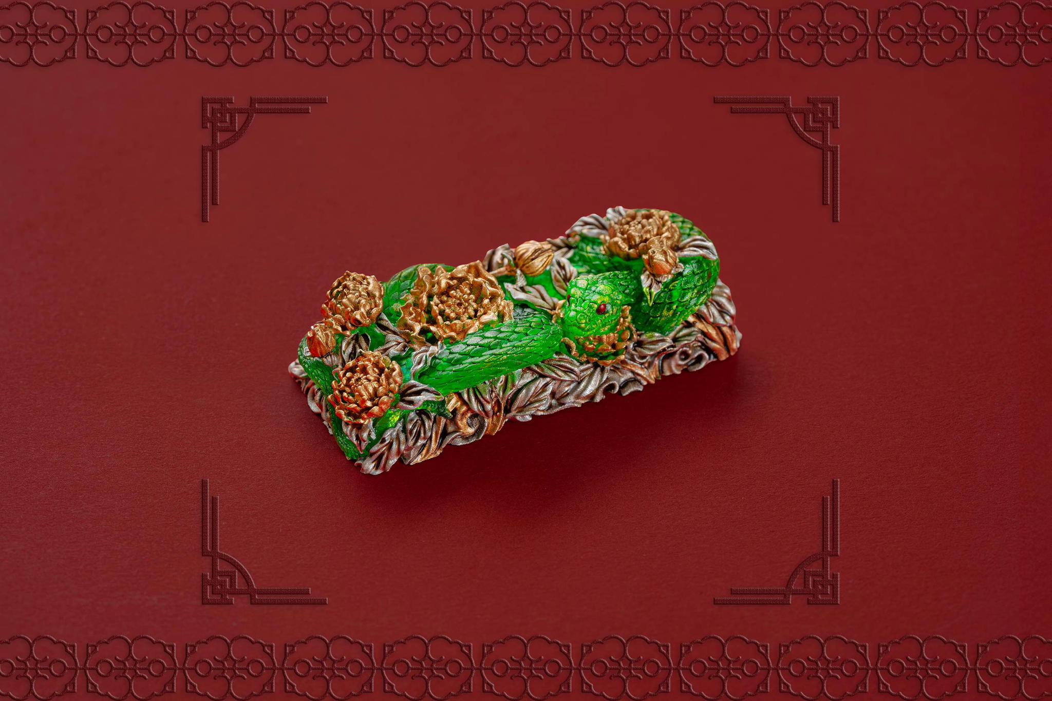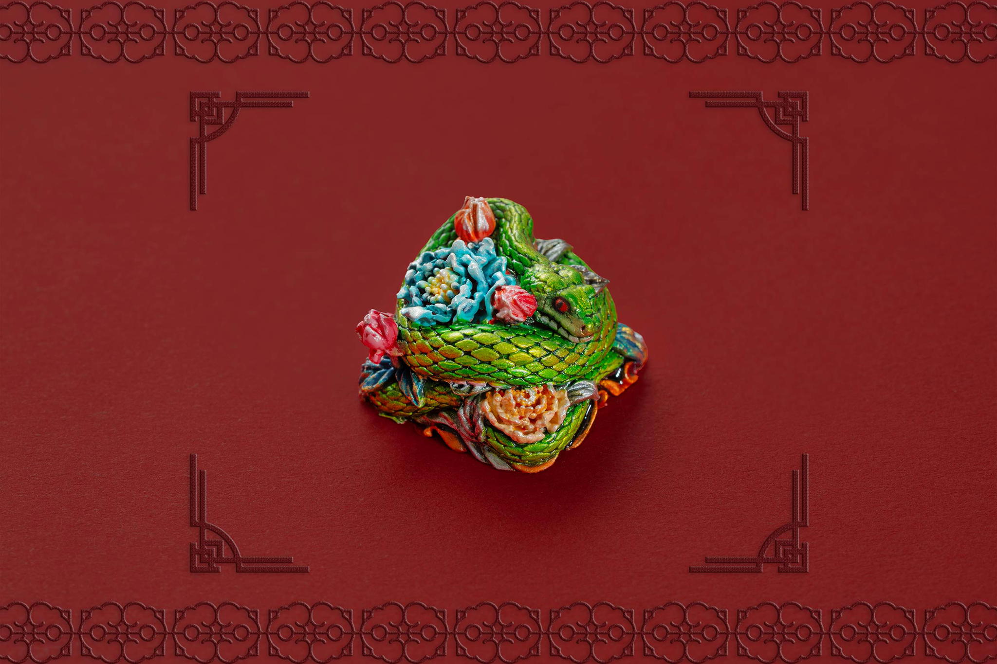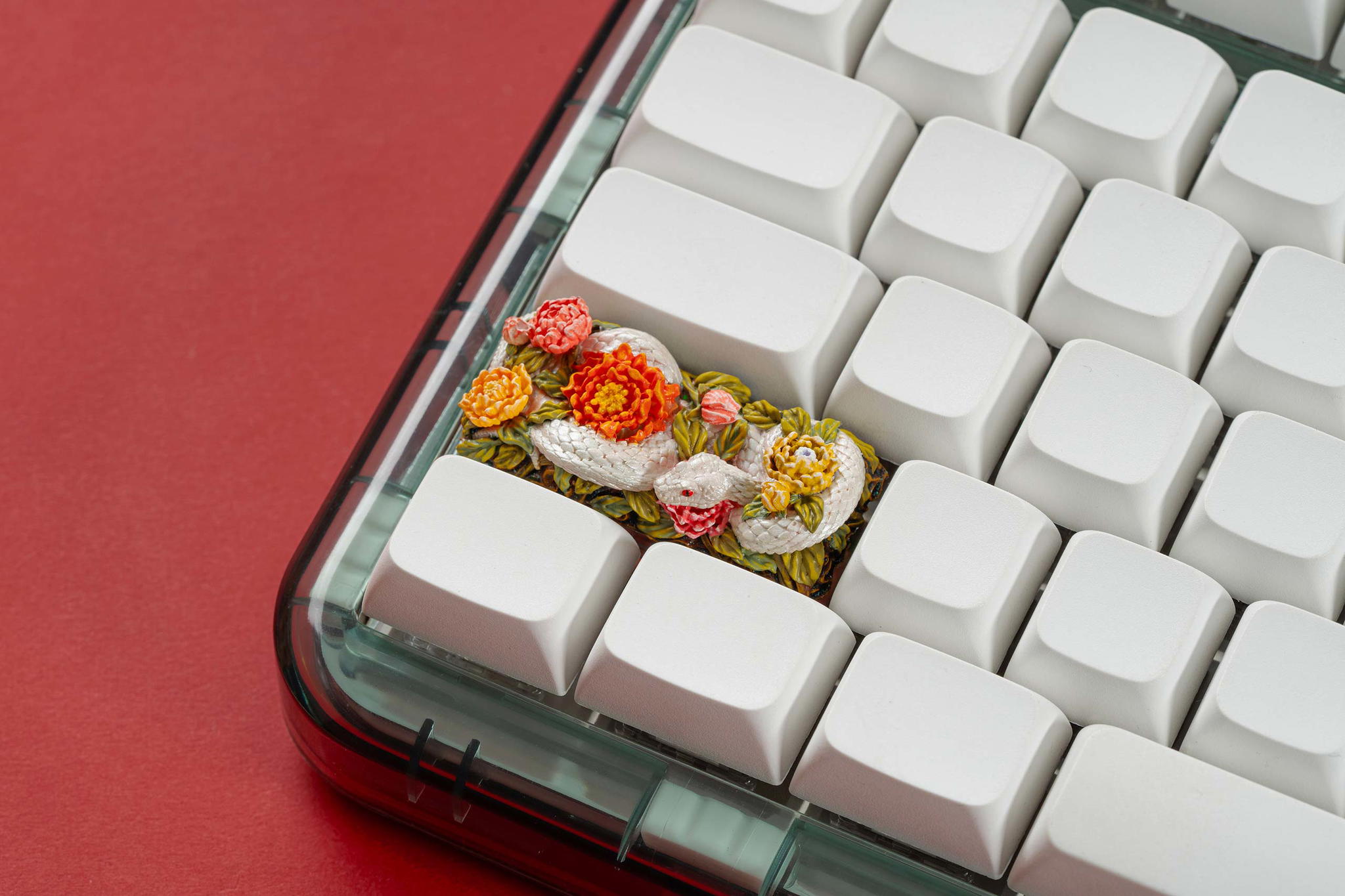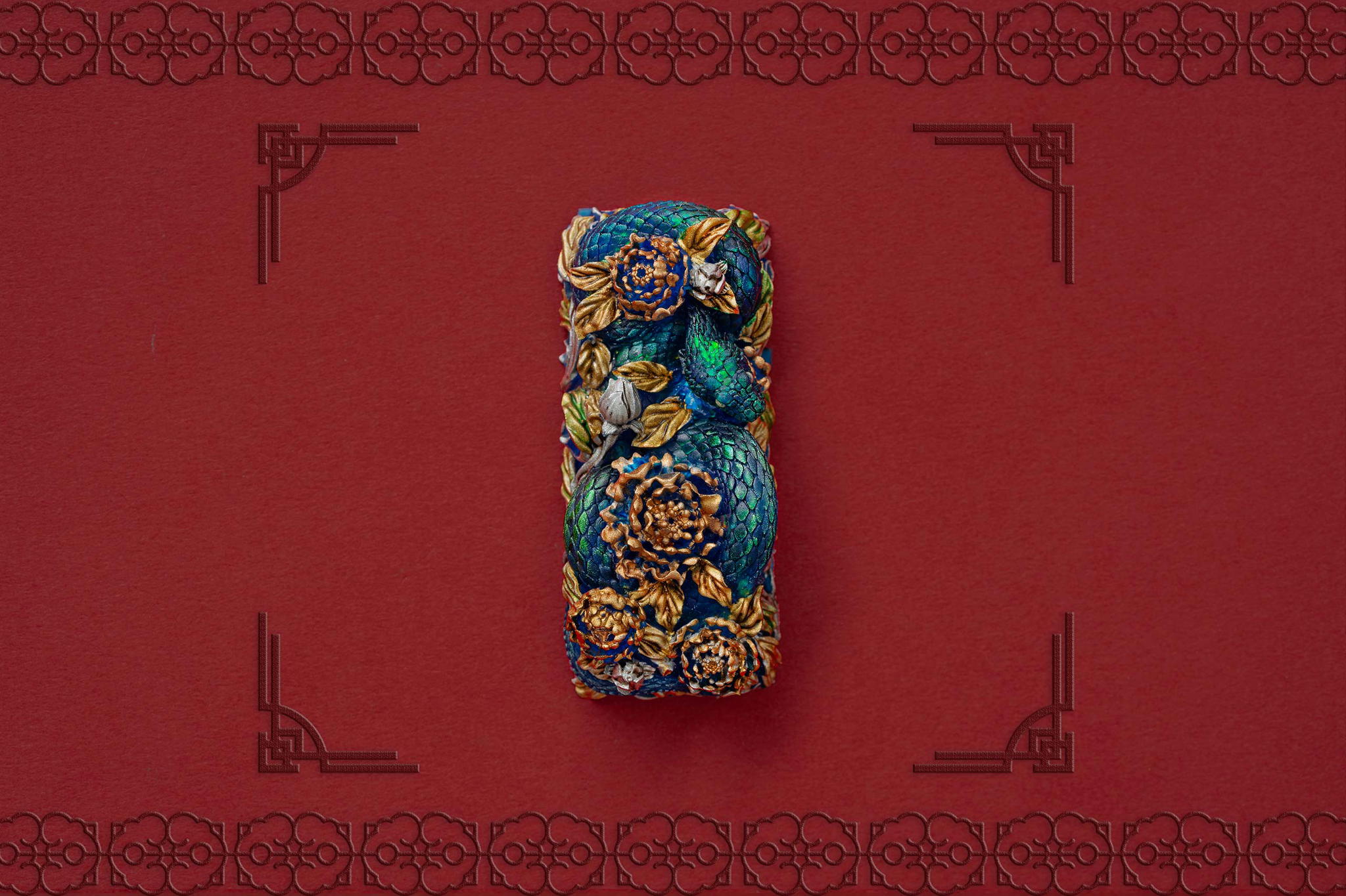Inspired by this profound symbolism, the “Mystic Snake” artisan keycap collection emerges as a true masterpiece, celebrating the perfect fusion of power and elegance through the imagery of a serpent gracefully coiling around a blooming peony. This exquisite design represents the balance between strength and beauty, mystery and sophistication. The snake—fluid yet unwavering—symbolizes sharp intellect, patience, and resilience in the face of adversity. Meanwhile, the peony, often referred to as the “king of flowers,” signifies wealth, eternal beauty, and a life filled with fulfillment and happiness. Its lush, radiant petals embody grace, nobility, and deep, everlasting love.
