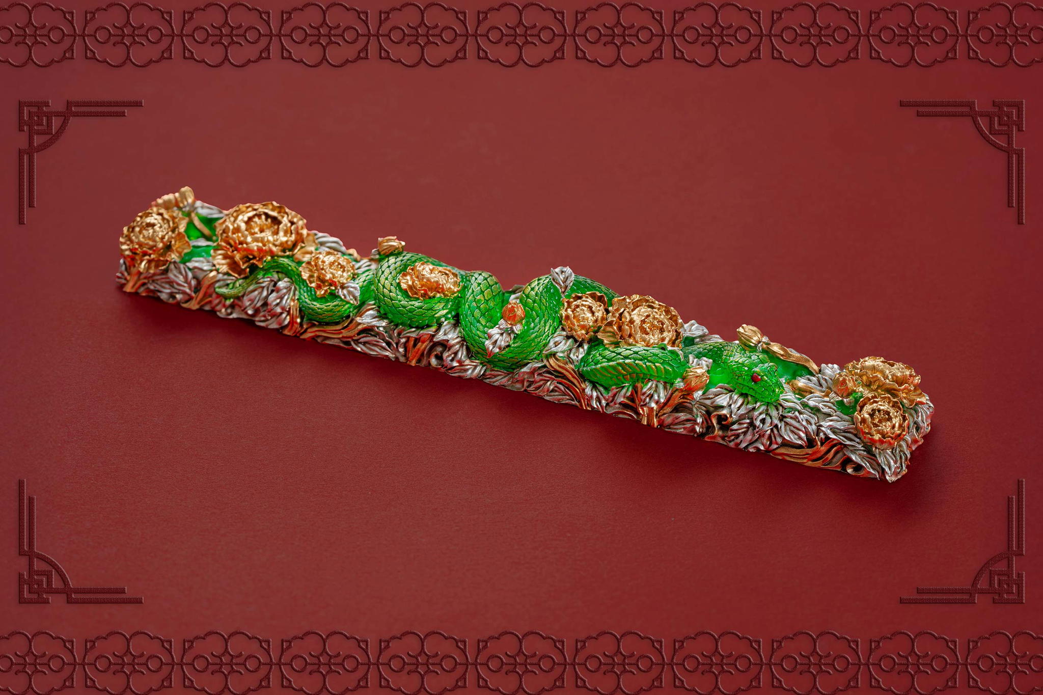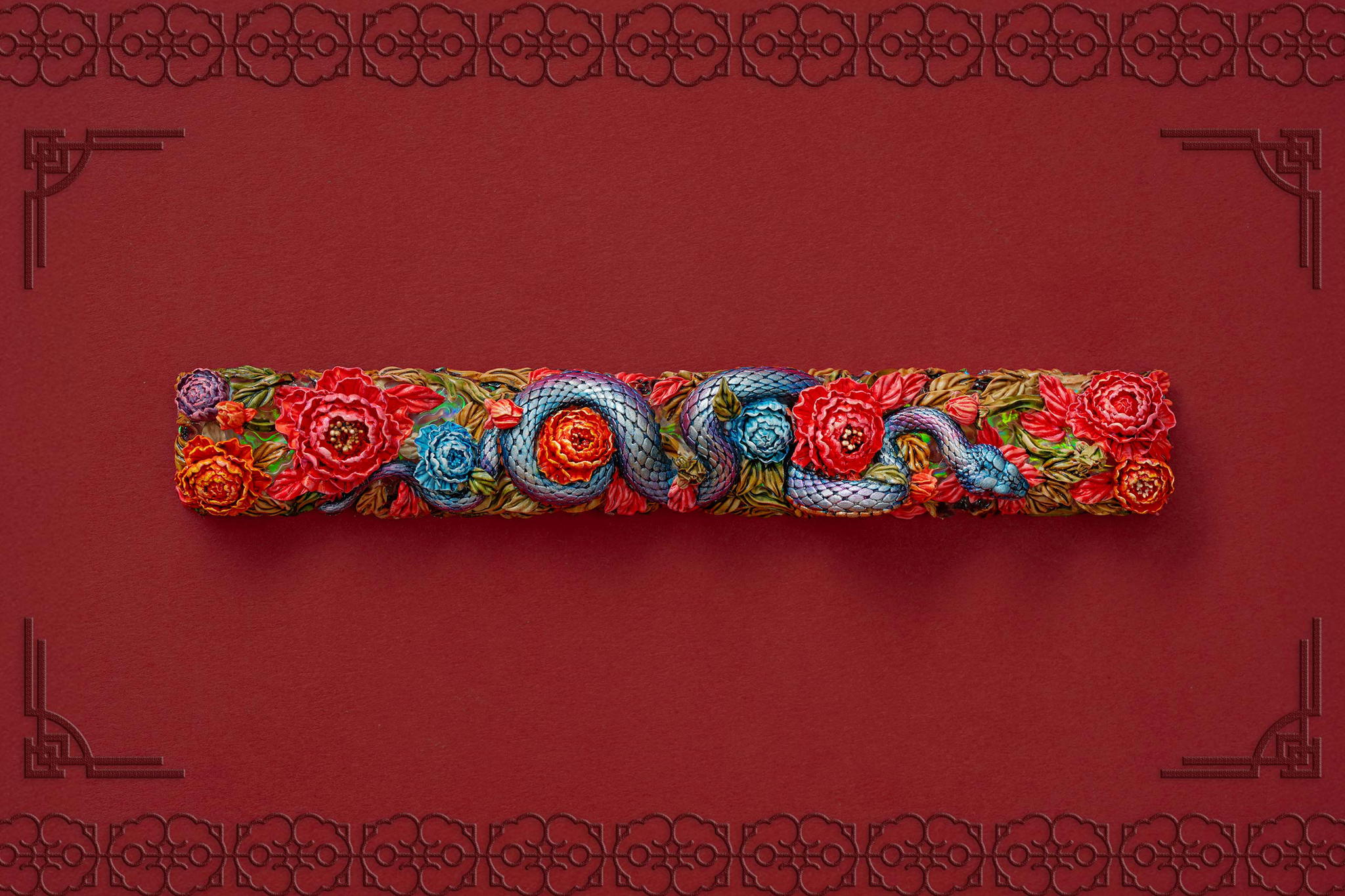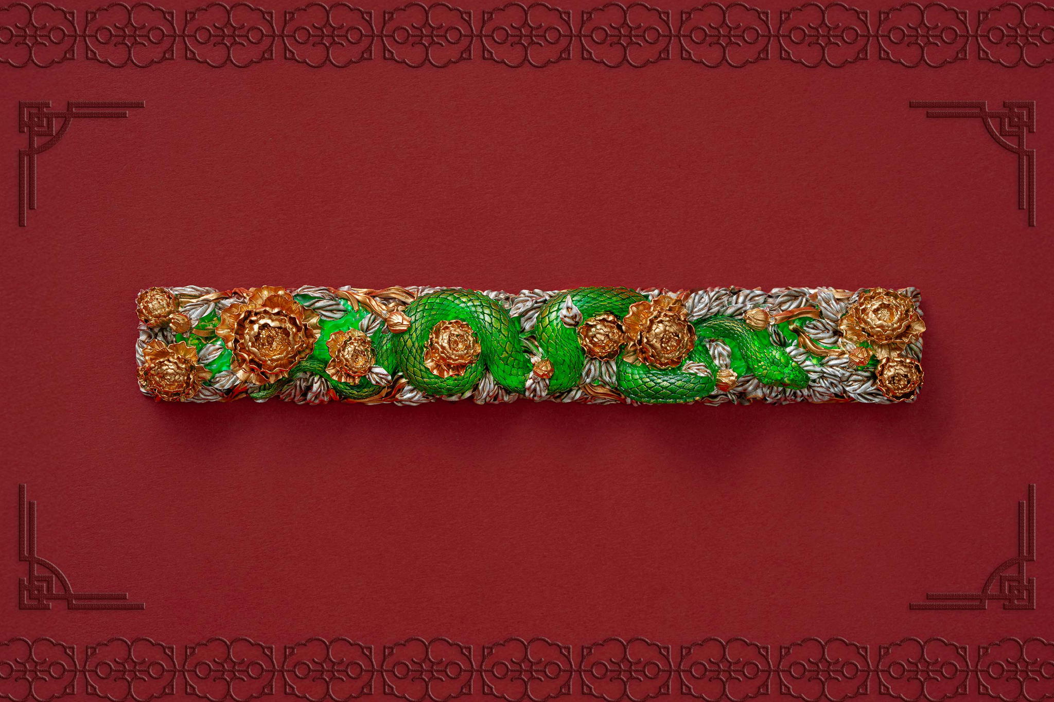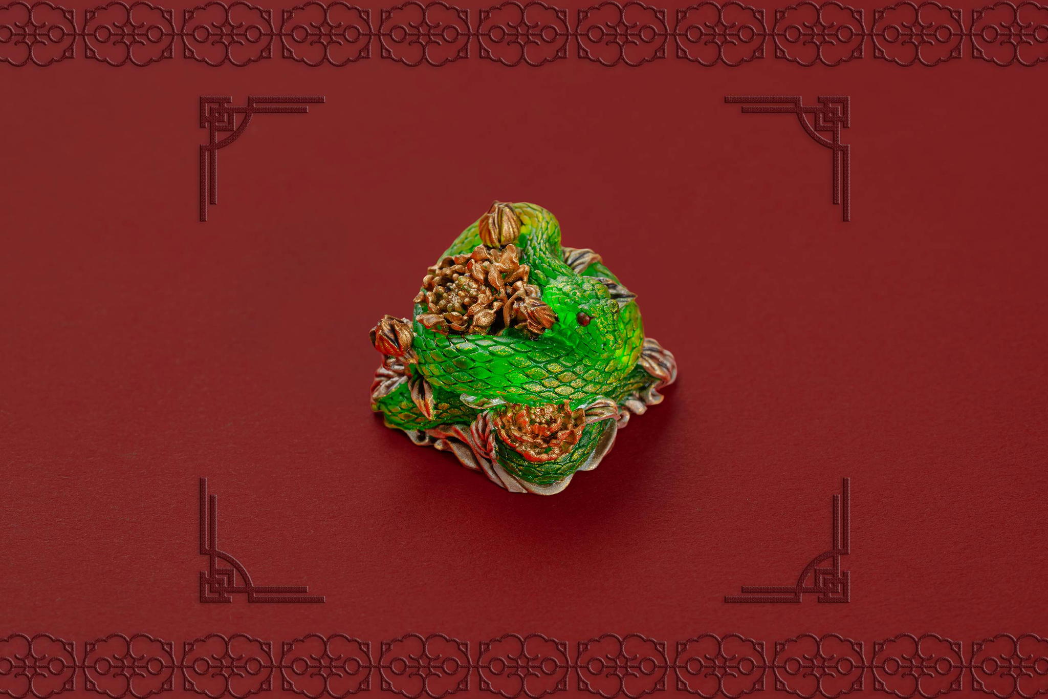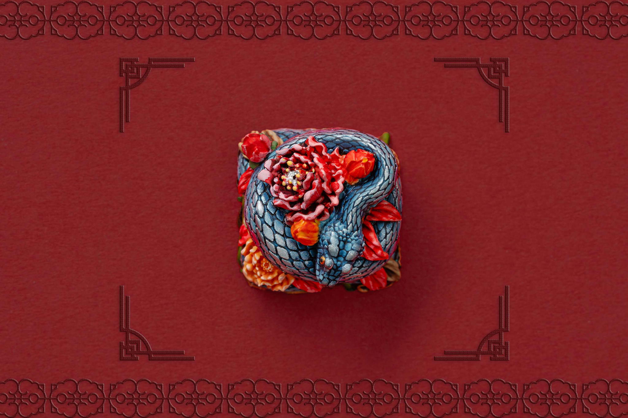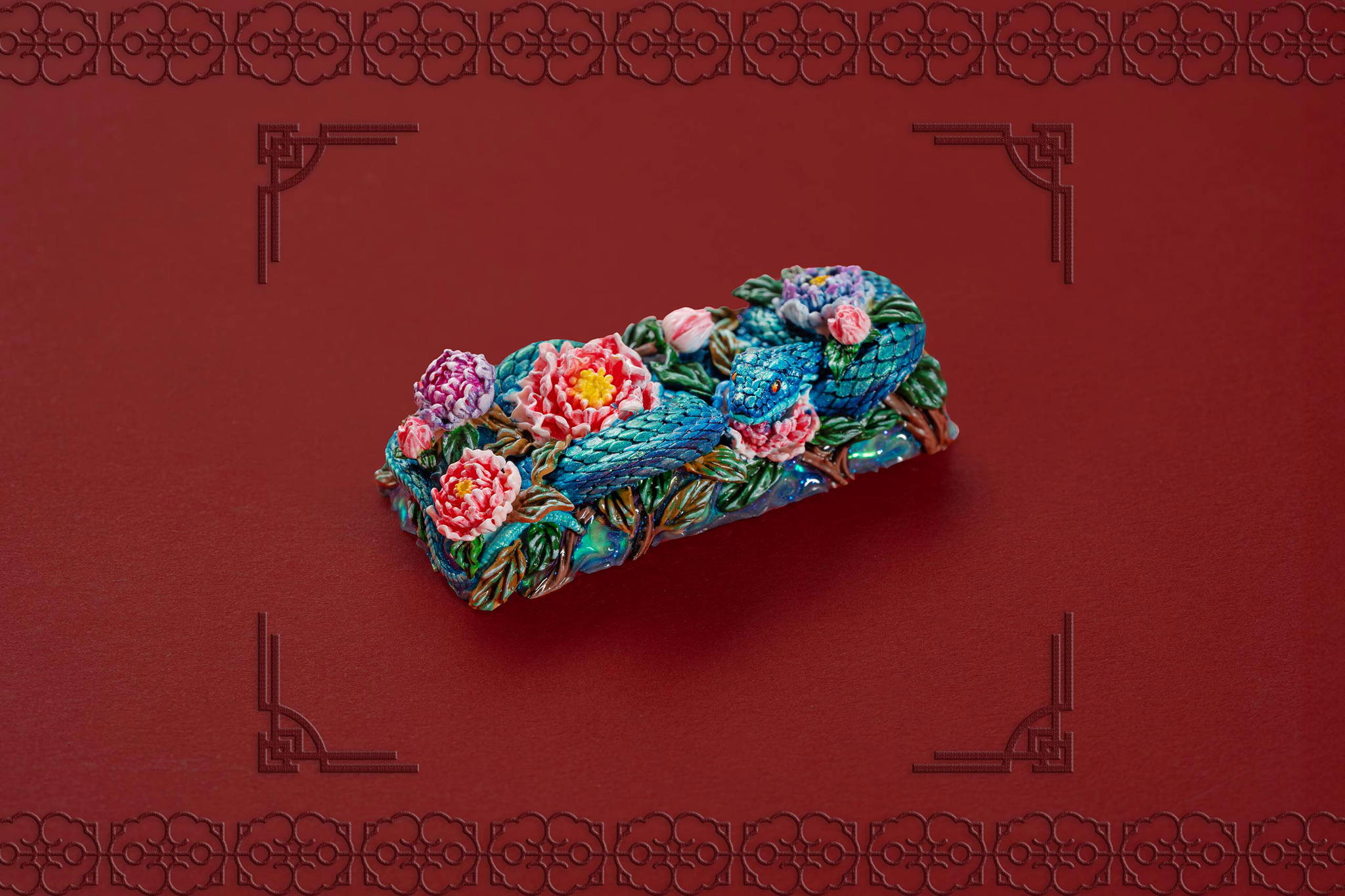 Inspired by this profound symbolism, the “Mystic Snake” artisan keycap collection emerges as a true masterpiece, celebrating the perfect fusion of power and elegance through the imagery of a serpent gracefully coiling around a blooming peony. This exquisite design represents the balance between strength and beauty, mystery and sophistication. The snake—fluid yet unwavering—symbolizes sharp intellect, patience, and resilience in the face of adversity. Meanwhile, the peony, often referred to as the “king of flowers,” signifies wealth, eternal beauty, and a life filled with fulfillment and happiness. Its lush, radiant petals embody grace, nobility, and deep, everlasting love.
