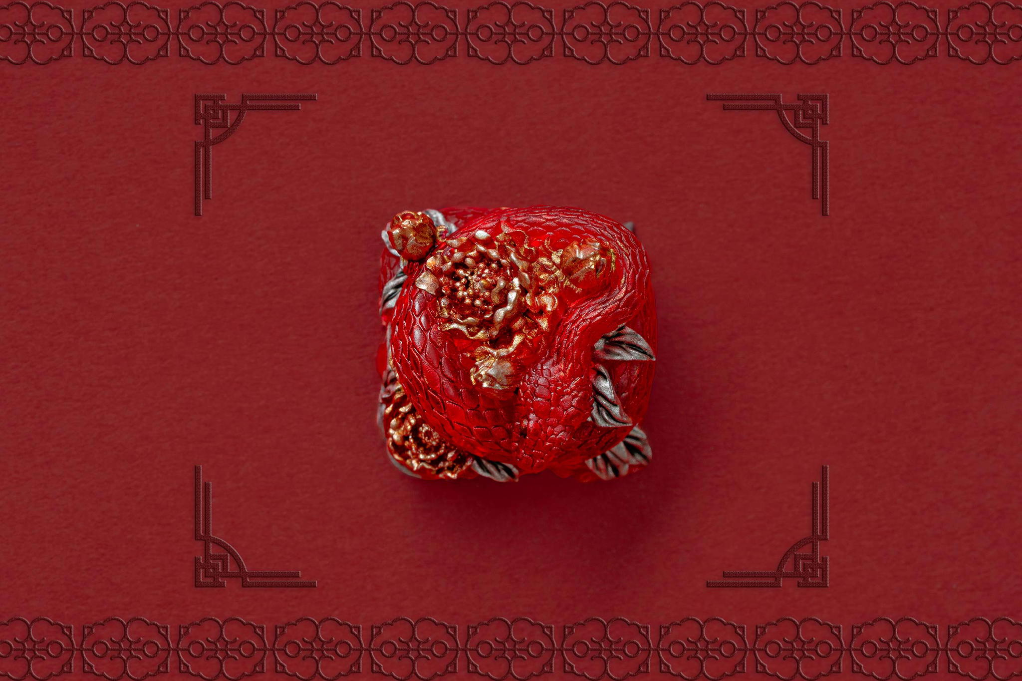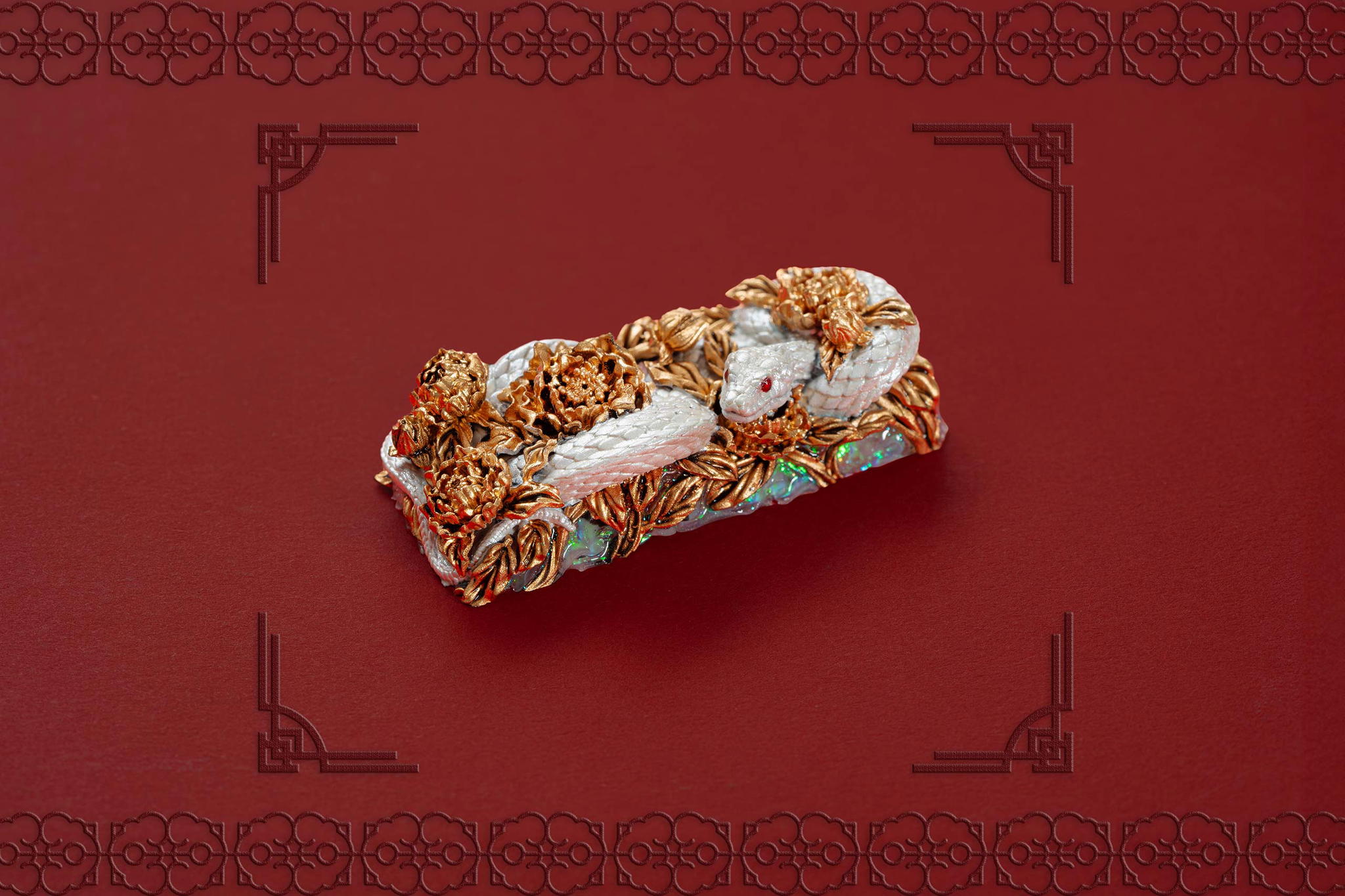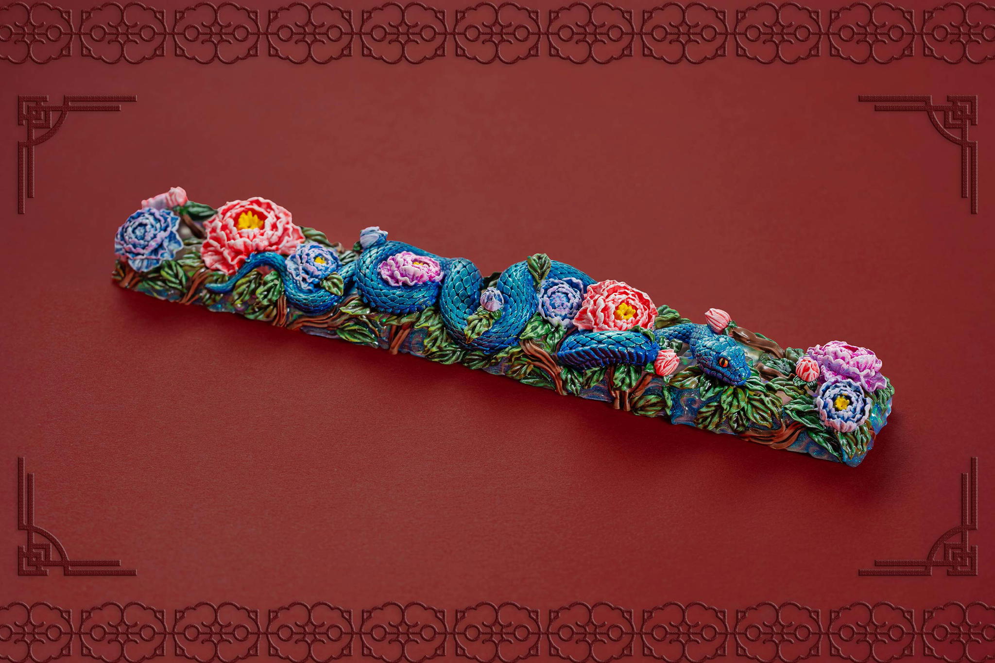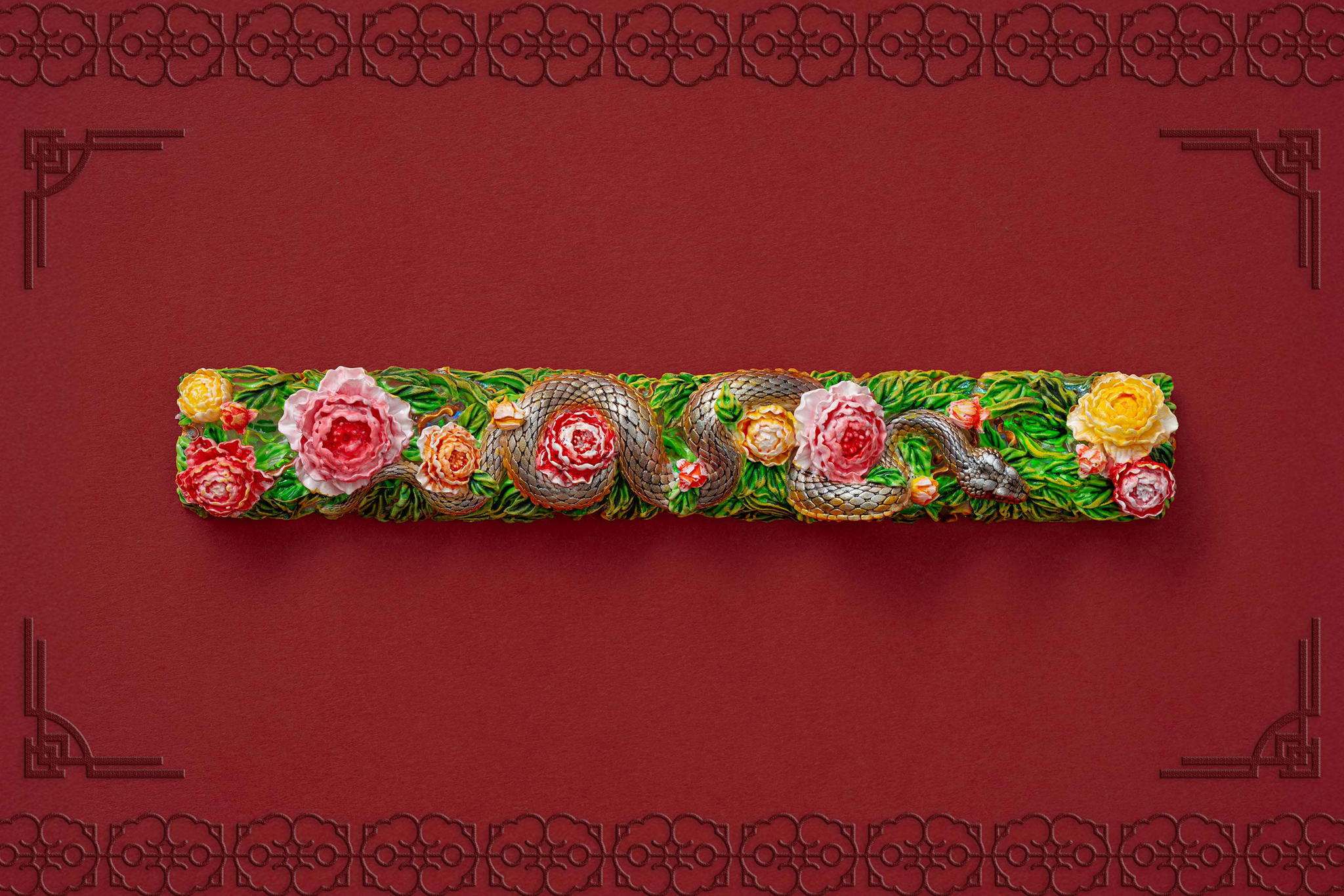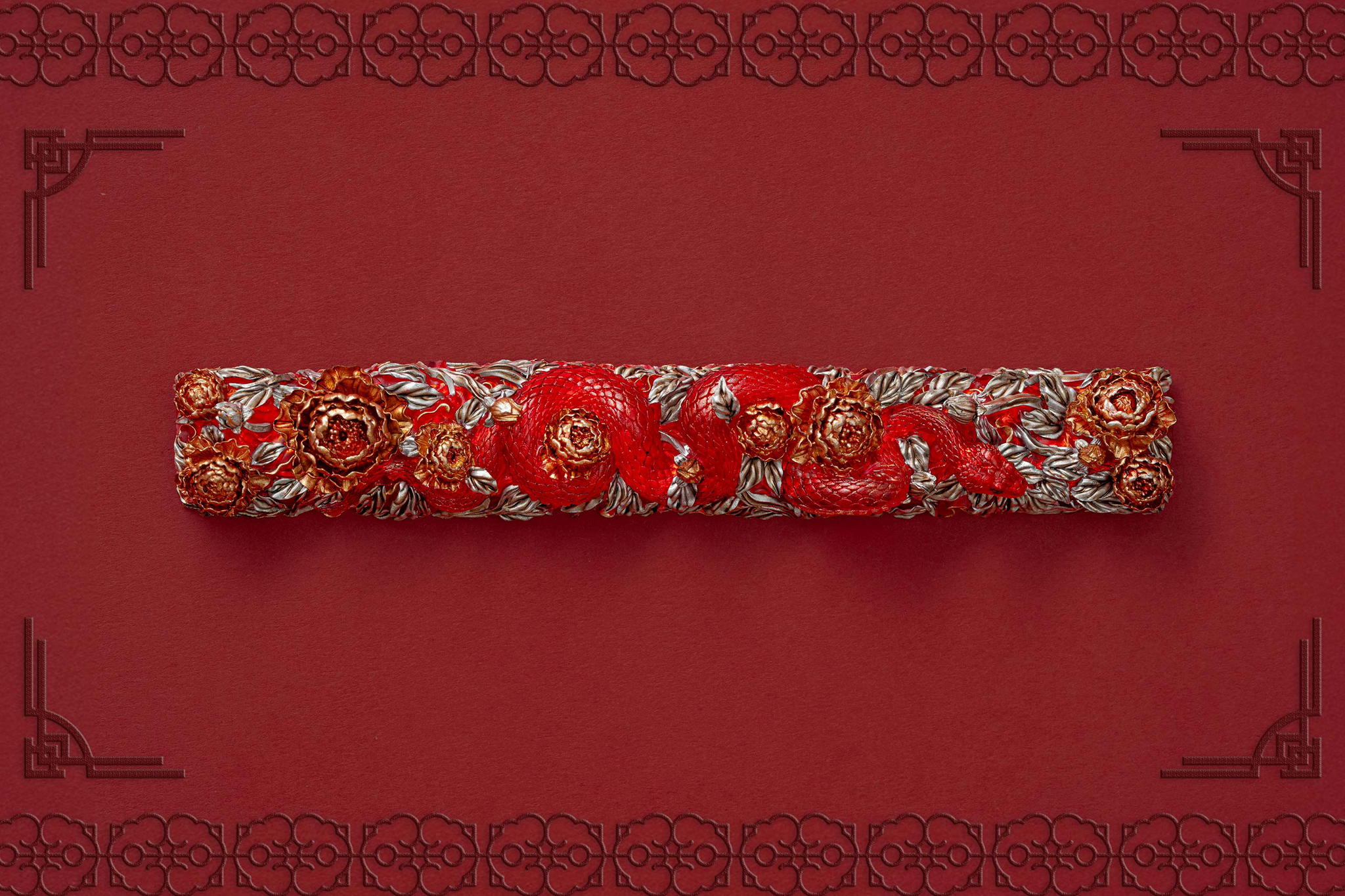 Inspired by this profound symbolism, the “Mystic Snake” artisan keycap collection emerges as a true masterpiece, celebrating the perfect fusion of power and elegance through the imagery of a serpent gracefully coiling around a blooming peony. This exquisite design represents the balance between strength and beauty, mystery and sophistication. The snake—fluid yet unwavering—symbolizes sharp intellect, patience, and resilience in the face of adversity. Meanwhile, the peony, often referred to as the “king of flowers,” signifies wealth, eternal beauty, and a life filled with fulfillment and happiness. Its lush, radiant petals embody grace, nobility, and deep, everlasting love.