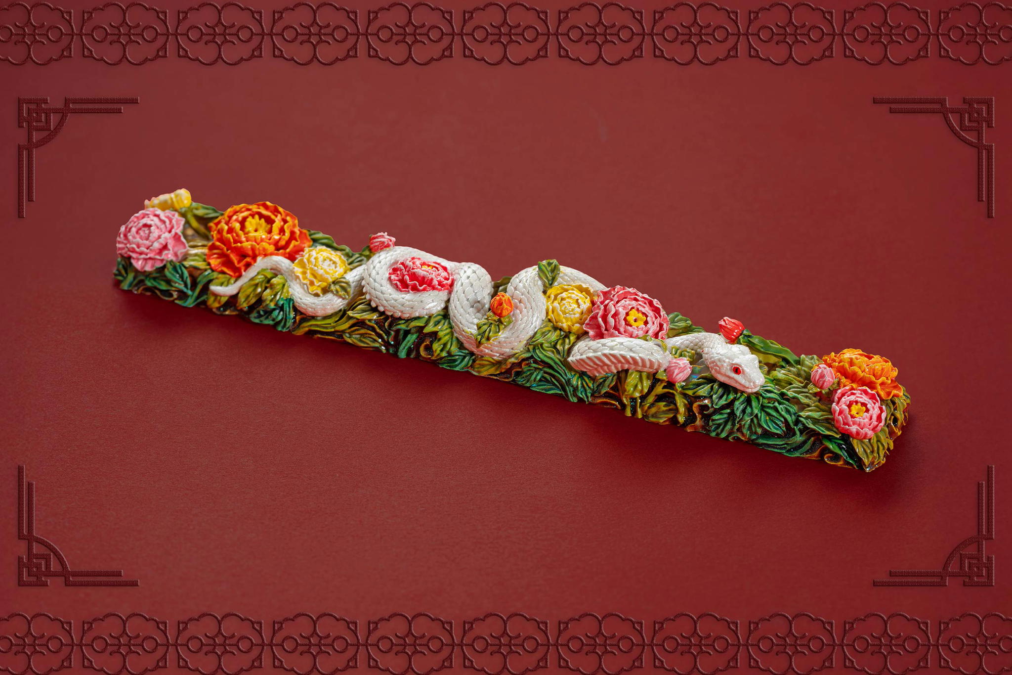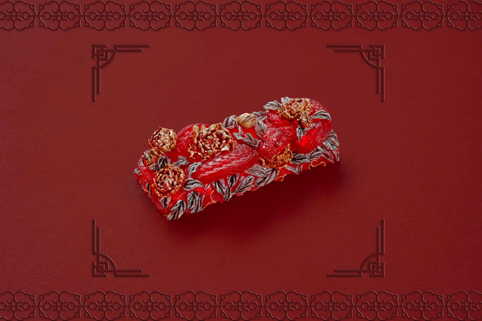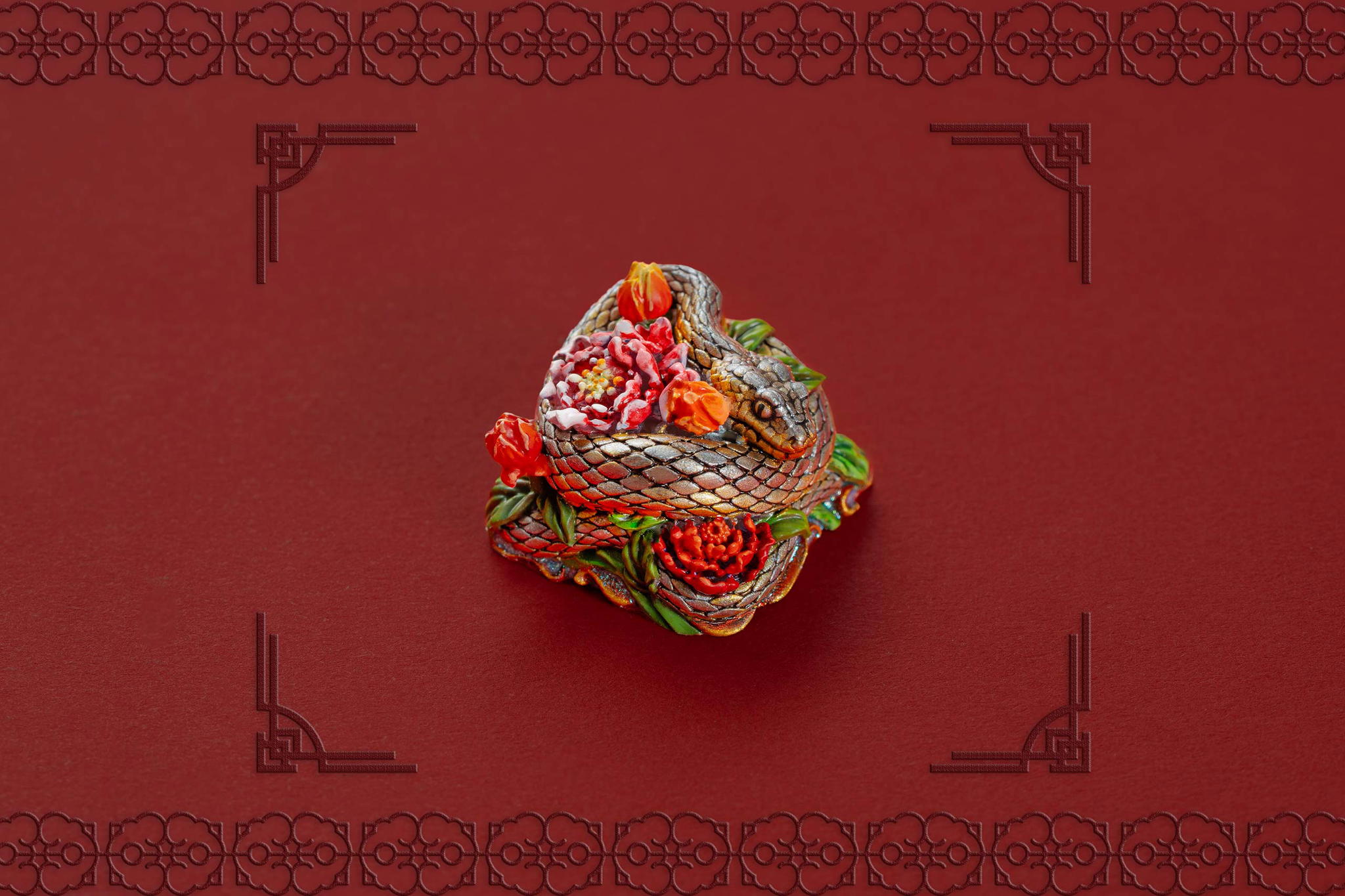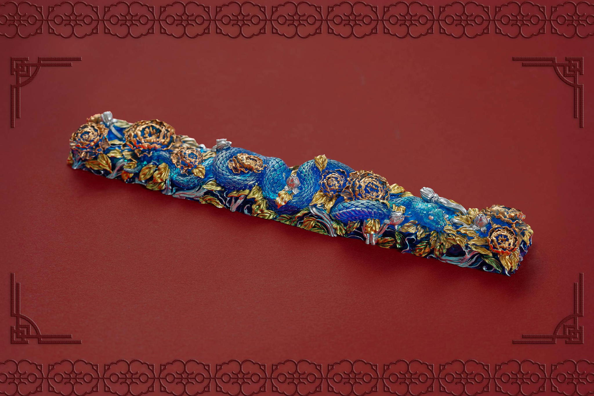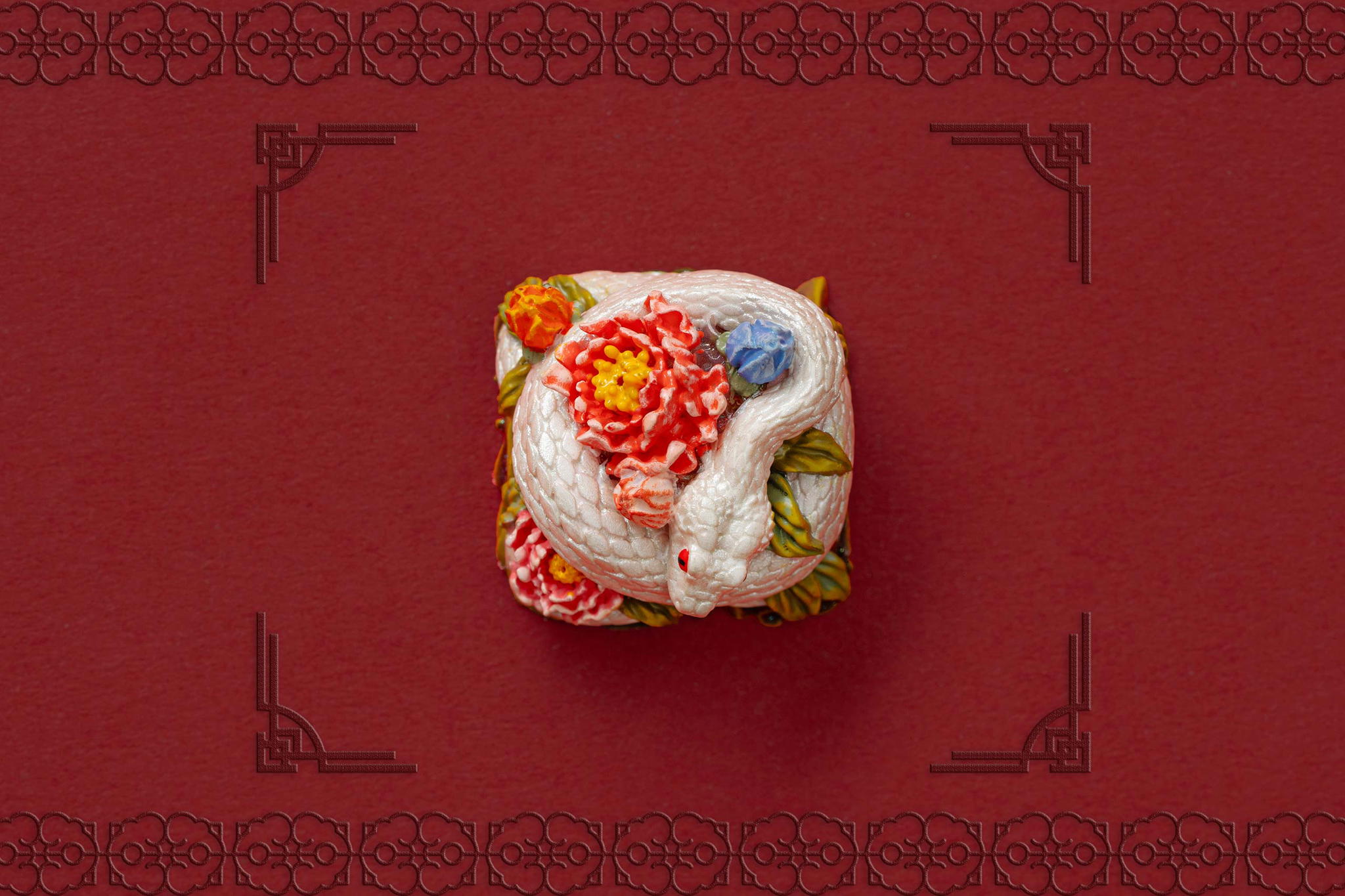 Inspired by this profound symbolism, the “Mystic Snake” artisan keycap collection emerges as a true masterpiece, celebrating the perfect fusion of power and elegance through the imagery of a serpent gracefully coiling around a blooming peony. This exquisite design represents the balance between strength and beauty, mystery and sophistication. The snake—fluid yet unwavering—symbolizes sharp intellect, patience, and resilience in the face of adversity. Meanwhile, the peony, often referred to as the “king of flowers,” signifies wealth, eternal beauty, and a life filled with fulfillment and happiness. Its lush, radiant petals embody grace, nobility, and deep, everlasting love.