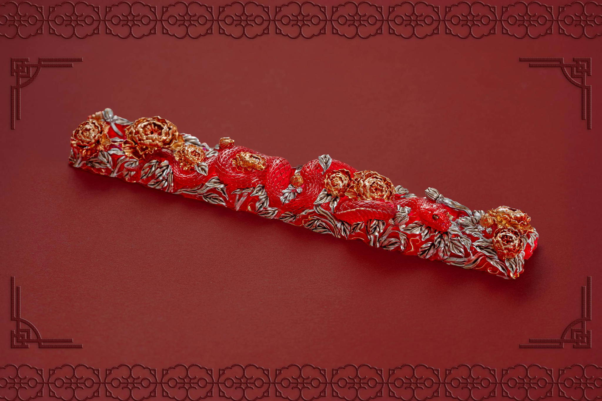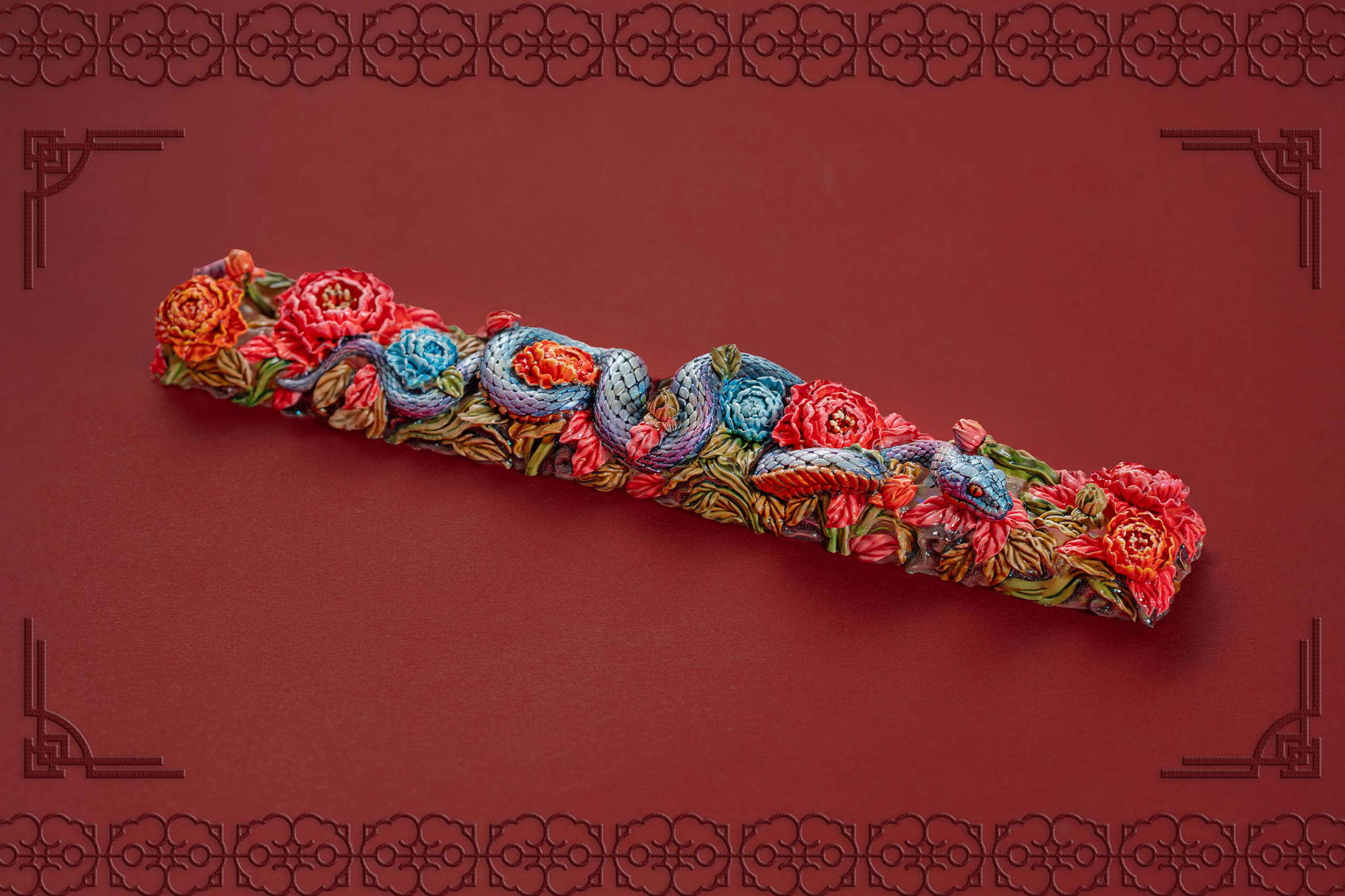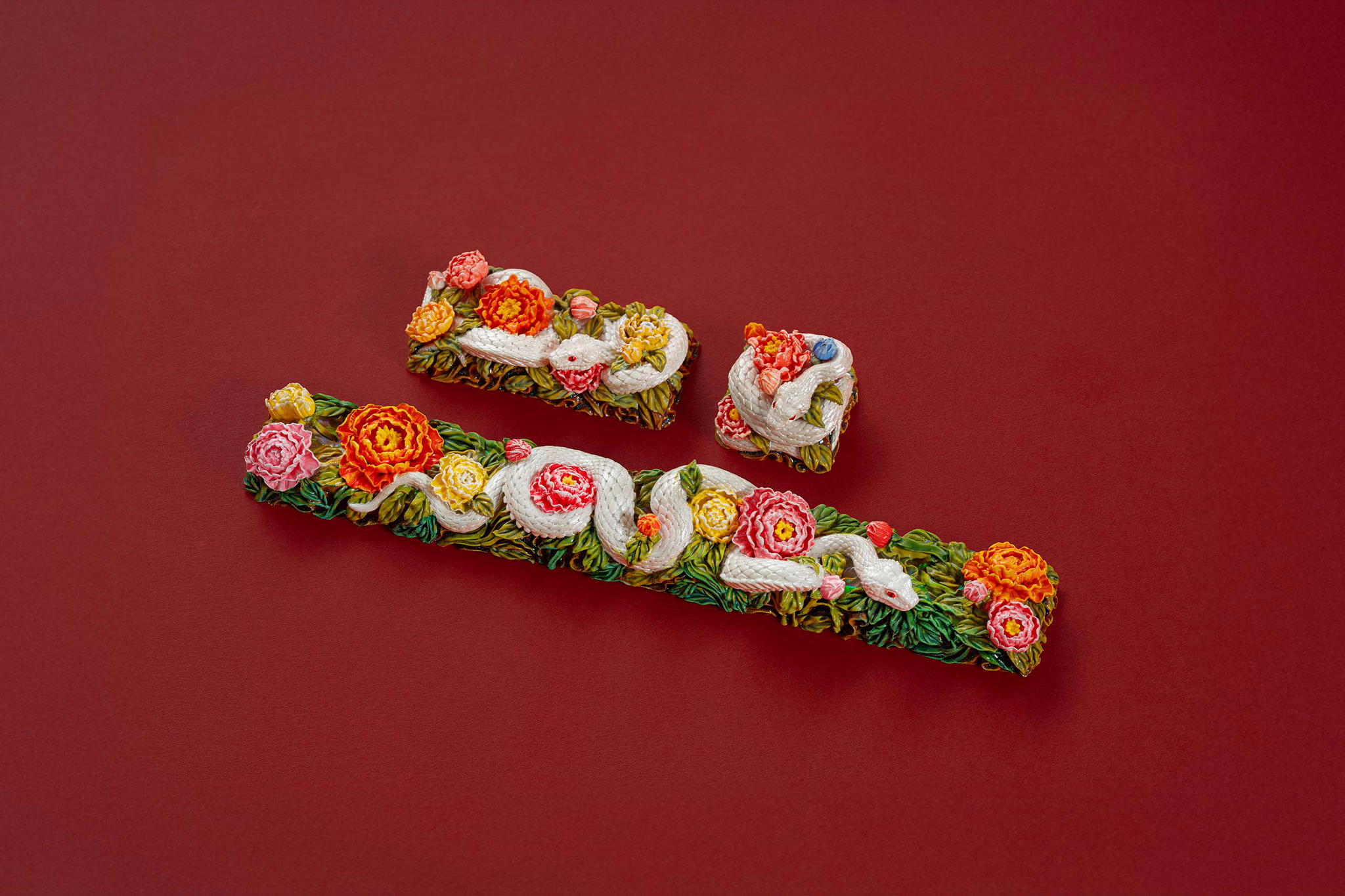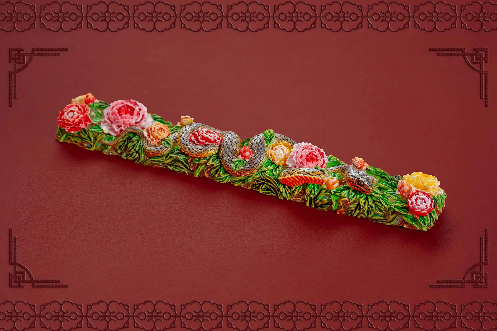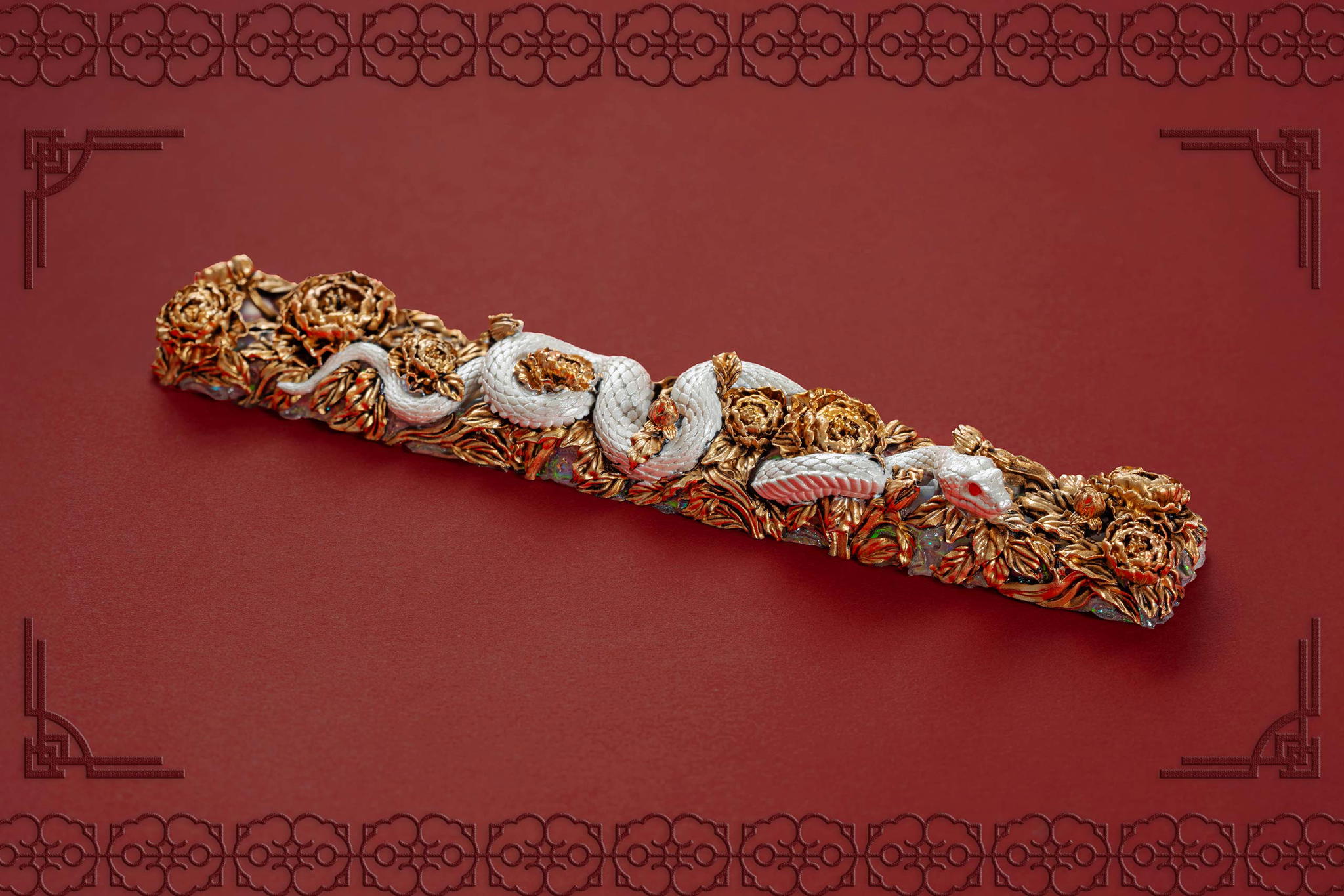 Inspired by this profound symbolism, the “Mystic Snake” artisan keycap collection emerges as a true masterpiece, celebrating the perfect fusion of power and elegance through the imagery of a serpent gracefully coiling around a blooming peony. This exquisite design represents the balance between strength and beauty, mystery and sophistication. The snake—fluid yet unwavering—symbolizes sharp intellect, patience, and resilience in the face of adversity. Meanwhile, the peony, often referred to as the “king of flowers,” signifies wealth, eternal beauty, and a life filled with fulfillment and happiness. Its lush, radiant petals embody grace, nobility, and deep, everlasting love.