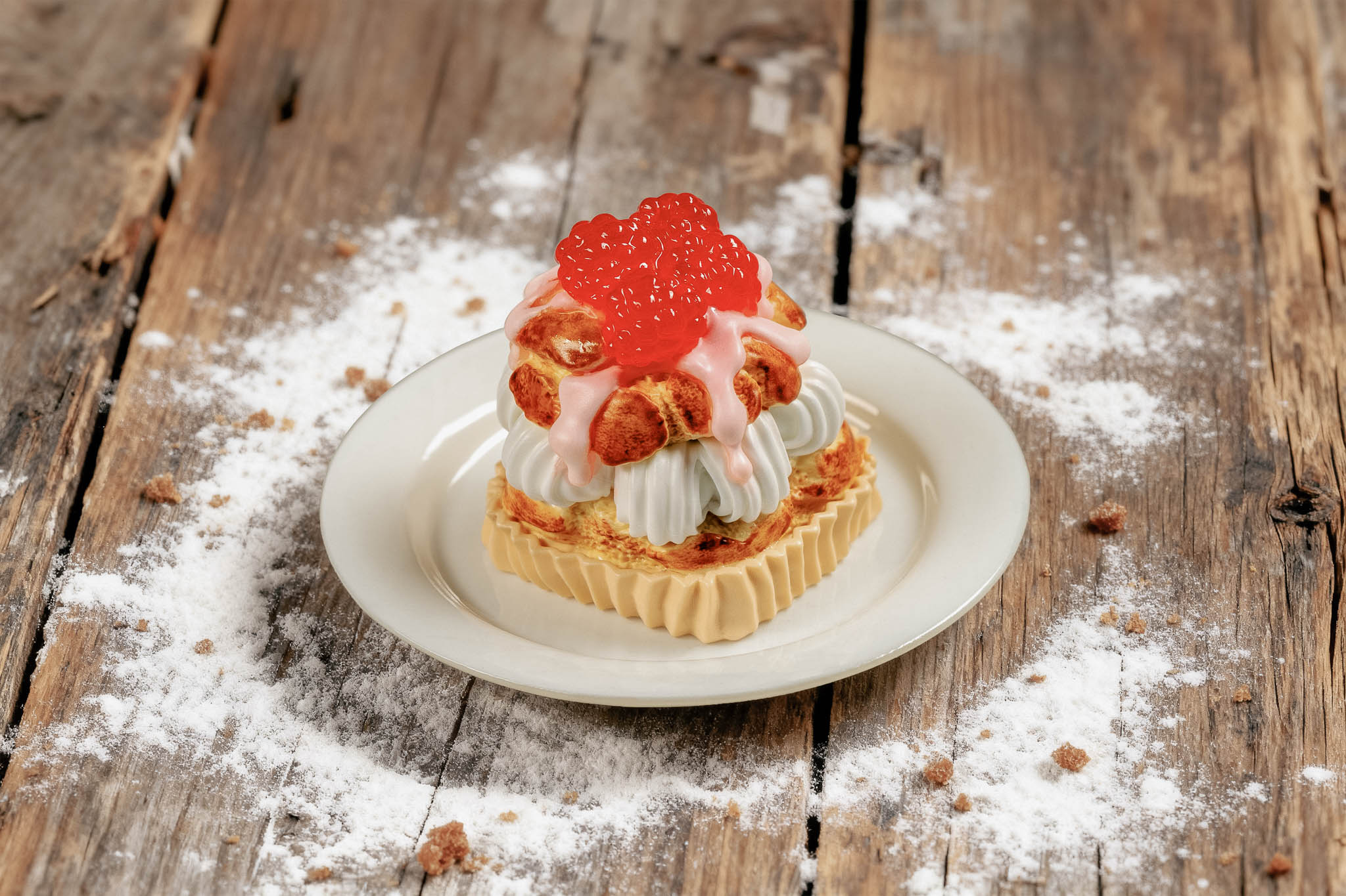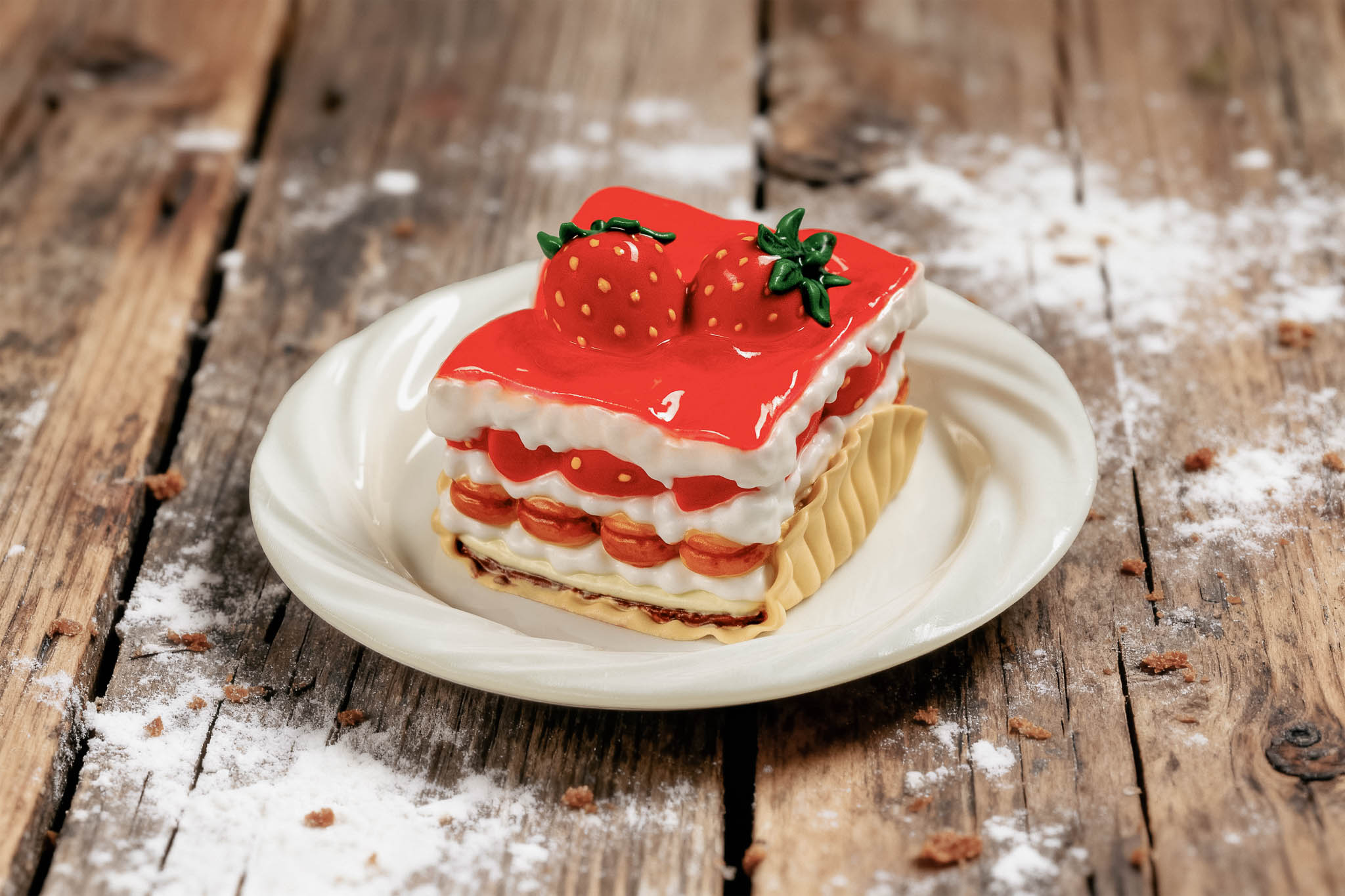 To keep that feeling intact, everything is made by hand. From pouring the resin and mixing colors to shaping and finishing the surface. There are no pre-printed forms, no painted shells hiding a fixed shape underneath. Each piece takes shape gradually during the process, which is why no two are ever exactly the same,  just like real pastries.