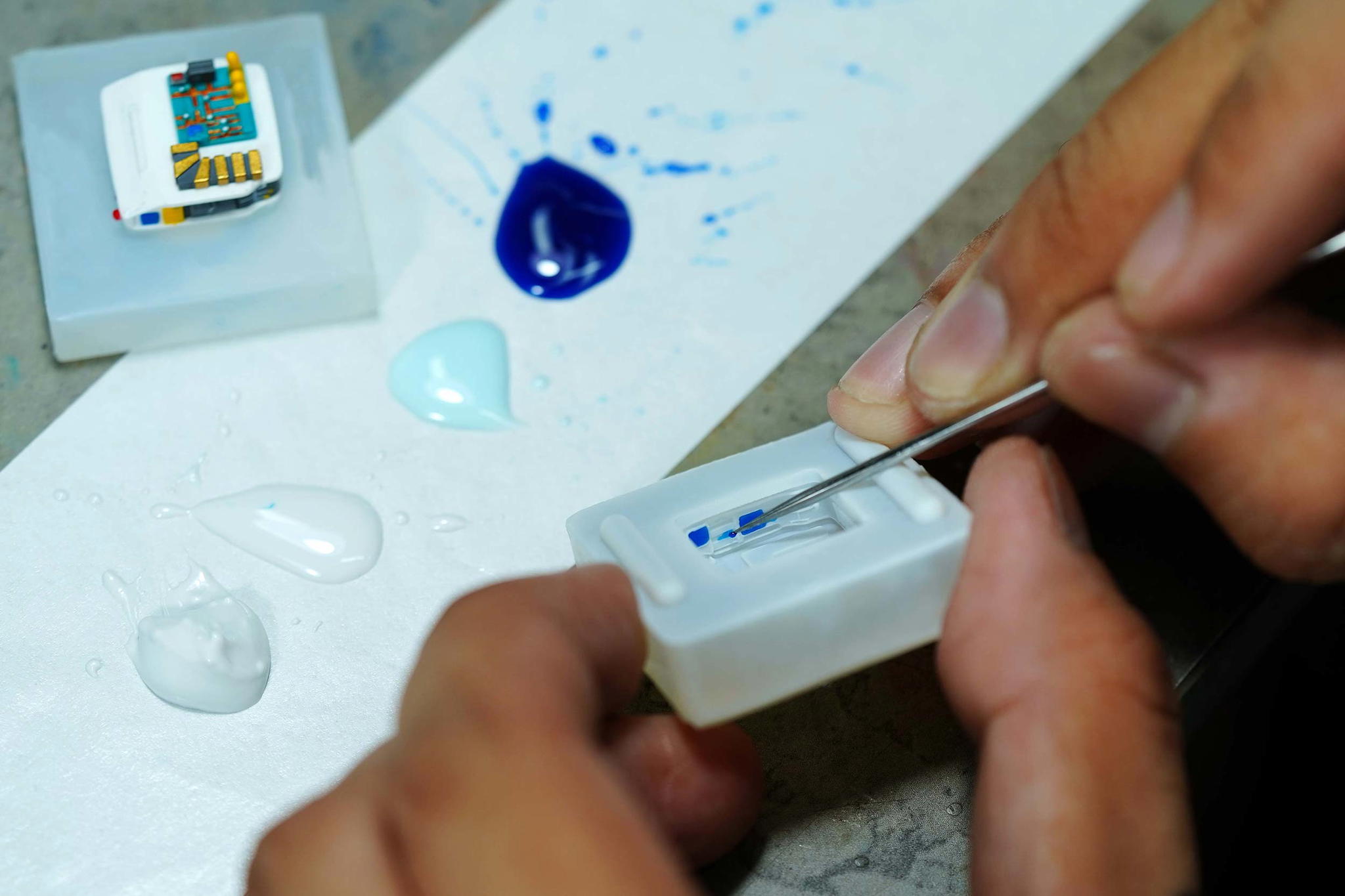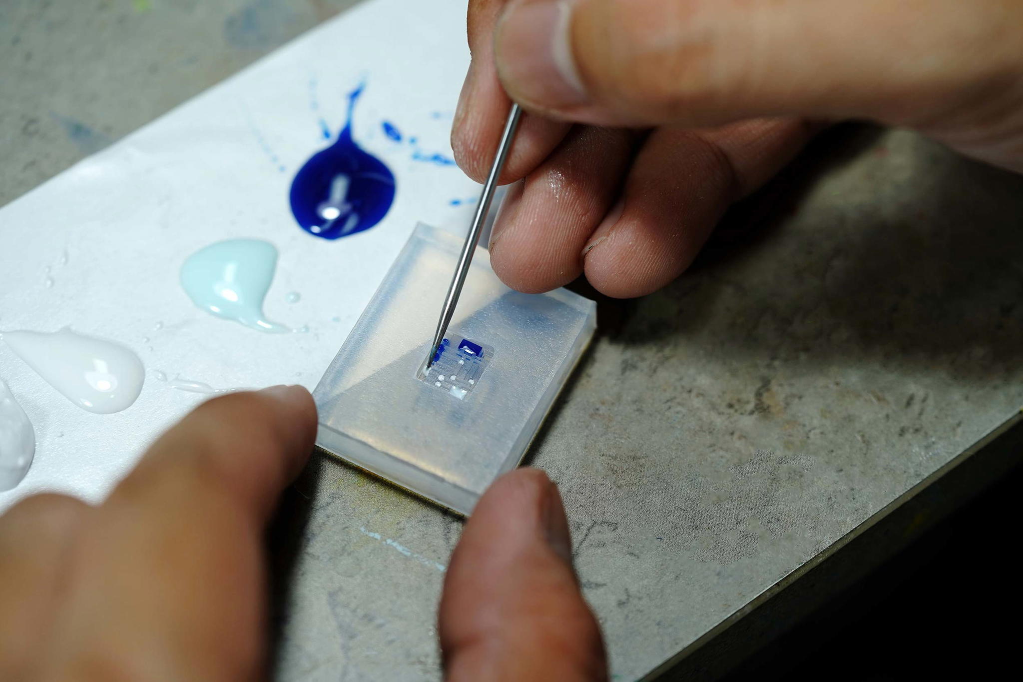 After the tiny parts are secured to the base, we start moulding the first outer case. It takes roughly 16-24 hours for them to dry completely. The cases then go through surface treatment while our artisans begin colouring the outside pieces.