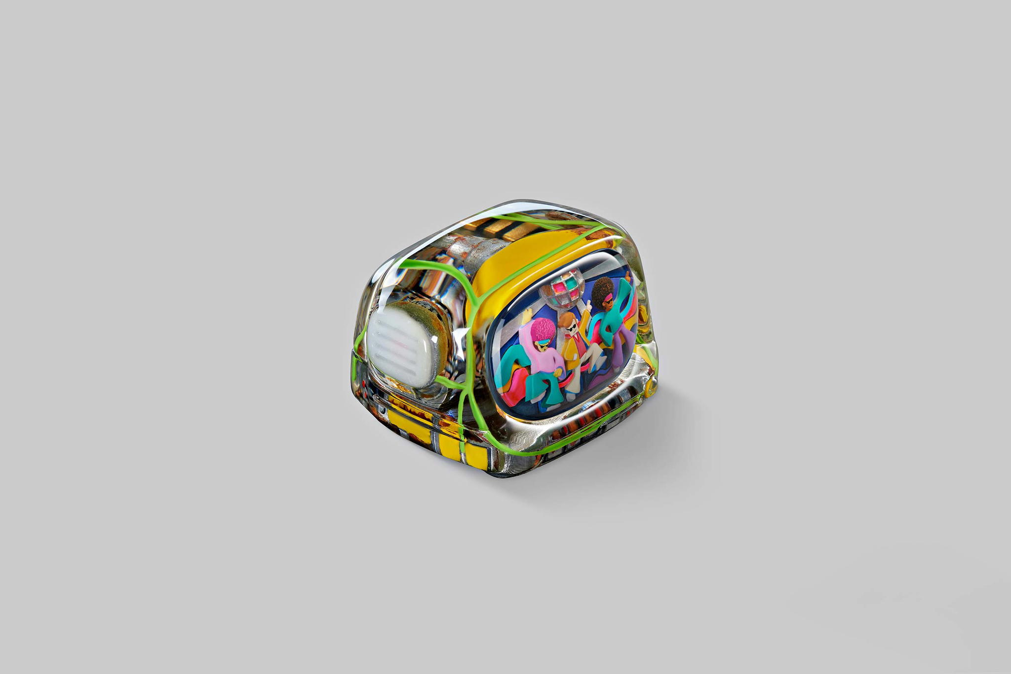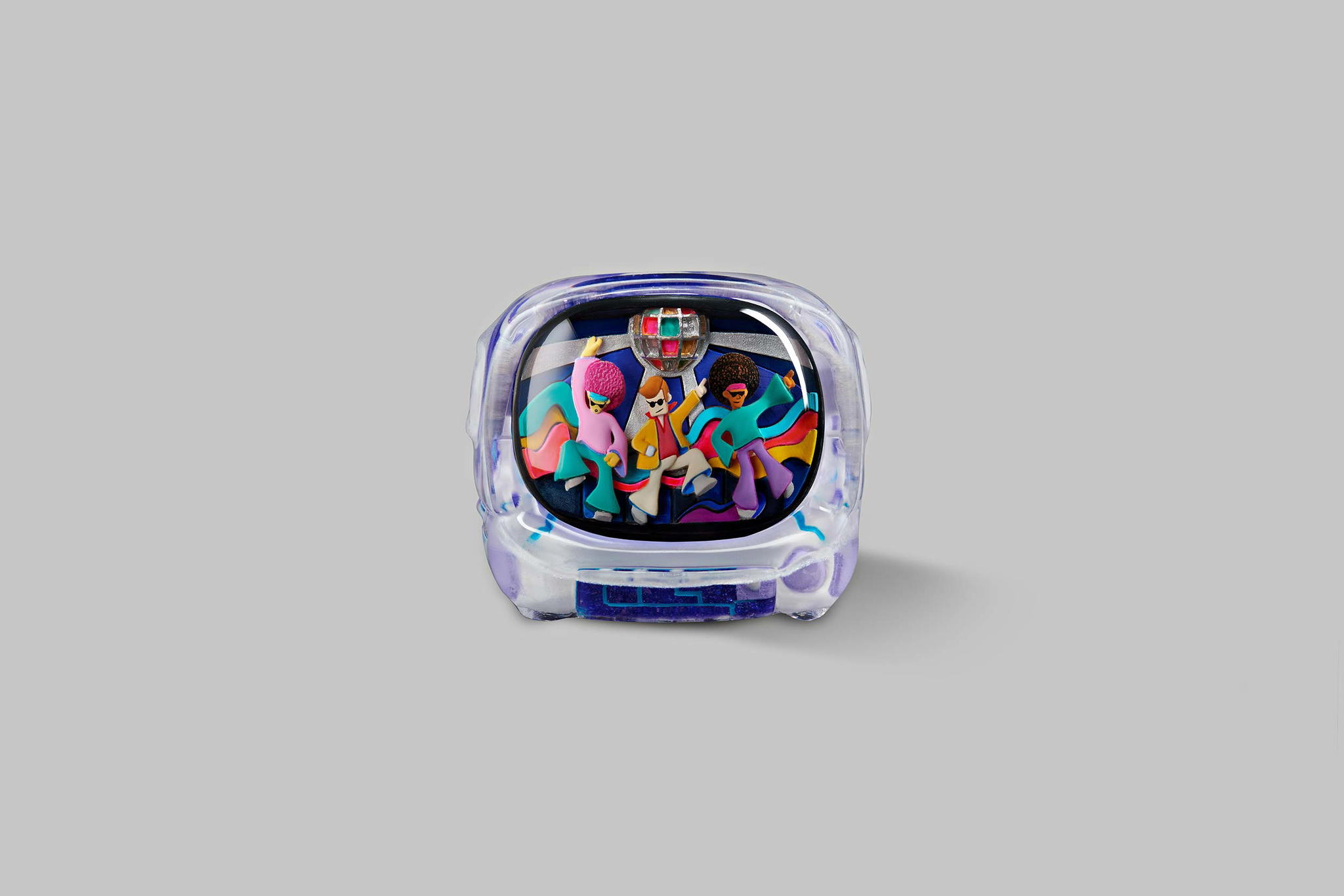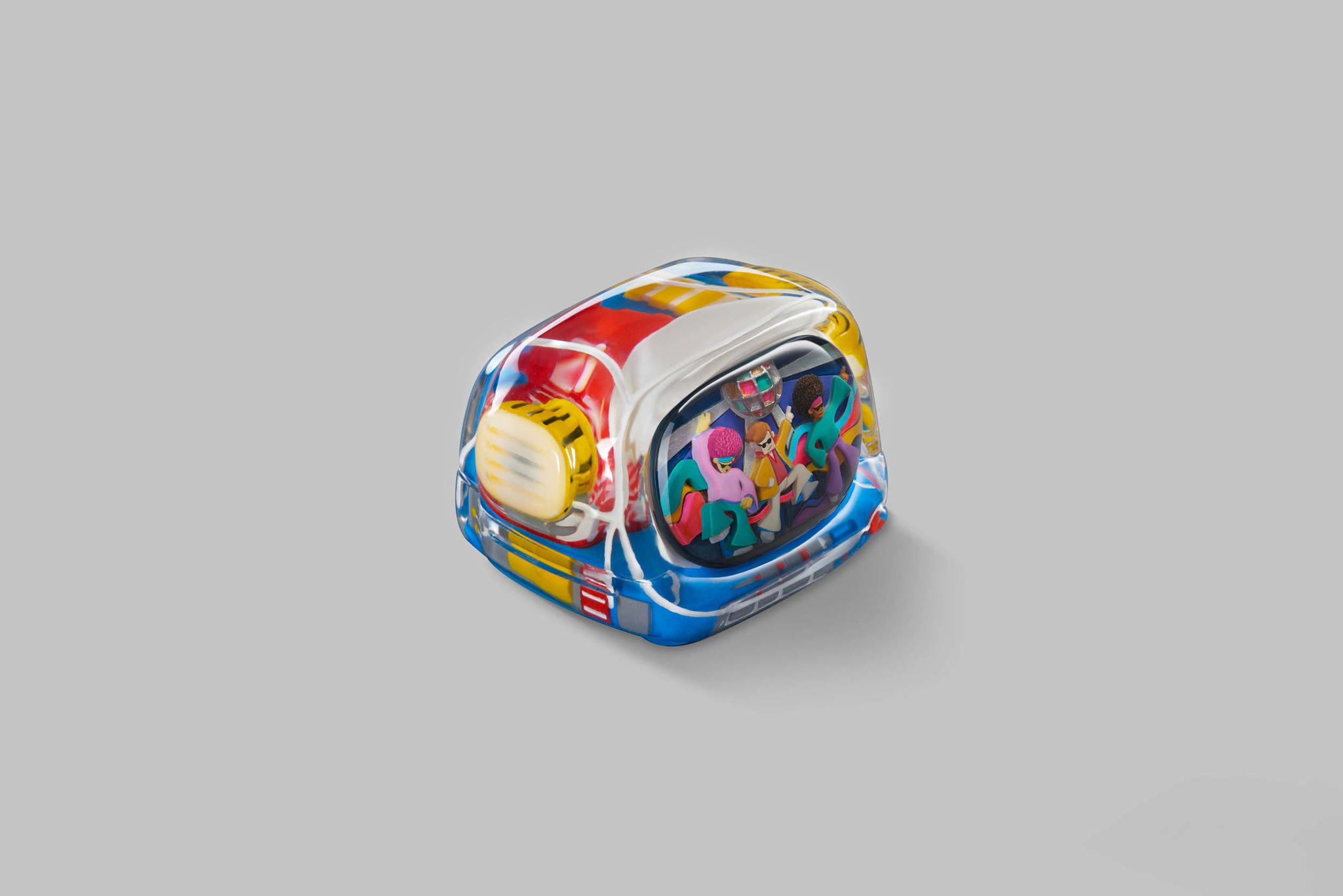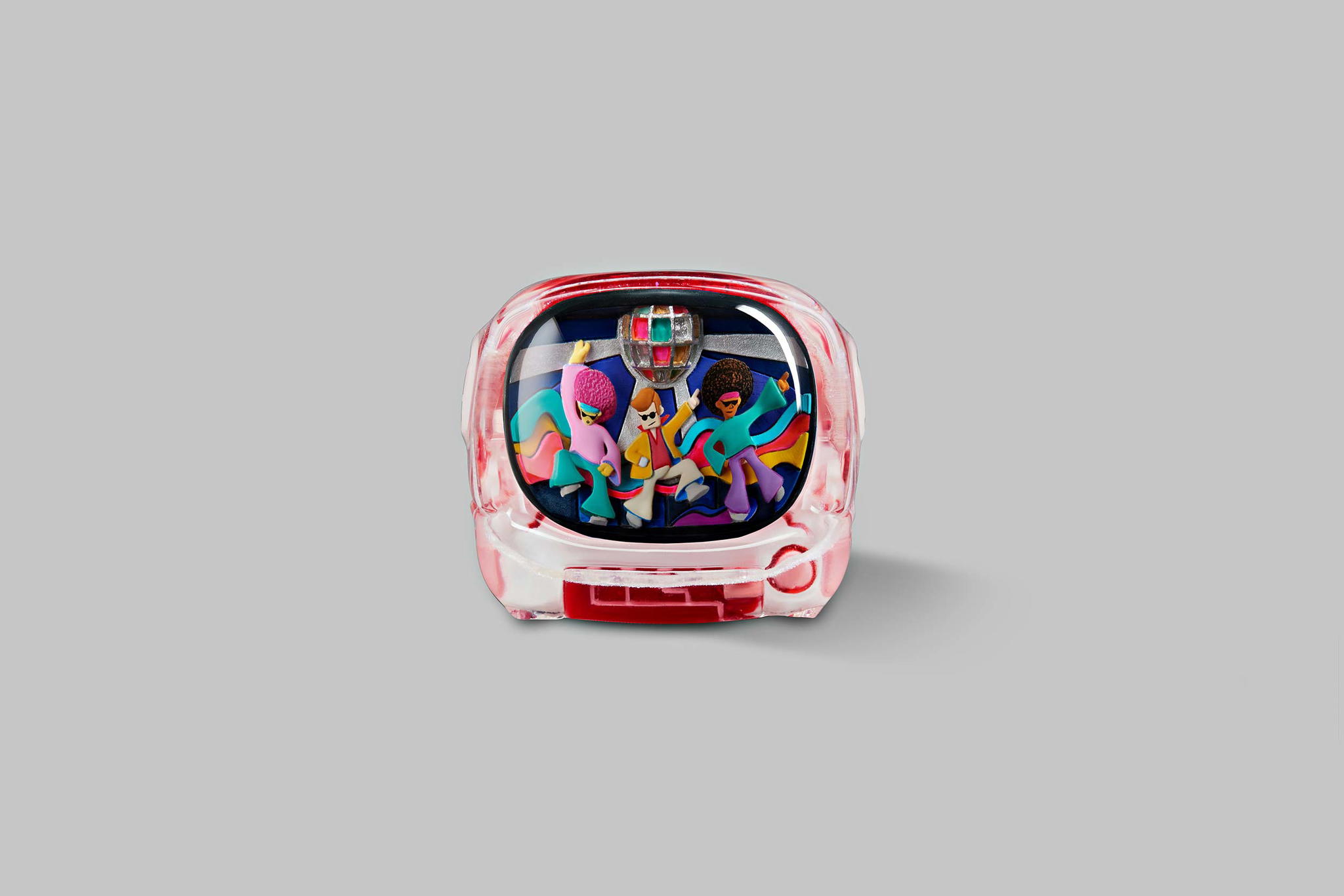 Our art toys will have the same colours and designs as their corresponding keycaps. They have the same look but in greater size than the keycap version. That’s the look; the feel is even better. It will fit more into your hand. This impressive art toy with the Disco hustle theme can lift your mood instantly and bring you hours of fun.
