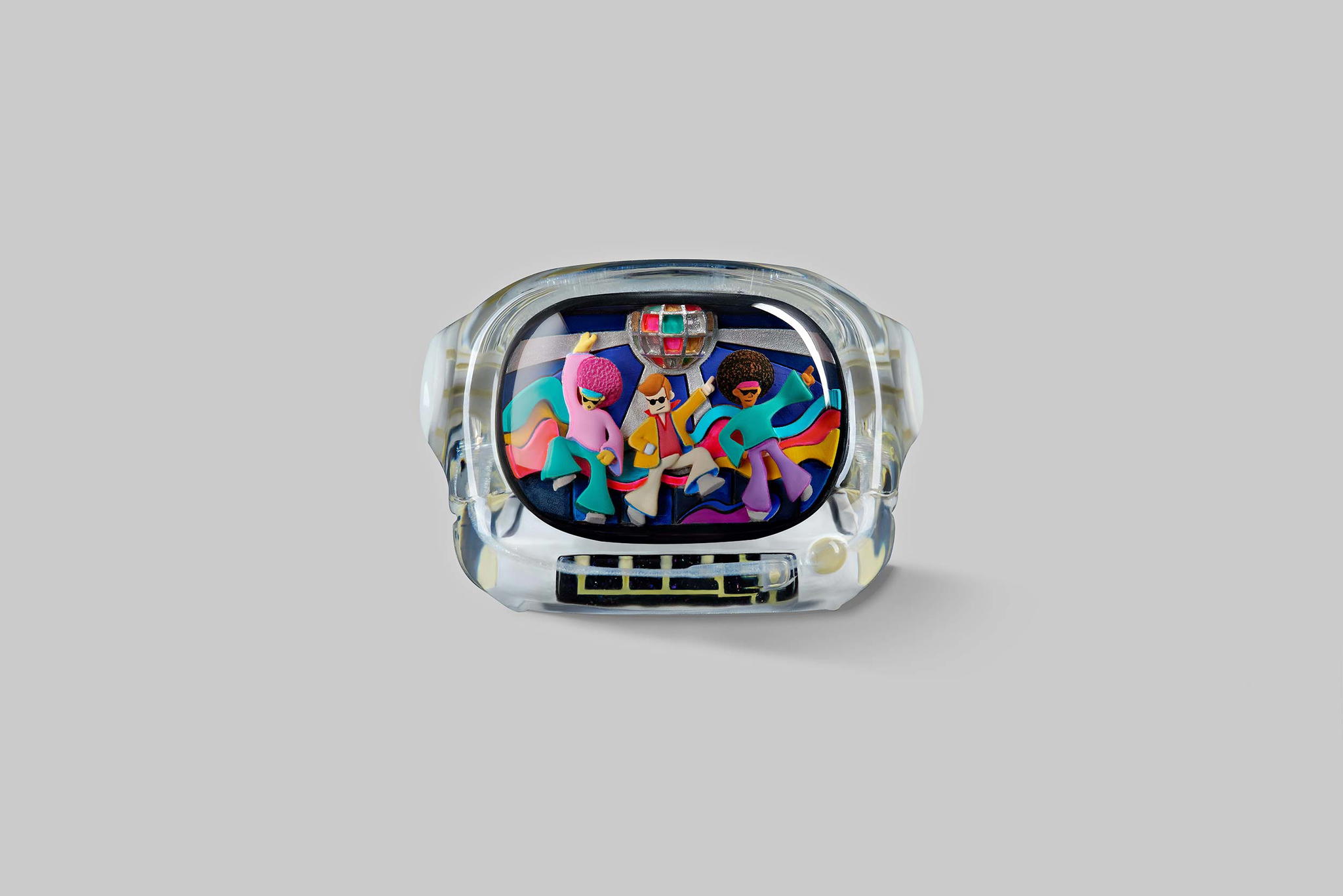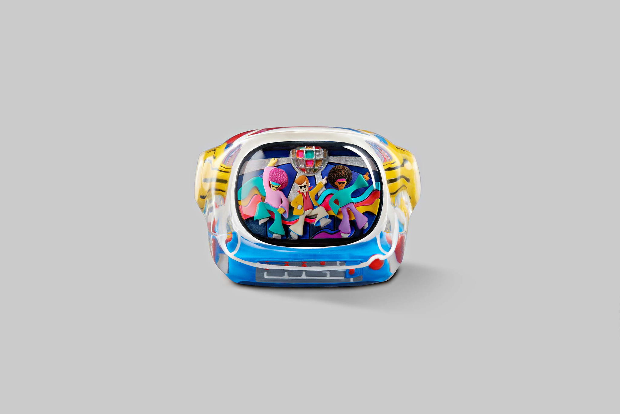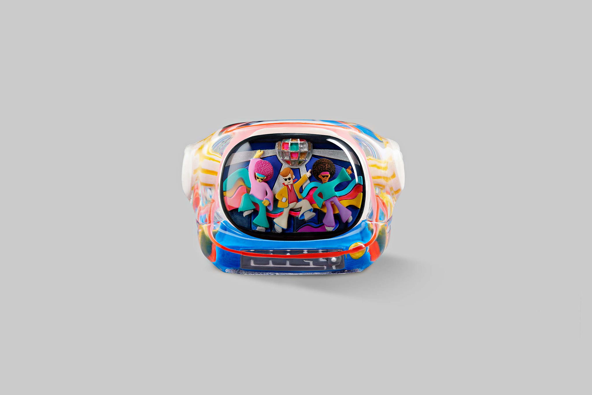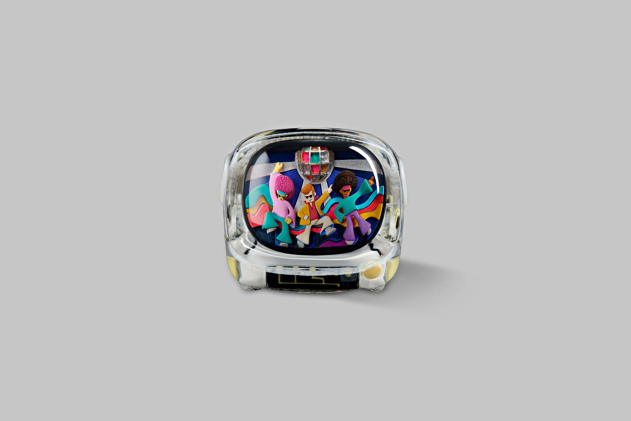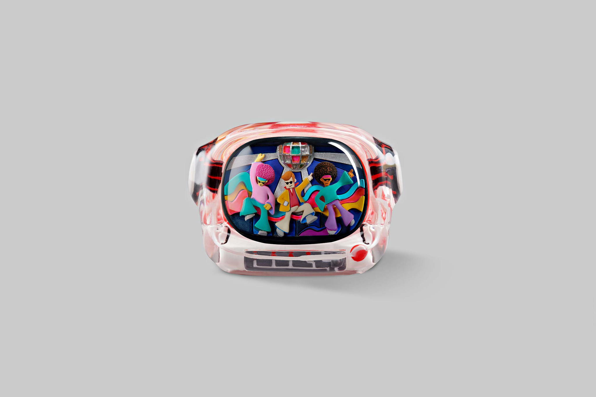 Our art toys will have the same colours and designs as their corresponding keycaps. They have the same look but in greater size than the keycap version. That’s the look; the feel is even better. It will fit more into your hand. This impressive art toy with the Disco hustle theme can lift your mood instantly and bring you hours of fun.