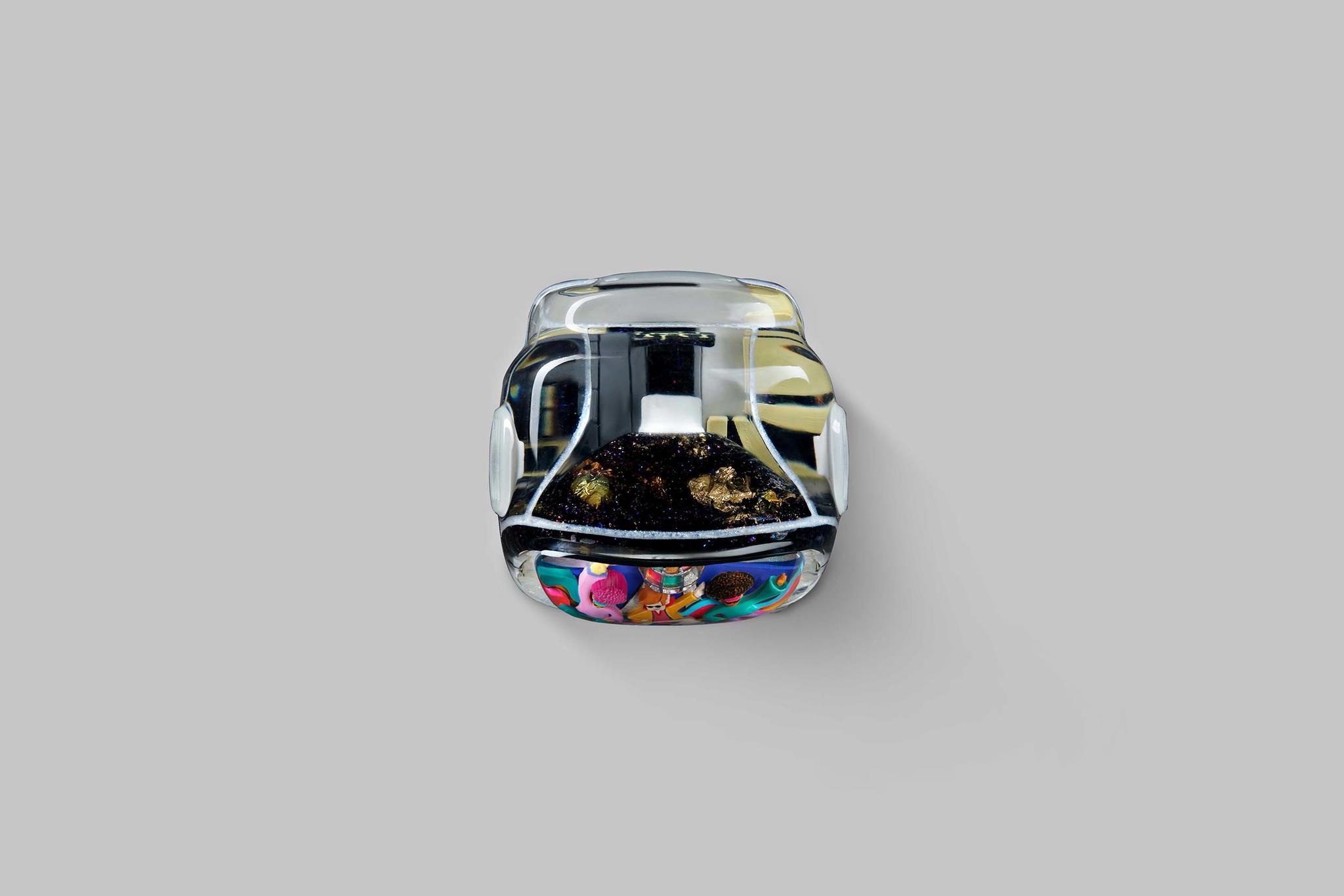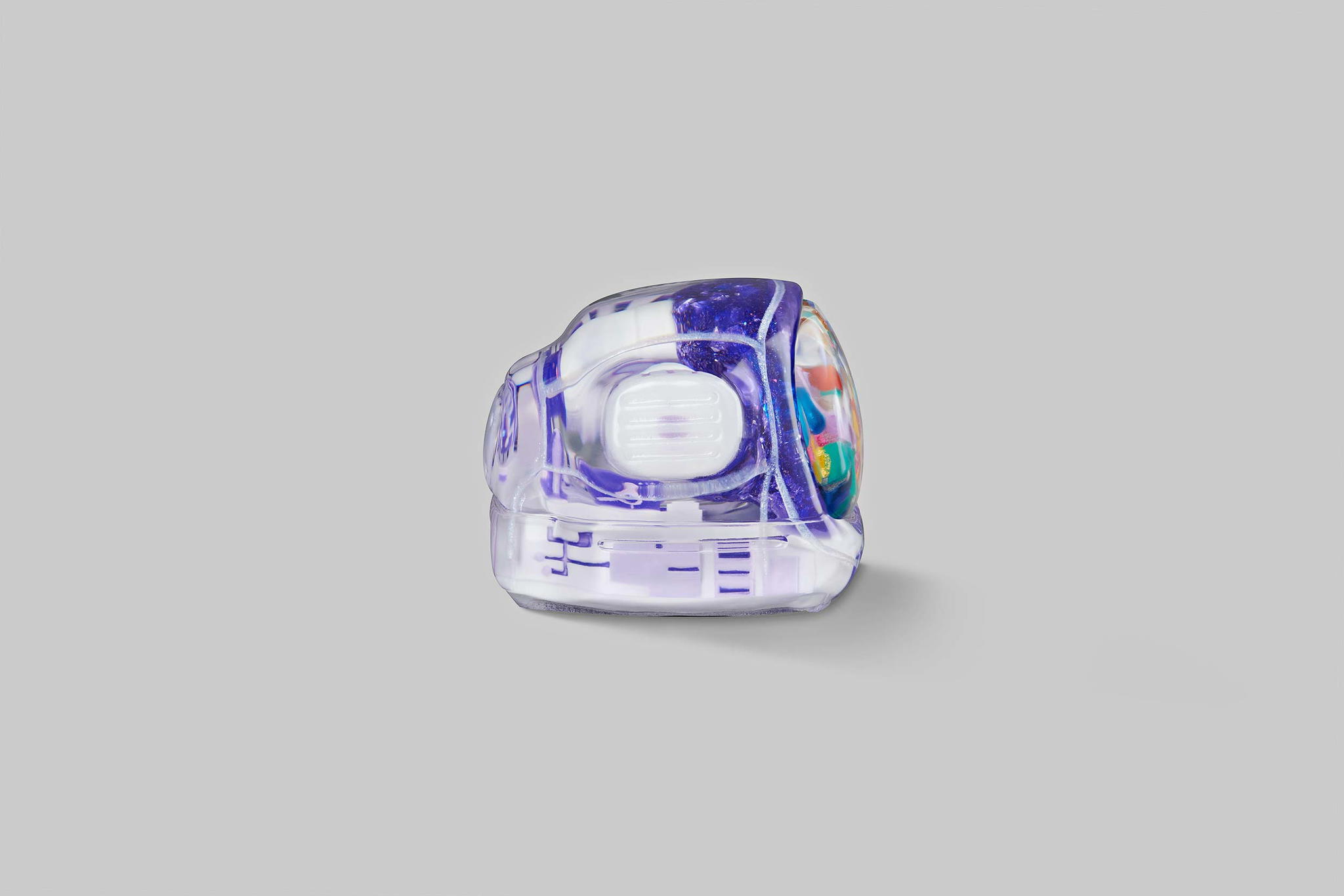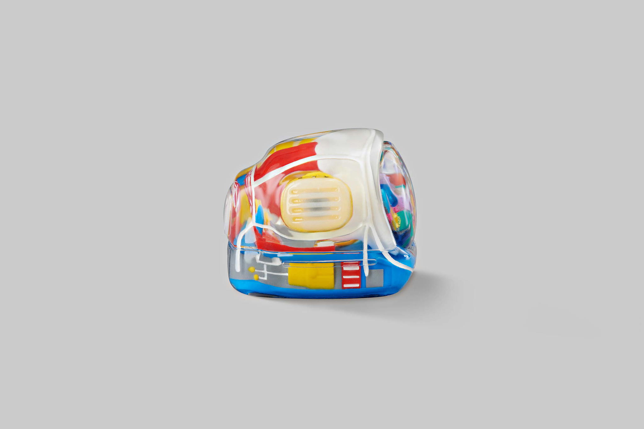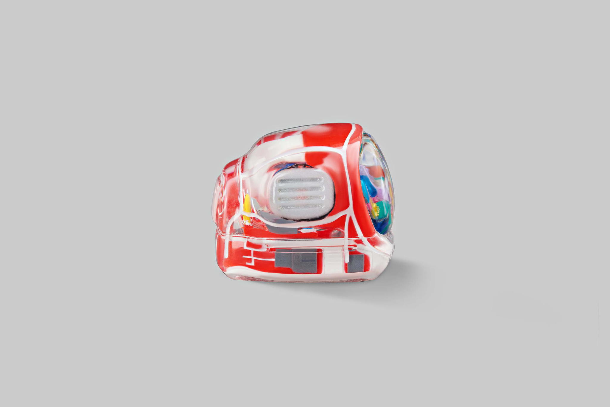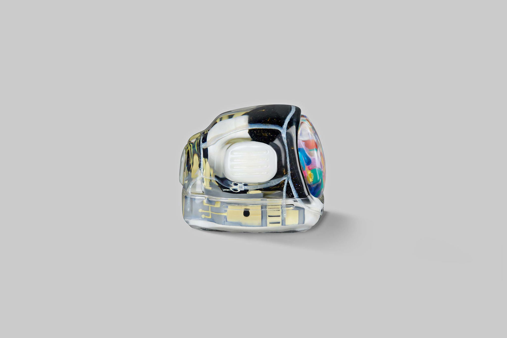 As you may know, we produce our keycaps by casting entirely, so we use an exclusive type of resin for these 6 new colours. This is to create the tiniest yet most twinkling details, which is very difficult when using the regular material. The unique resin we use this time is mixed with emulsion powder and golden & silver leaves to highlight a unique effect on the TV’s top lamb tube.