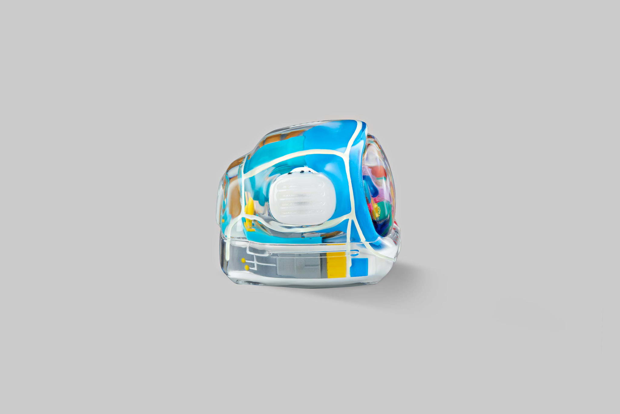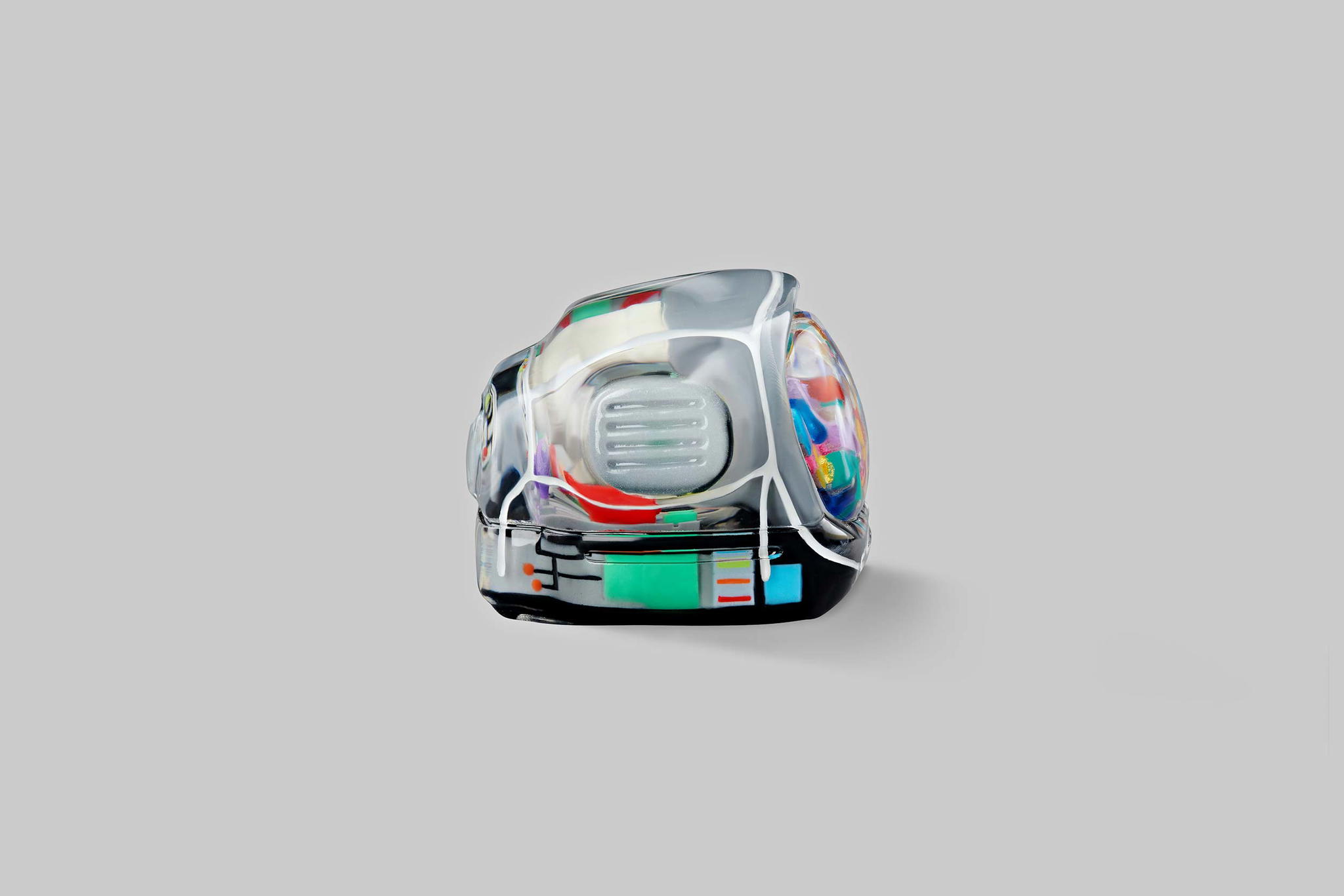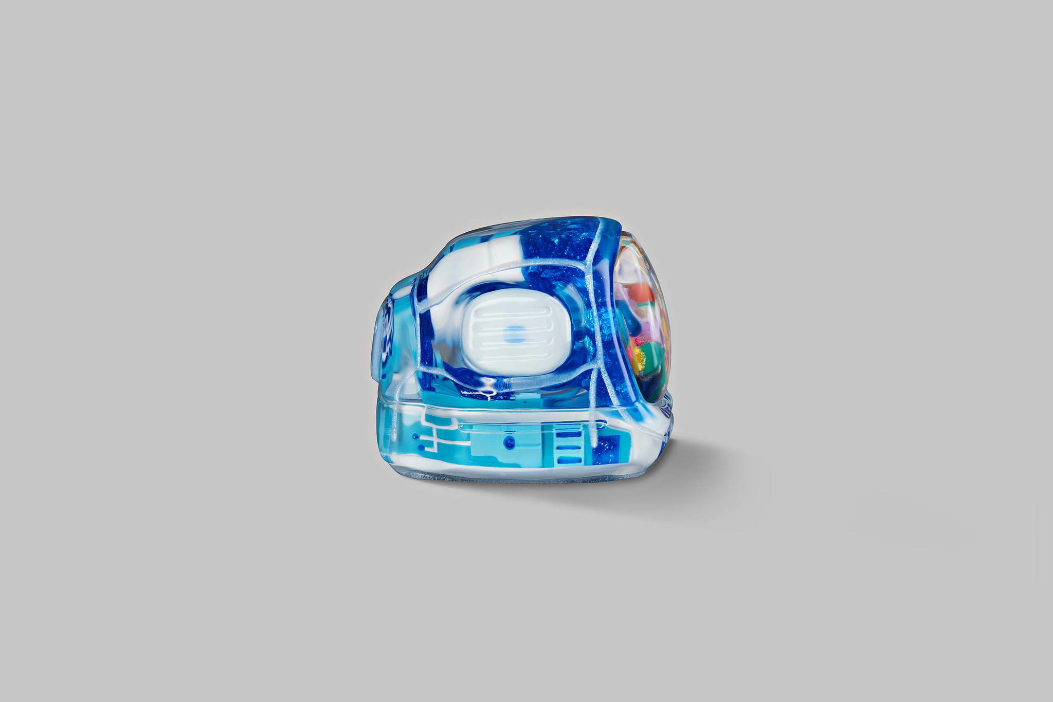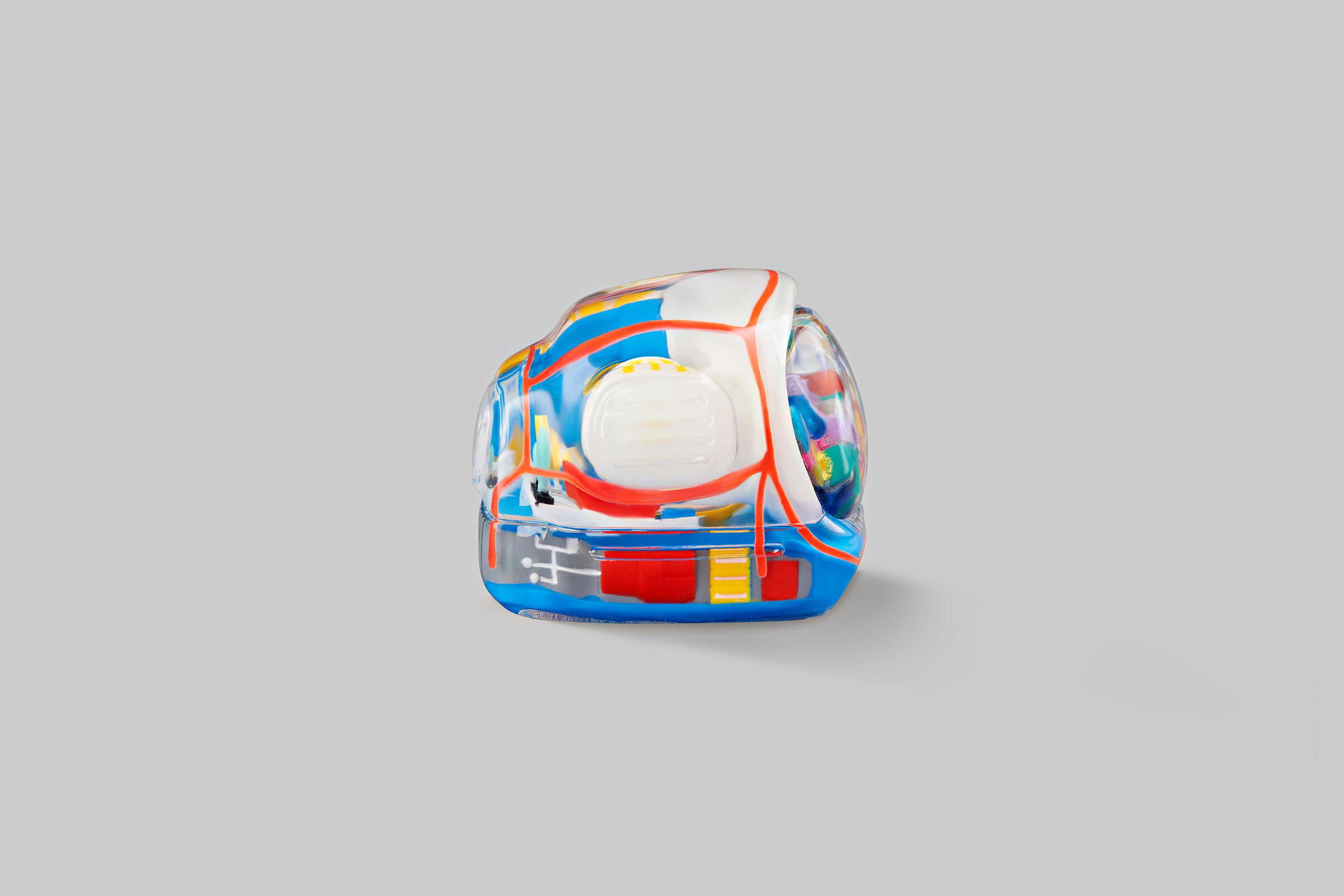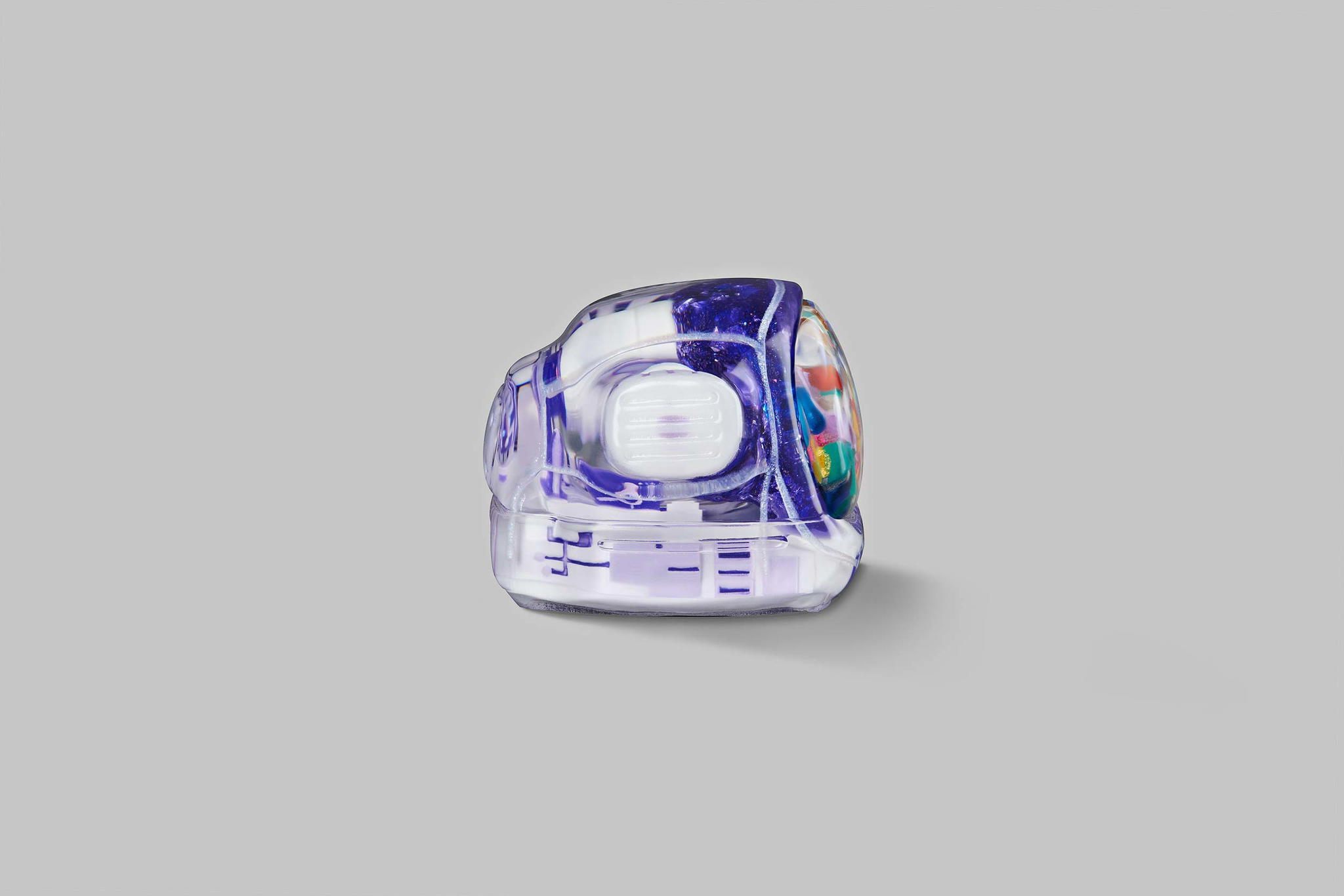 As you may know, we produce our keycaps by casting entirely, so we use an exclusive type of resin for these 6 new colours. This is to create the tiniest yet most twinkling details, which is very difficult when using the regular material. The unique resin we use this time is mixed with emulsion powder and golden & silver leaves to highlight a unique effect on the TV’s top lamb tube.