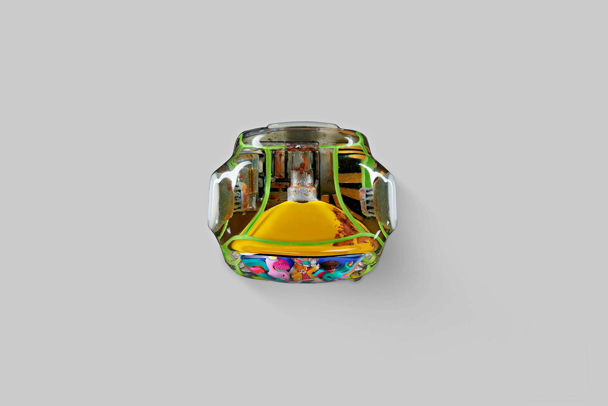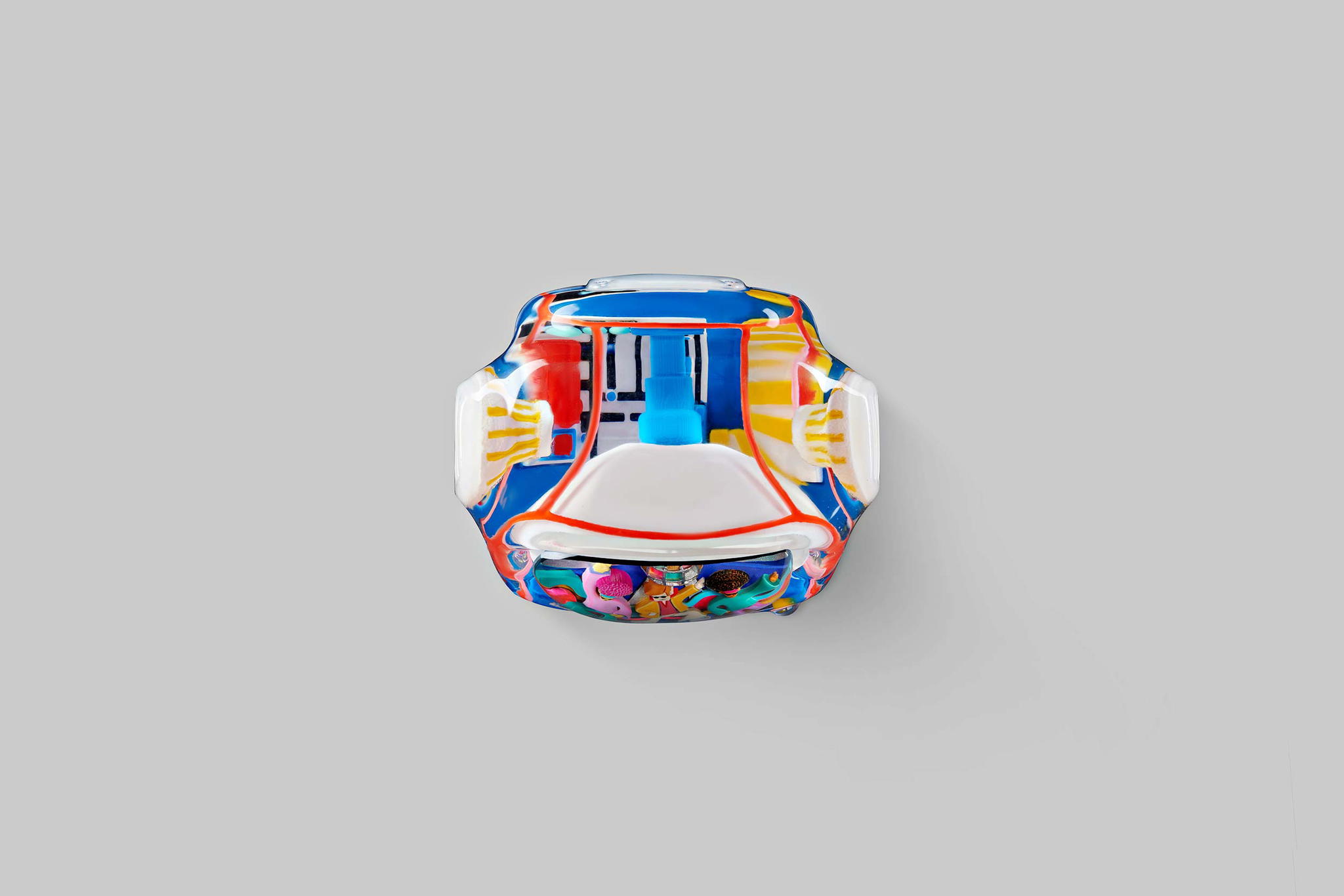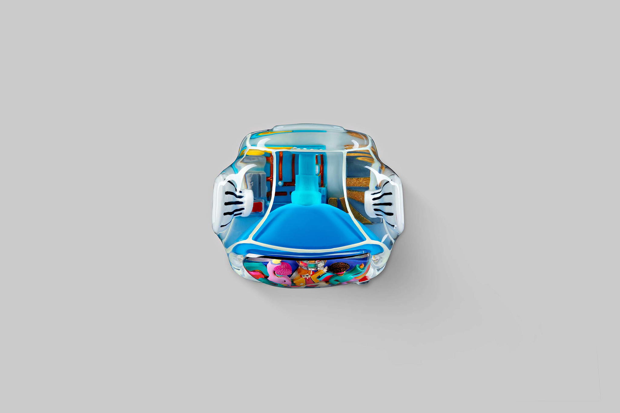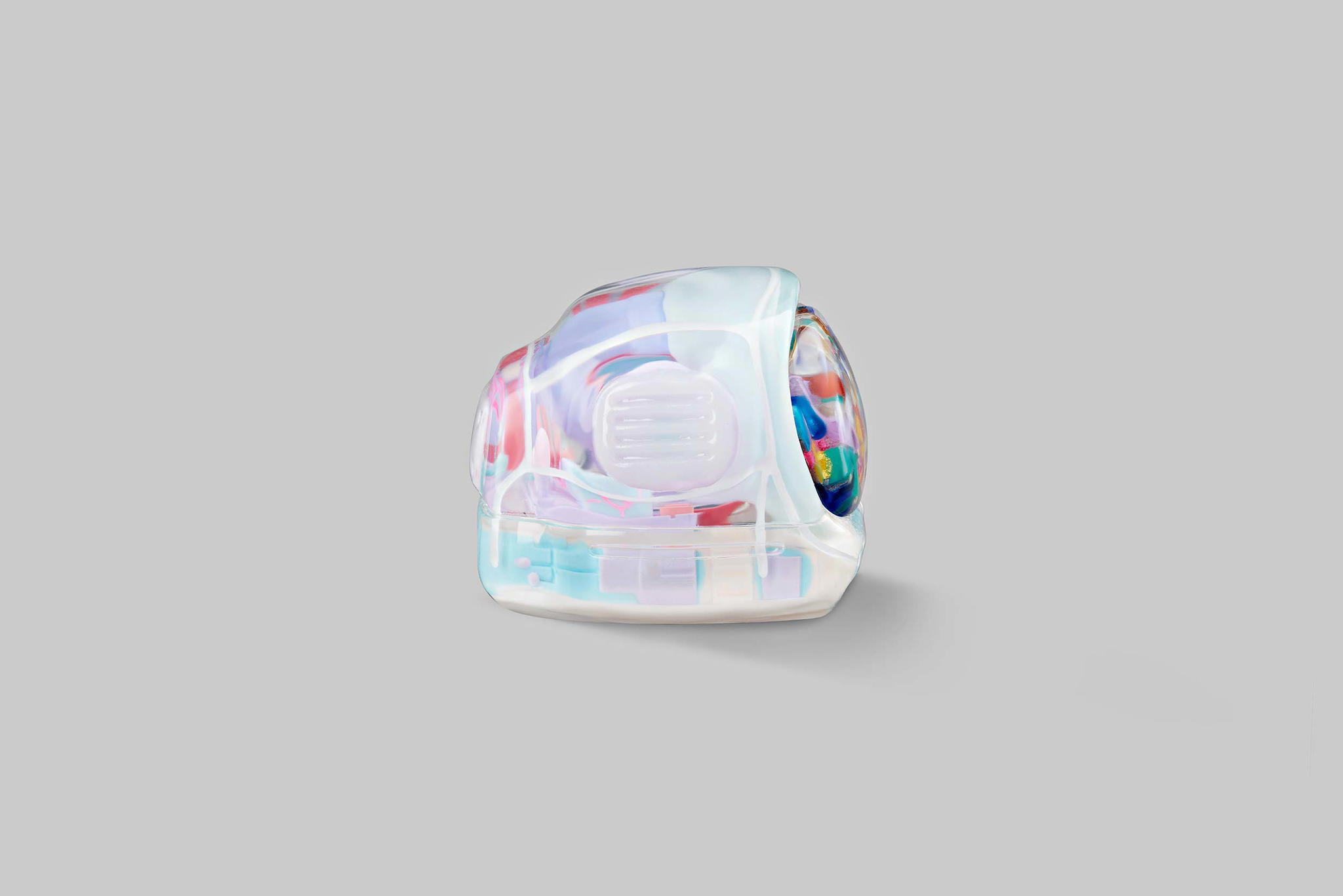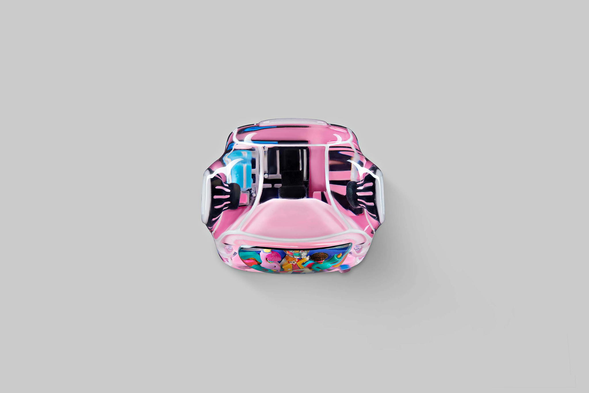 Additionally, a special colour version is created with a unique method that takes more time for the colour layers to dry. The patterns follow concentric circles and are stacked on top of each other. Each carries a particular colour identity and is also made from resin entirely. Therefore, it takes nearly 4 hours for each circle layer to dry so that we can proceed with the next one. We named this design “Iconic Gogglebox.”