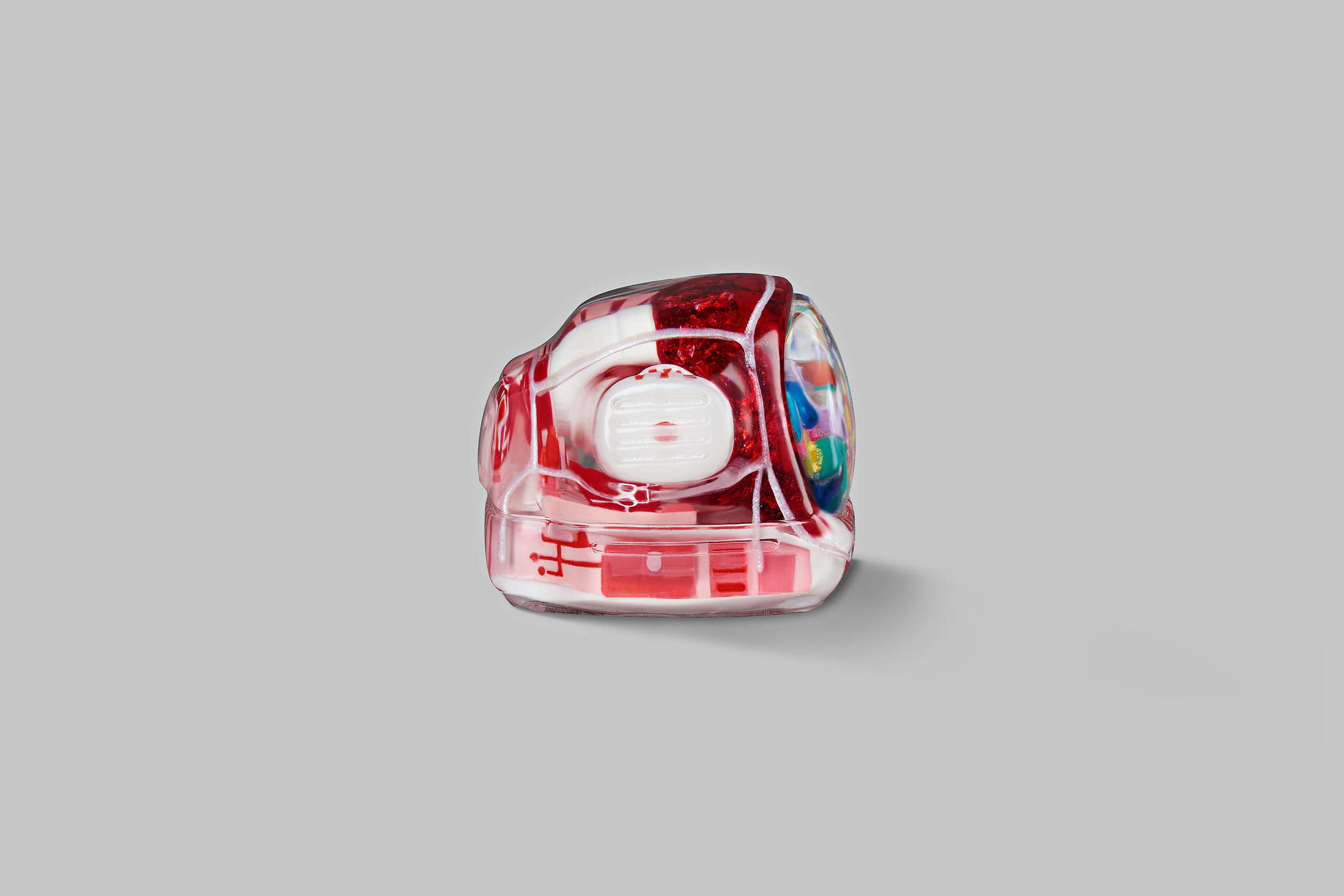 For every keycap at Jelly Key to have a solid base. So firstly, we cast the base in layers of colours, each of which needs approximately 8-10 hours to dry. Other essential components of a TV, such as a circuit board, screen tube, speaker, etc., are also cast in separate moulds to ensure consistent quality. Once each piece becomes completely dry, we’ll move on to the next step.
