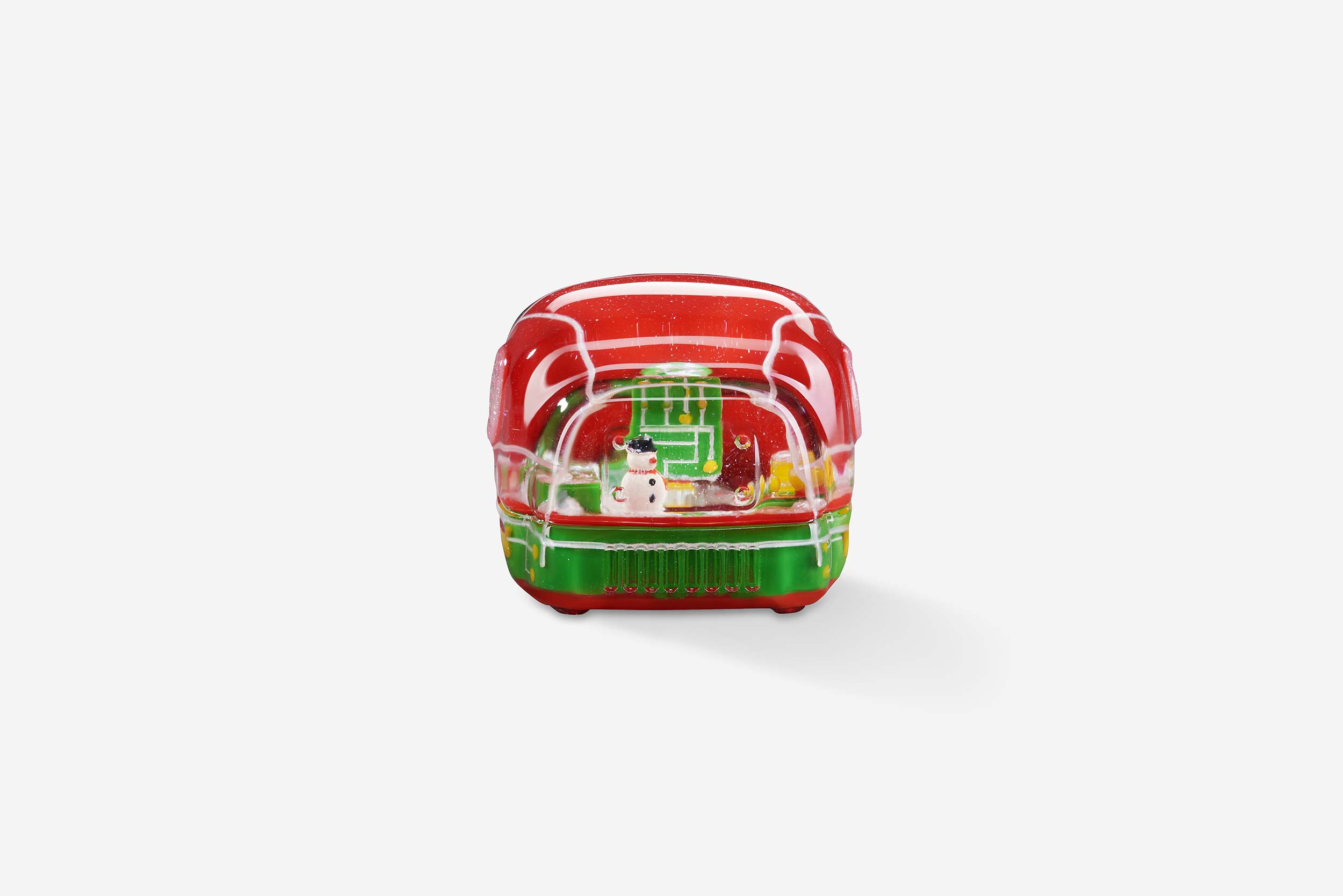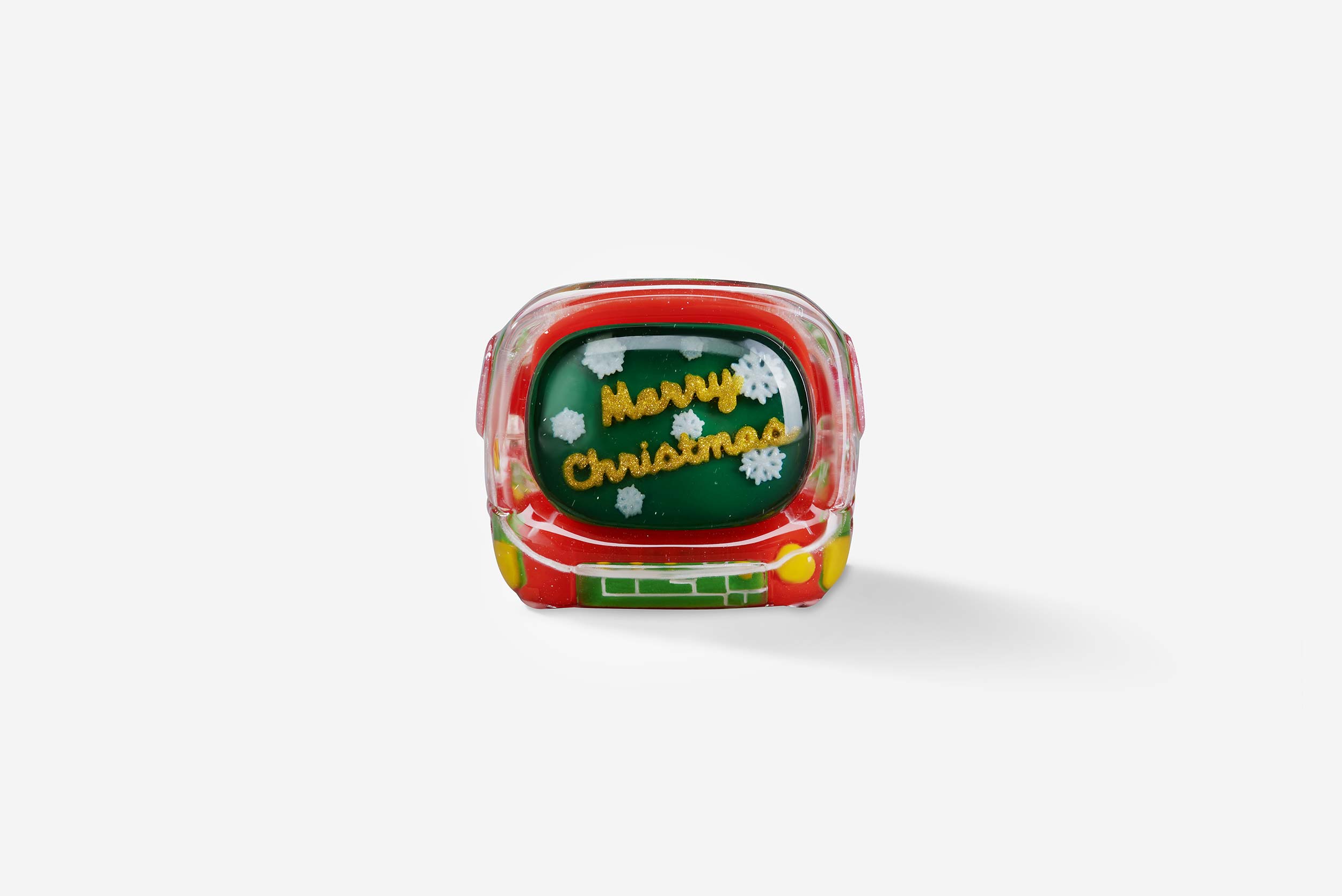 For the Retro TV version, the keycaps are also made through casting entirely. Many festive color schemes are used in these mini TVs, including the classic red and green, and also the glittering golden. In the screen, you can “watch” the Christmas greetings and wishes to cheer up your holiday spirit. The TV case is another delight: it still has the pixel vibe from the original version, now redecorated with a Christmas theme! You will also be impressed by the little snowman with the height of 2,99mm, and an illustration of a snowball inside the TV.