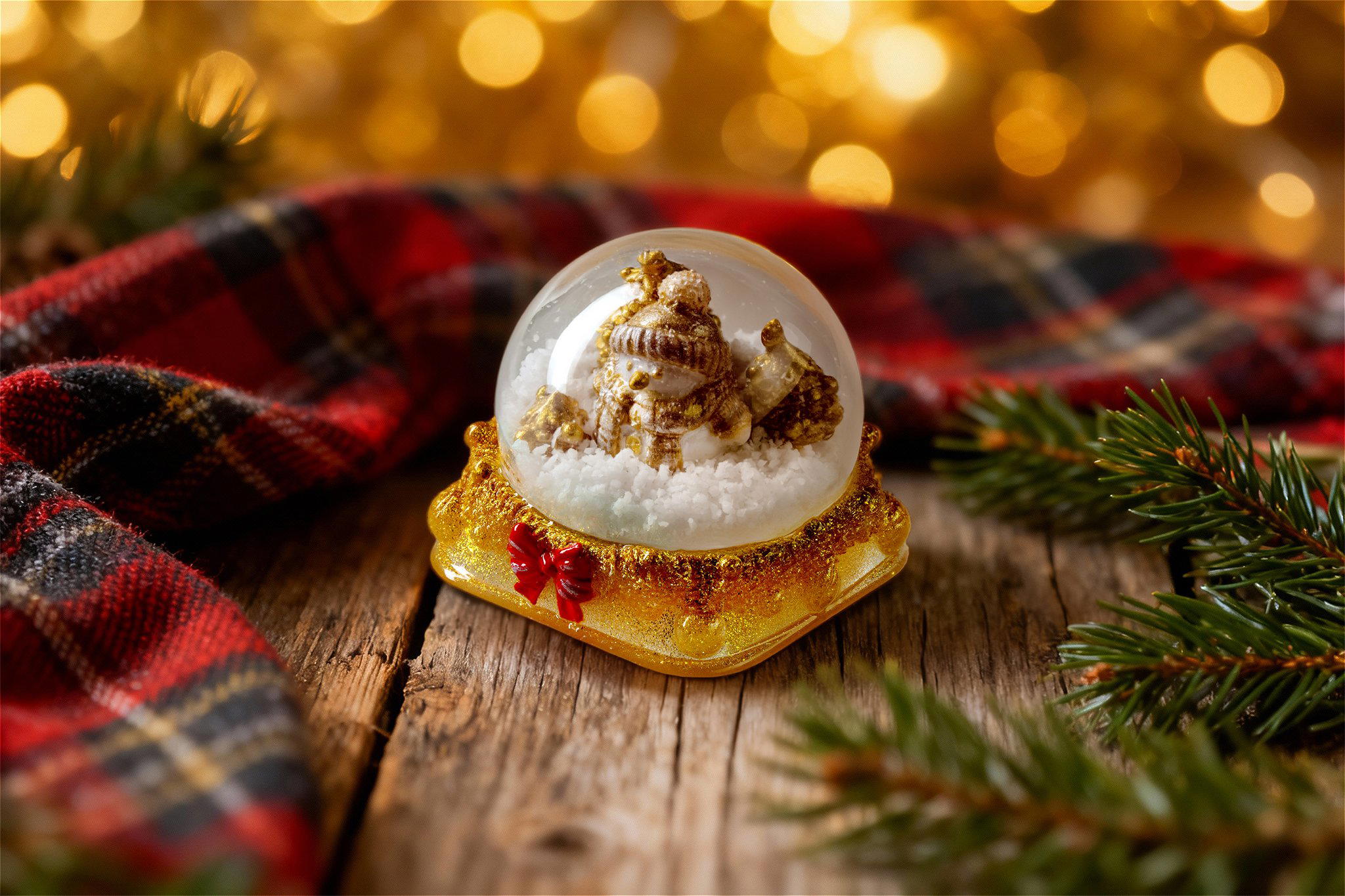 A mesmerizing snow globe keycap featuring a hollow inner sphere, encased in crystal-clear resin that reveals every intricate detail with virtually no refraction. Delicate snowflakes dance and swirl with each keystroke, gently blanketing the charming snowman and pine tree within—a miniature winter wonderland at your fingertips.