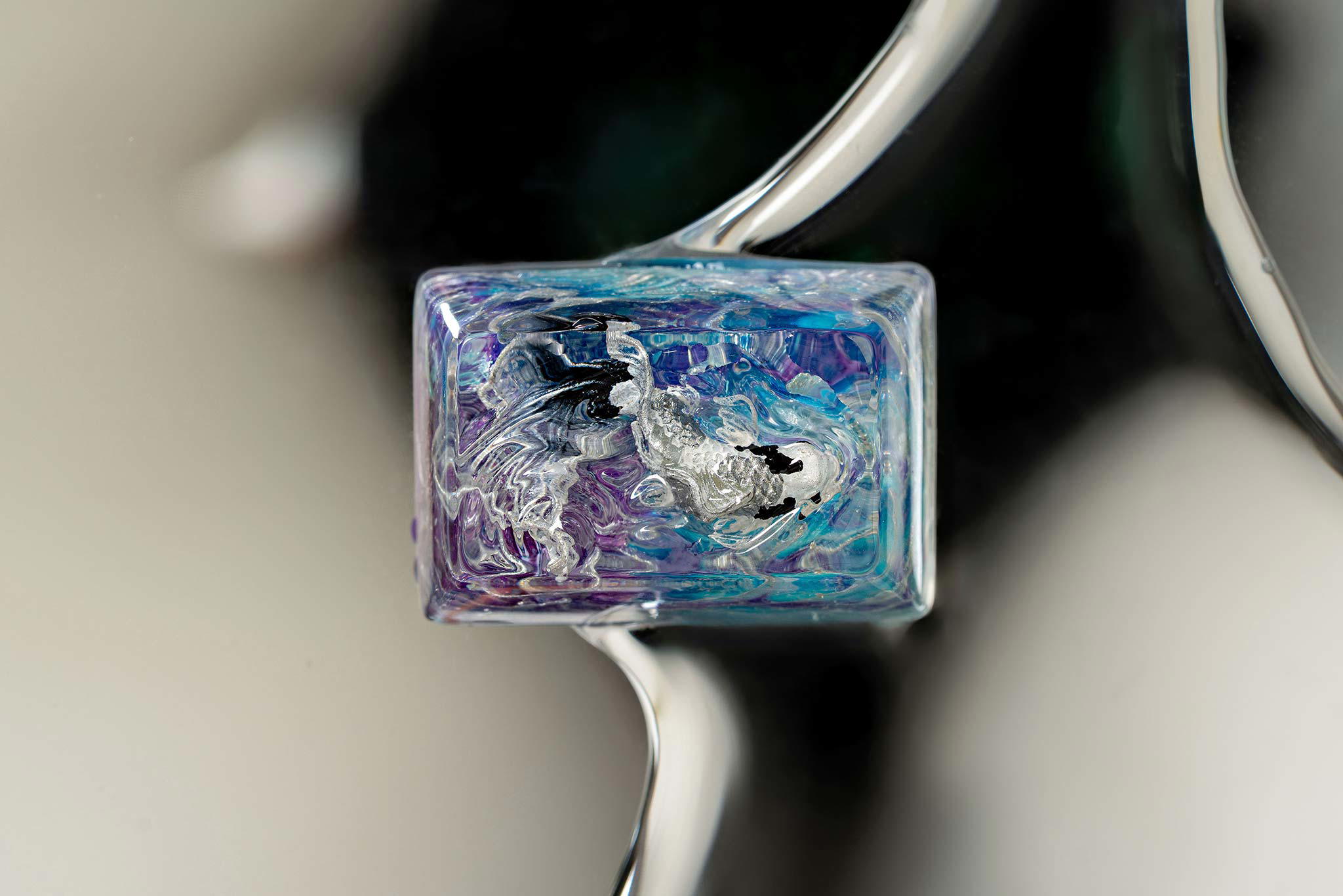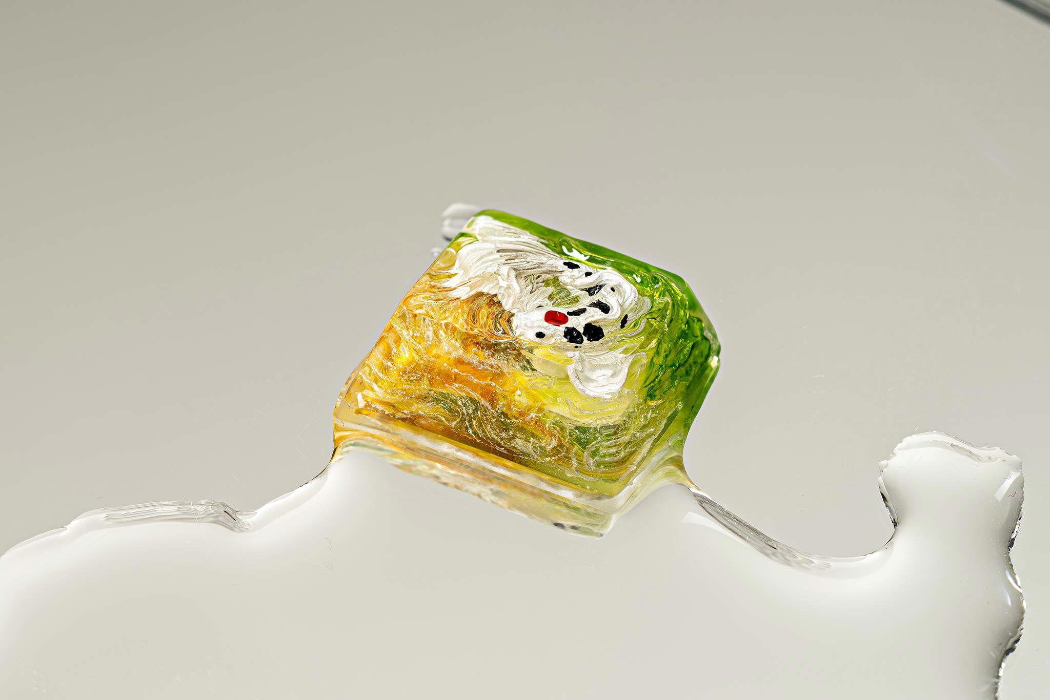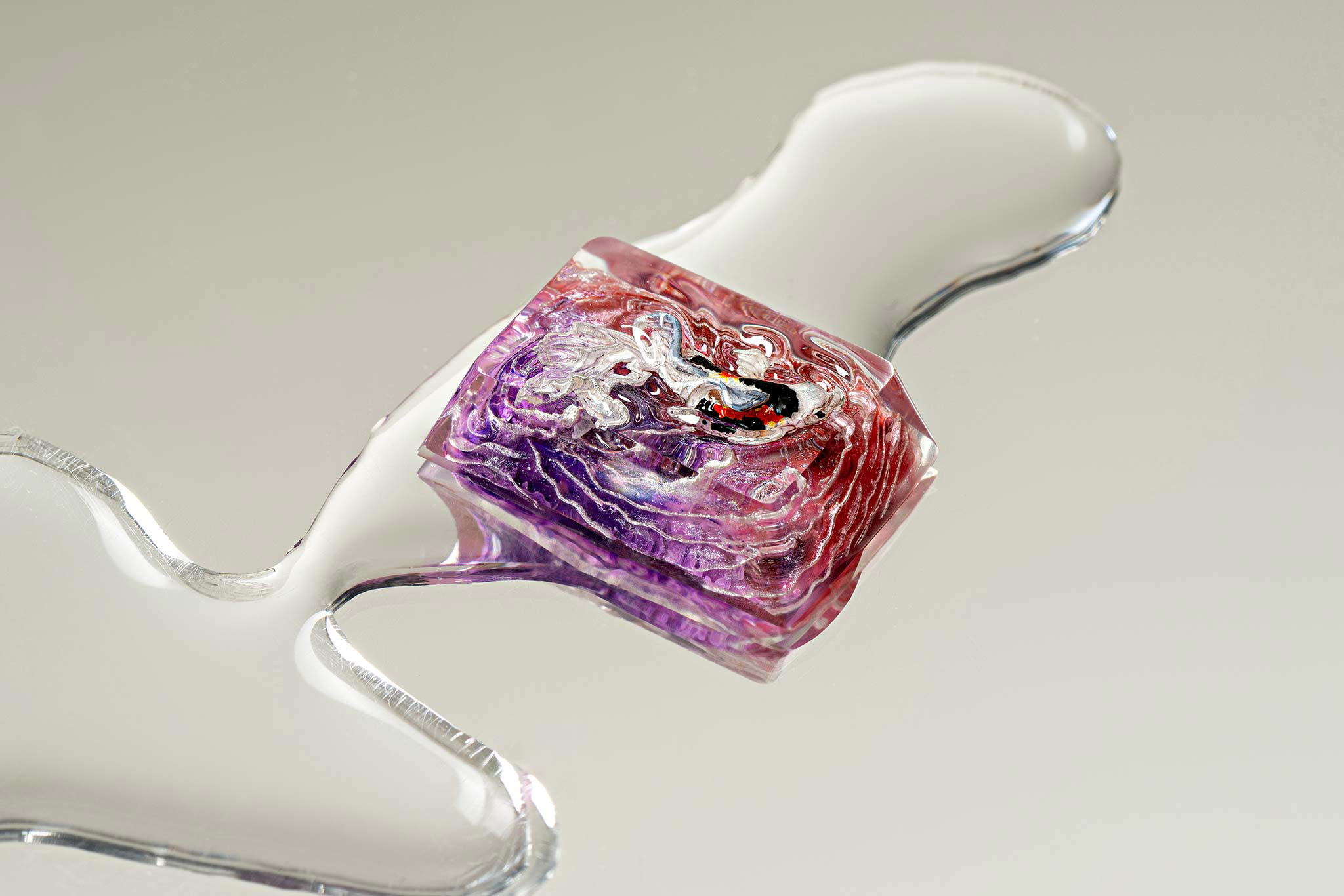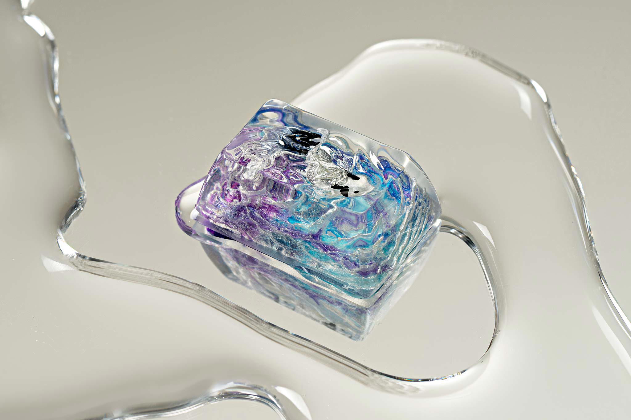 The combination of resin and alcohol ink creates unpredictable reactions. This isn’t simply a technique but a form of artistic improvisation – where the flowing movements of ink in resin evoke imagination. In the limited space of a keycap, each drop of alcohol ink can create a miniature universe full of colors.
