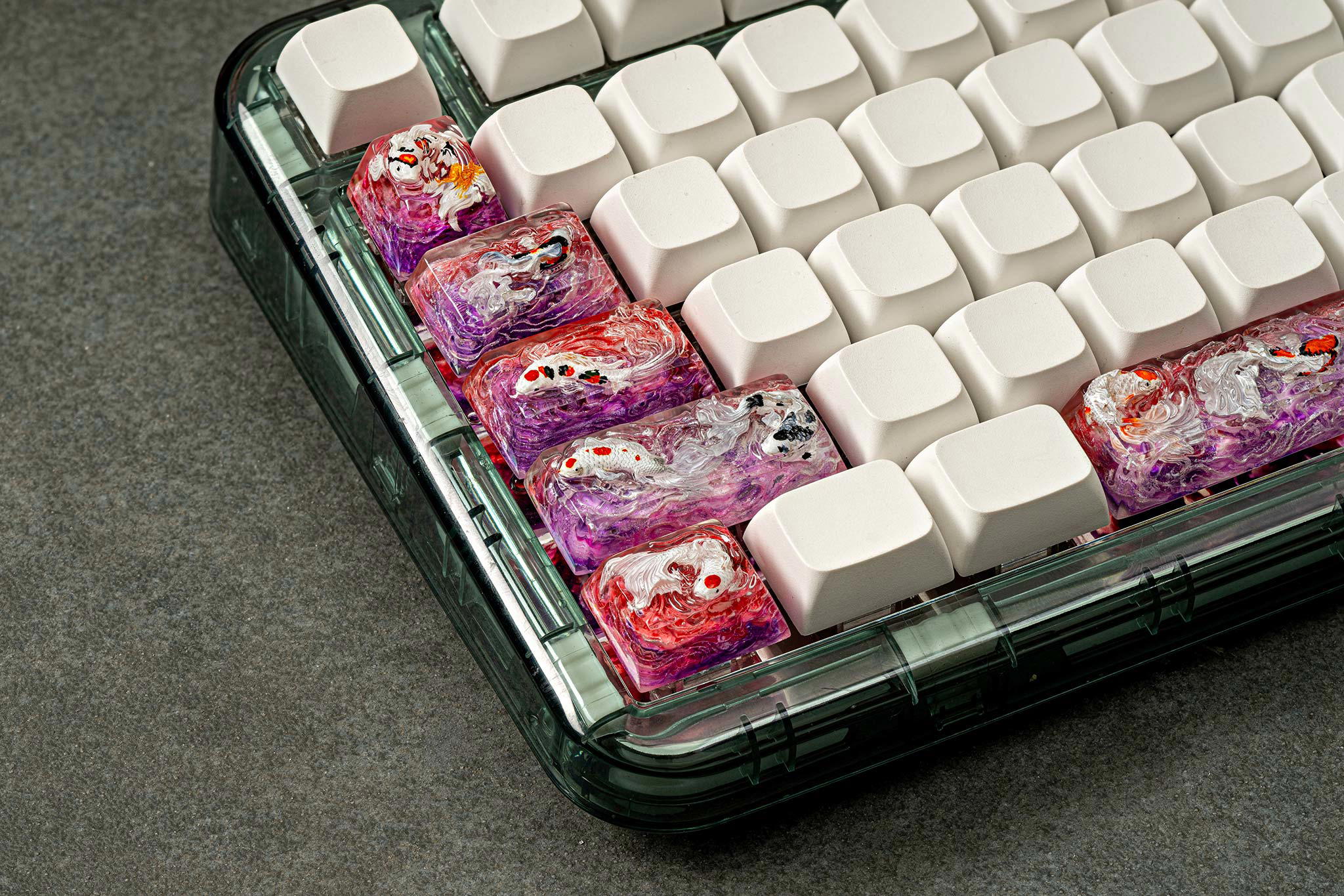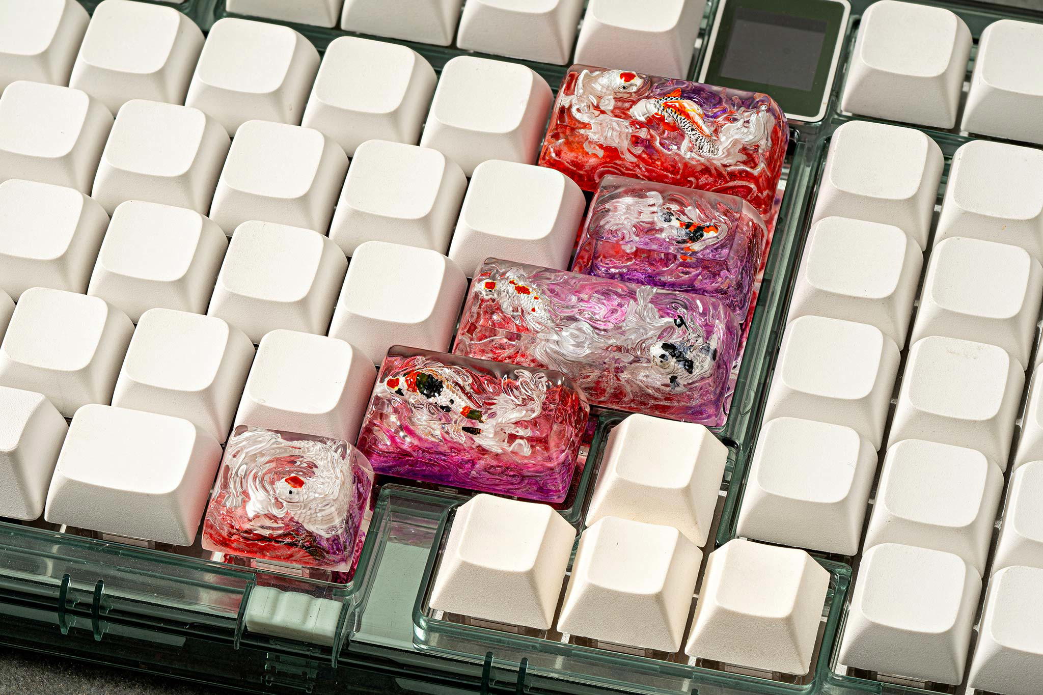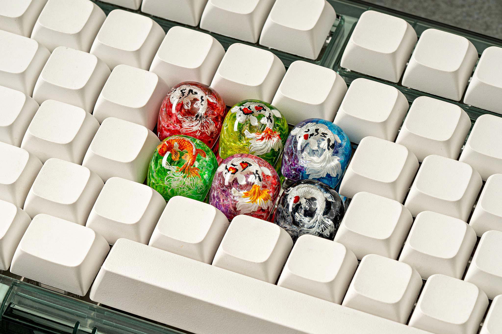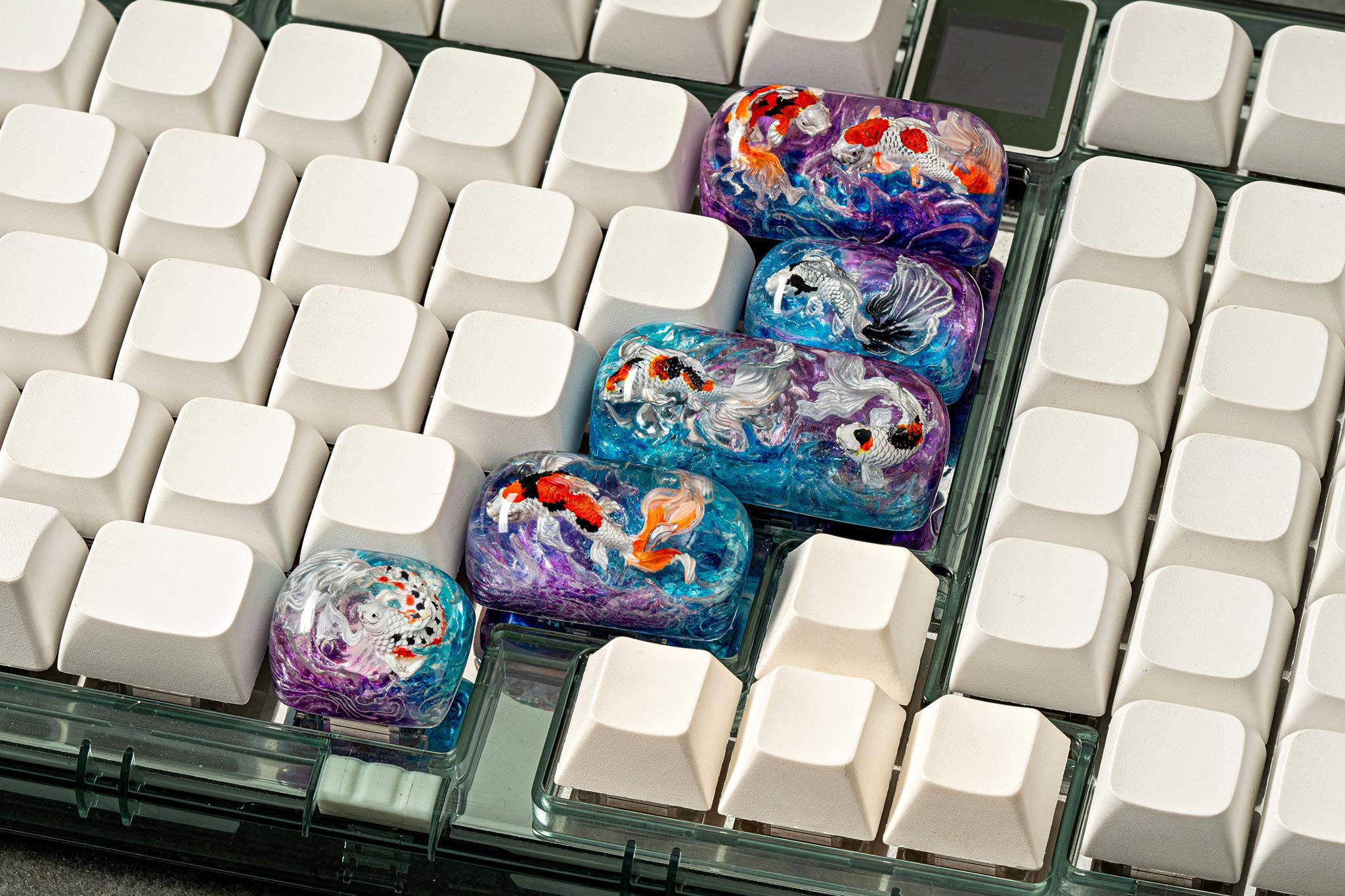 Each Zen Pond keycap isn’t just a keyboard accessory, but a world of its own, a story told through resin and color, where Koi fish find their eternal home in the shimmering Eden waters.