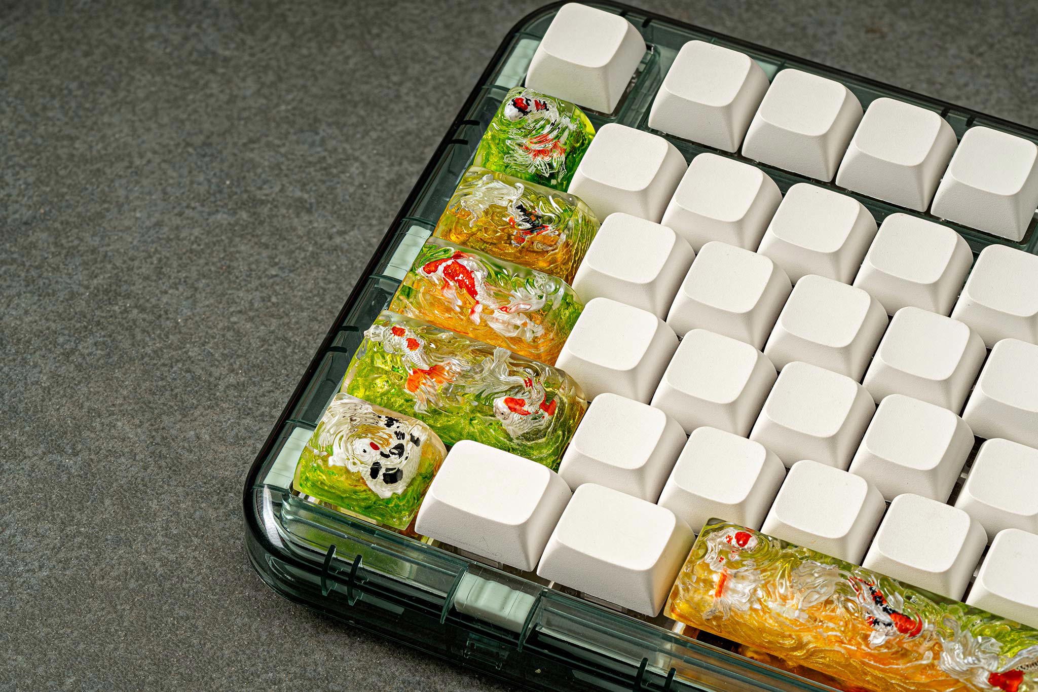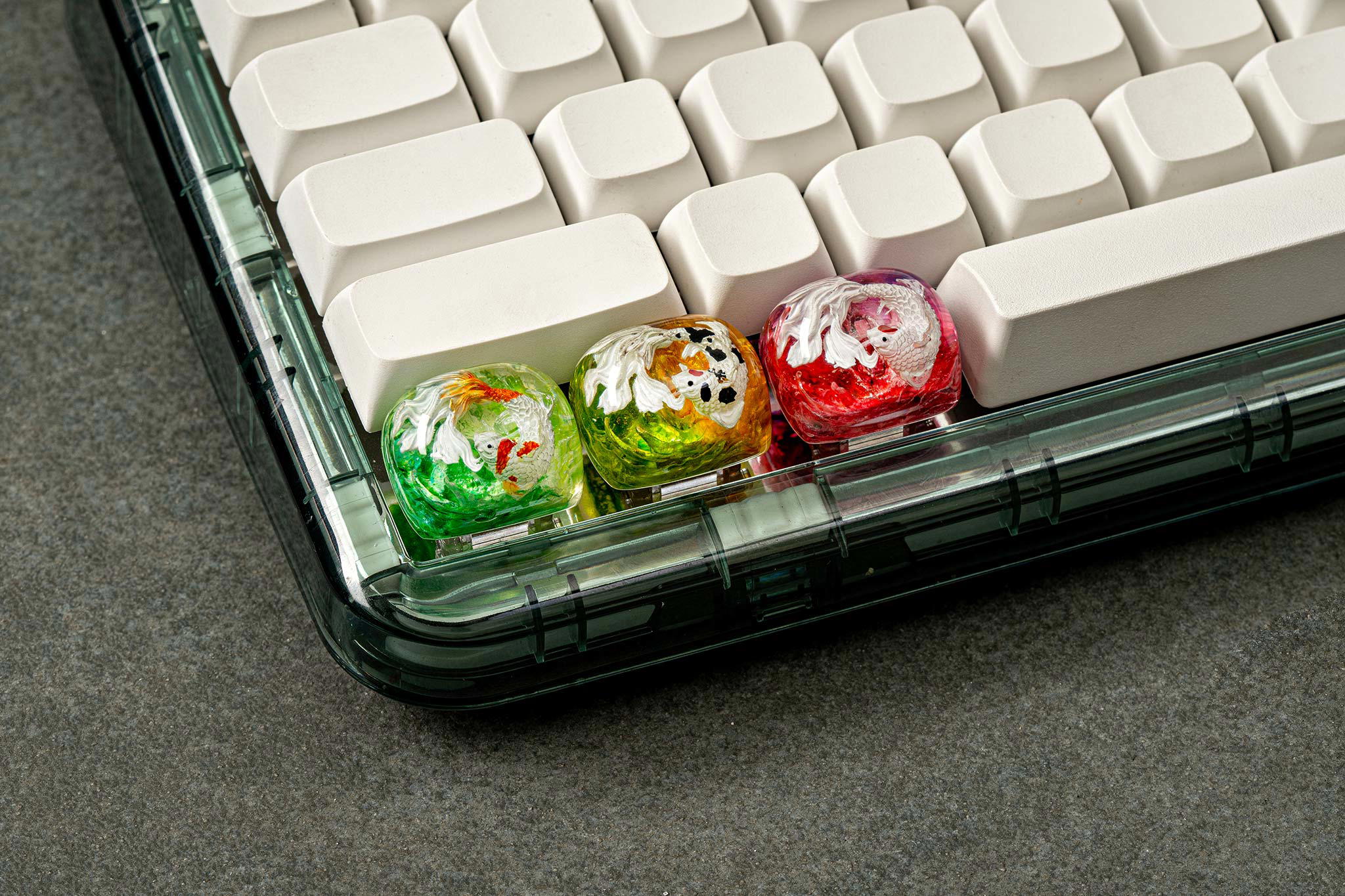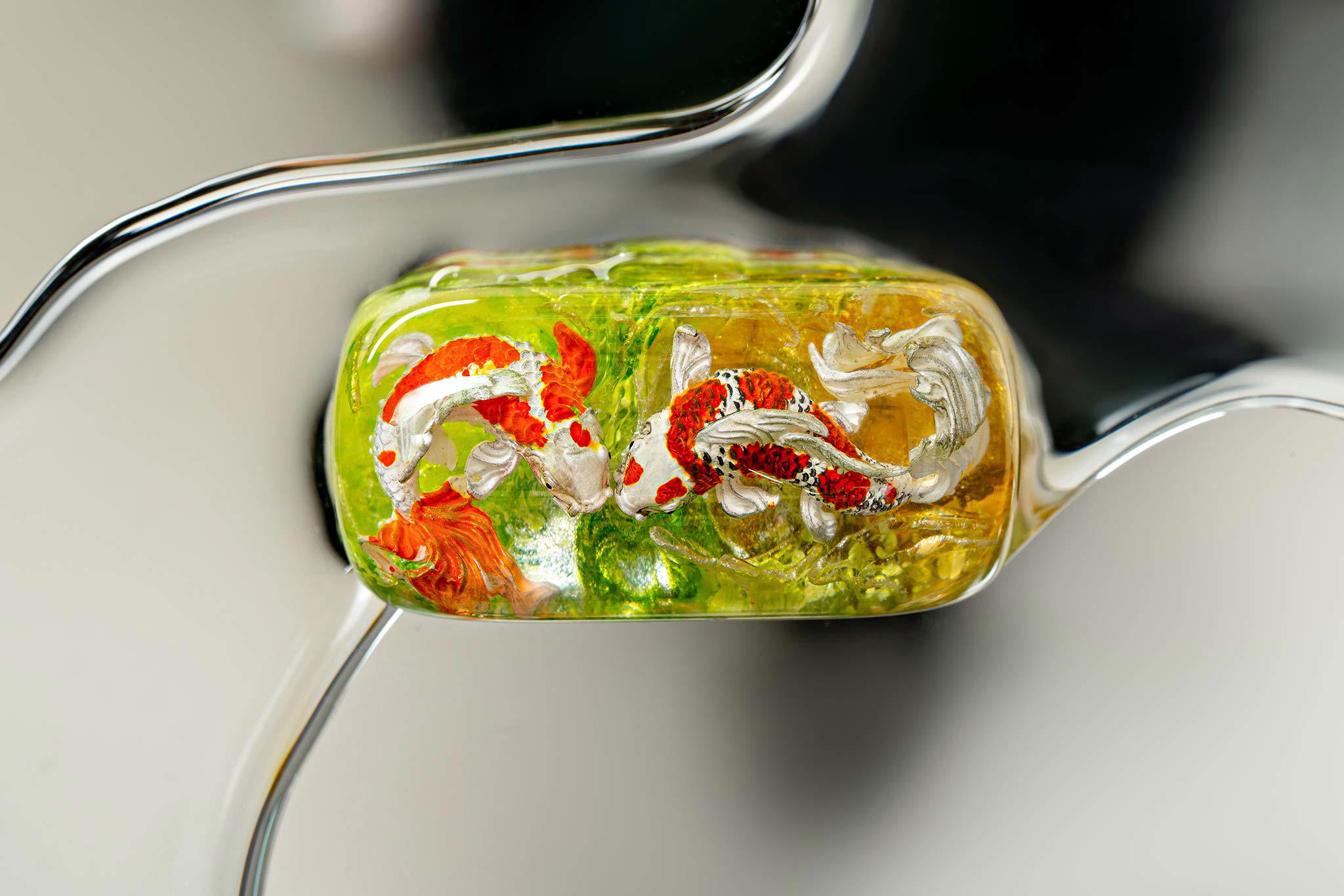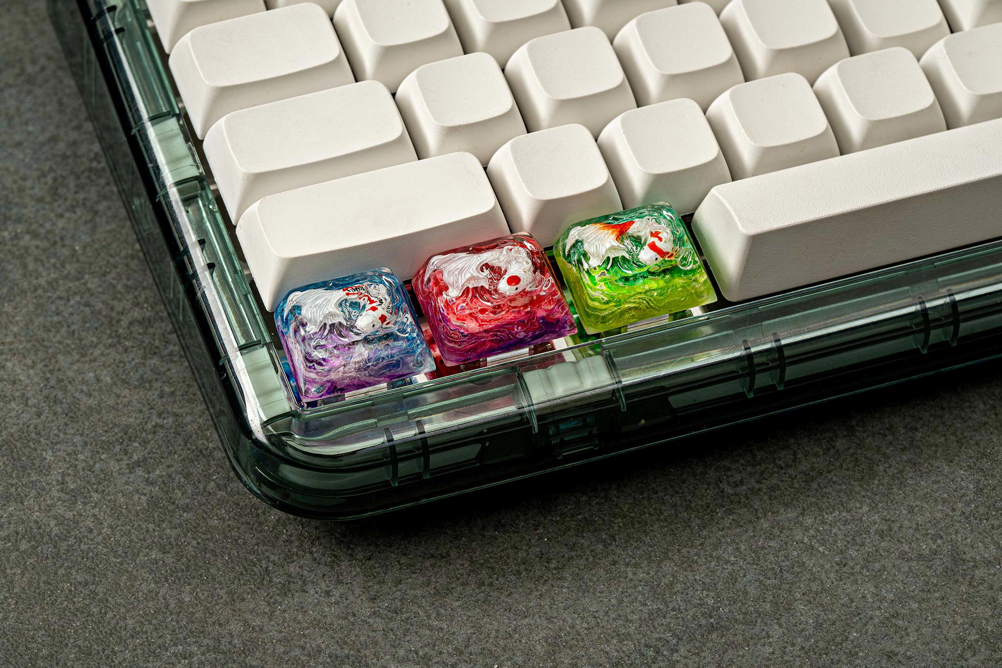 Each Zen Pond keycap isn’t just a keyboard accessory, but a world of its own, a story told through resin and color, where Koi fish find their eternal home in the shimmering Eden waters.