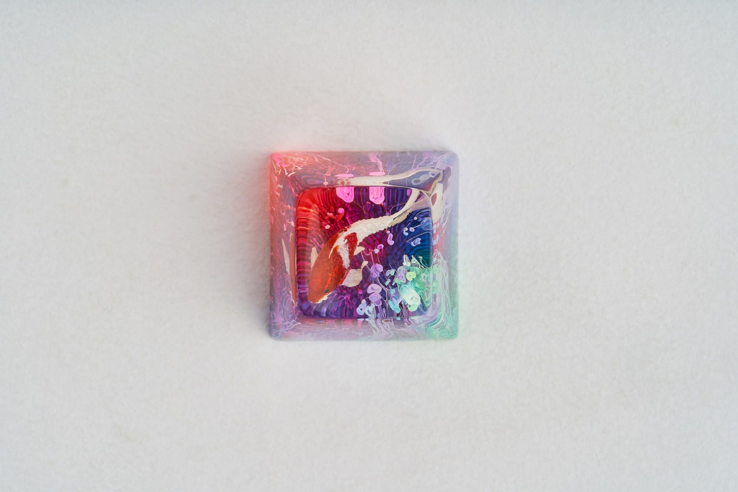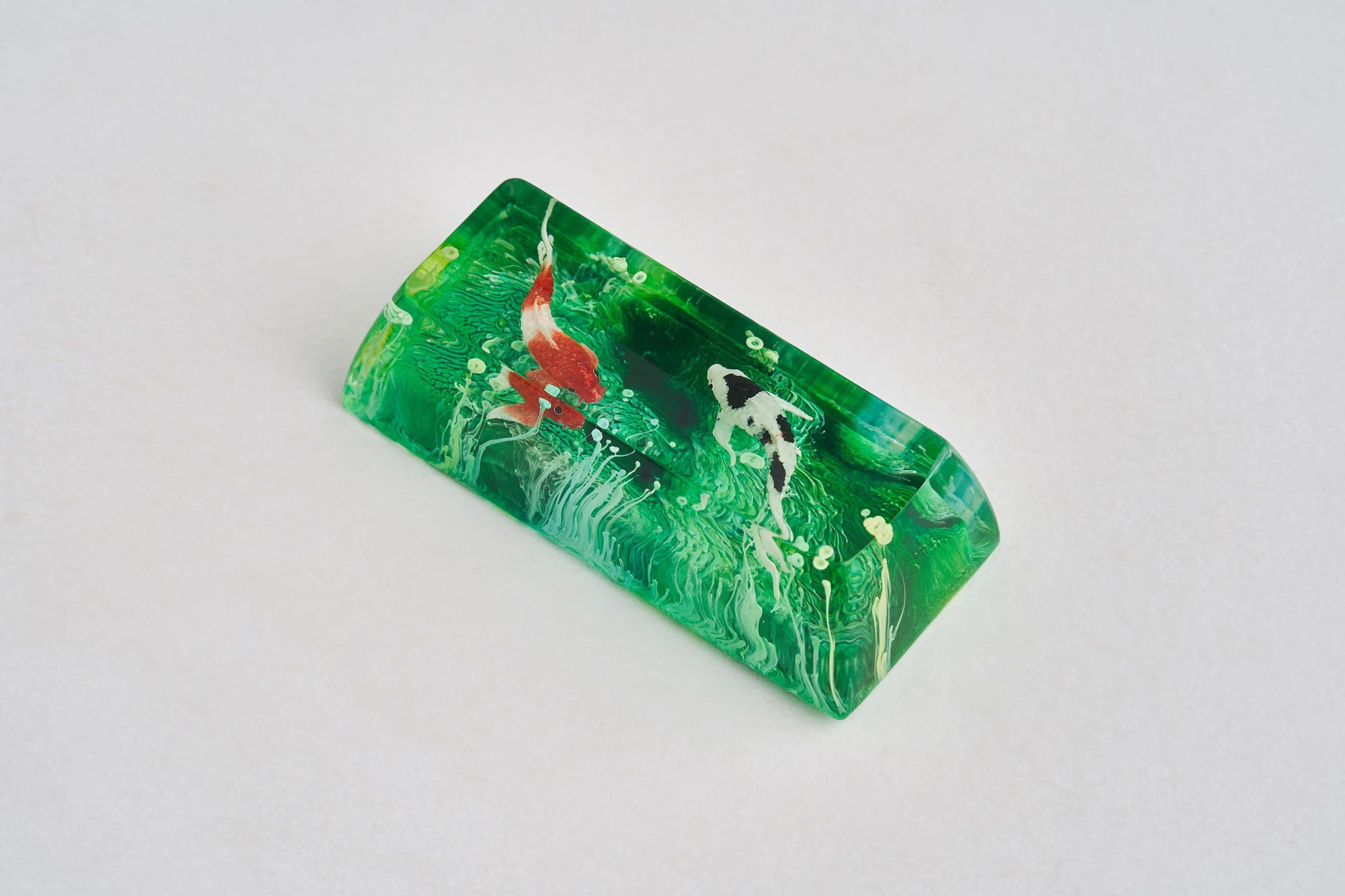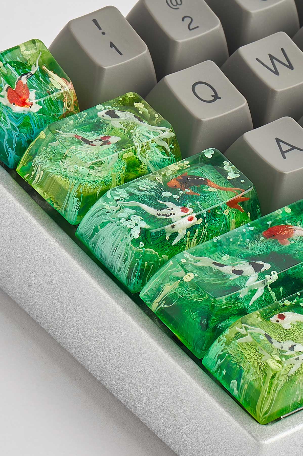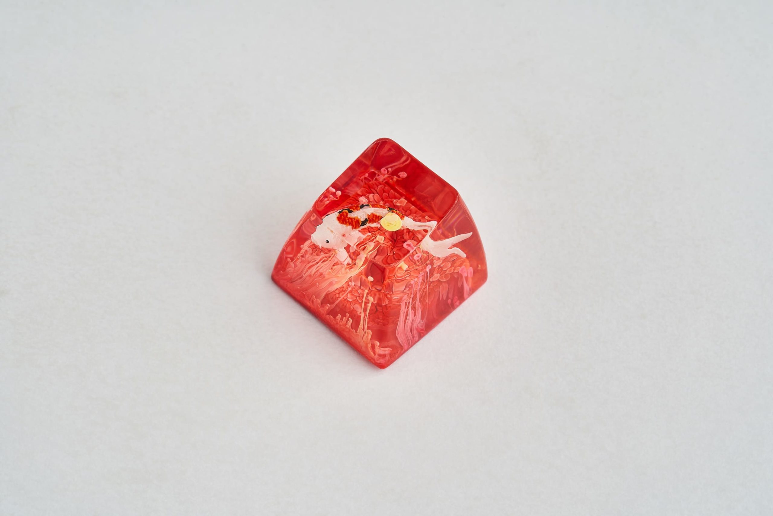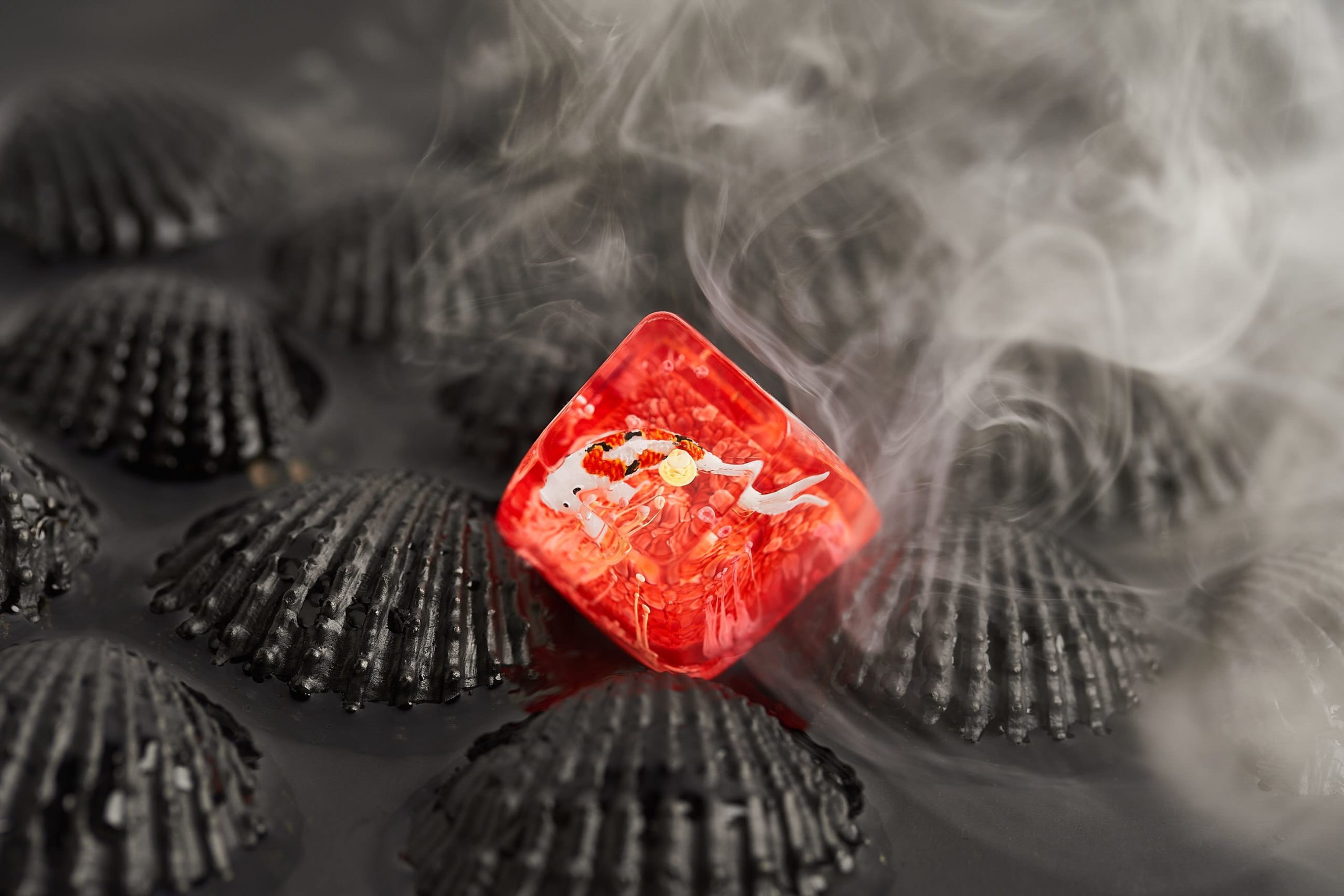 Back in the early days of 2018, at that time, Jelly Key was in the time of exploring and researching for the new effects to create the new keycaps bearing Jelly Key’s own impression. Day after day, sometimes last for months, we always tried to find out the best way to create the best effects for our keycap. Finally, the final result just worth for the Jelly Key group effort – the Eden effect of was born, an important milestone for our following keycap generations: Arowana, Zen Pond, Meditation Gems, Poring Ghoul, Zen Pond Spacebar/Enter/Shift, Dragon of Eden Enter/Backspace/Shift... and the latest is Koi II: A story of Everything is introduced to you in the group buy this time.