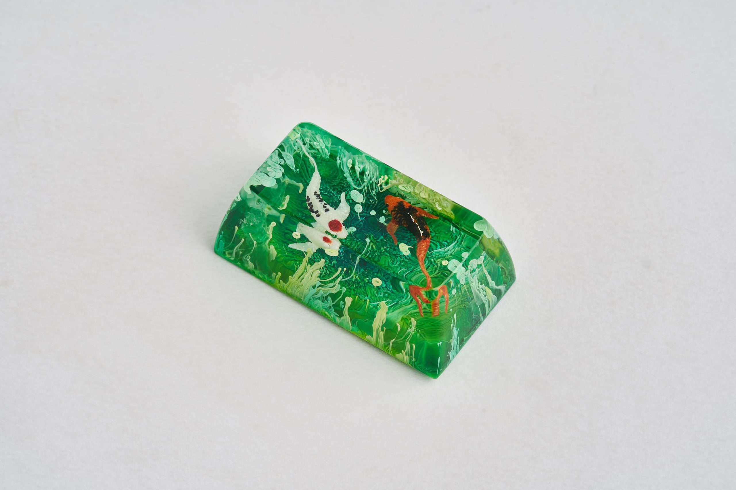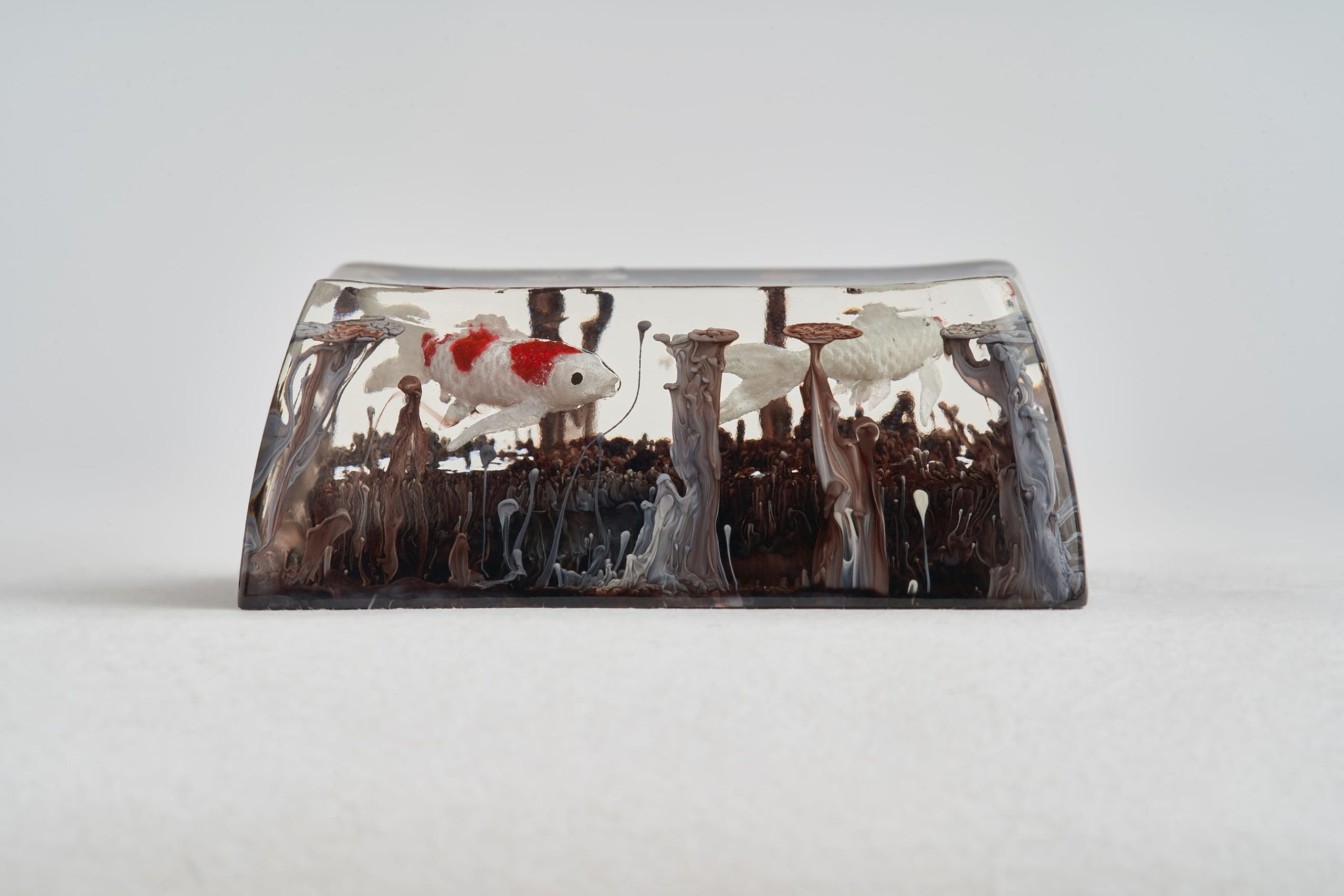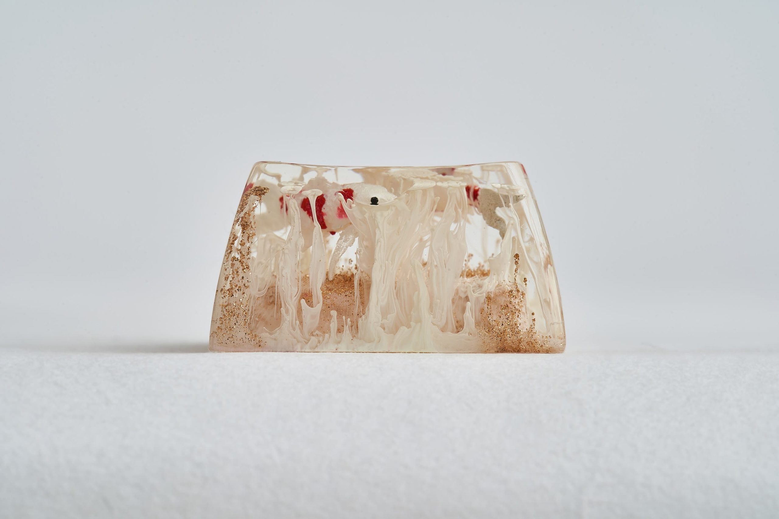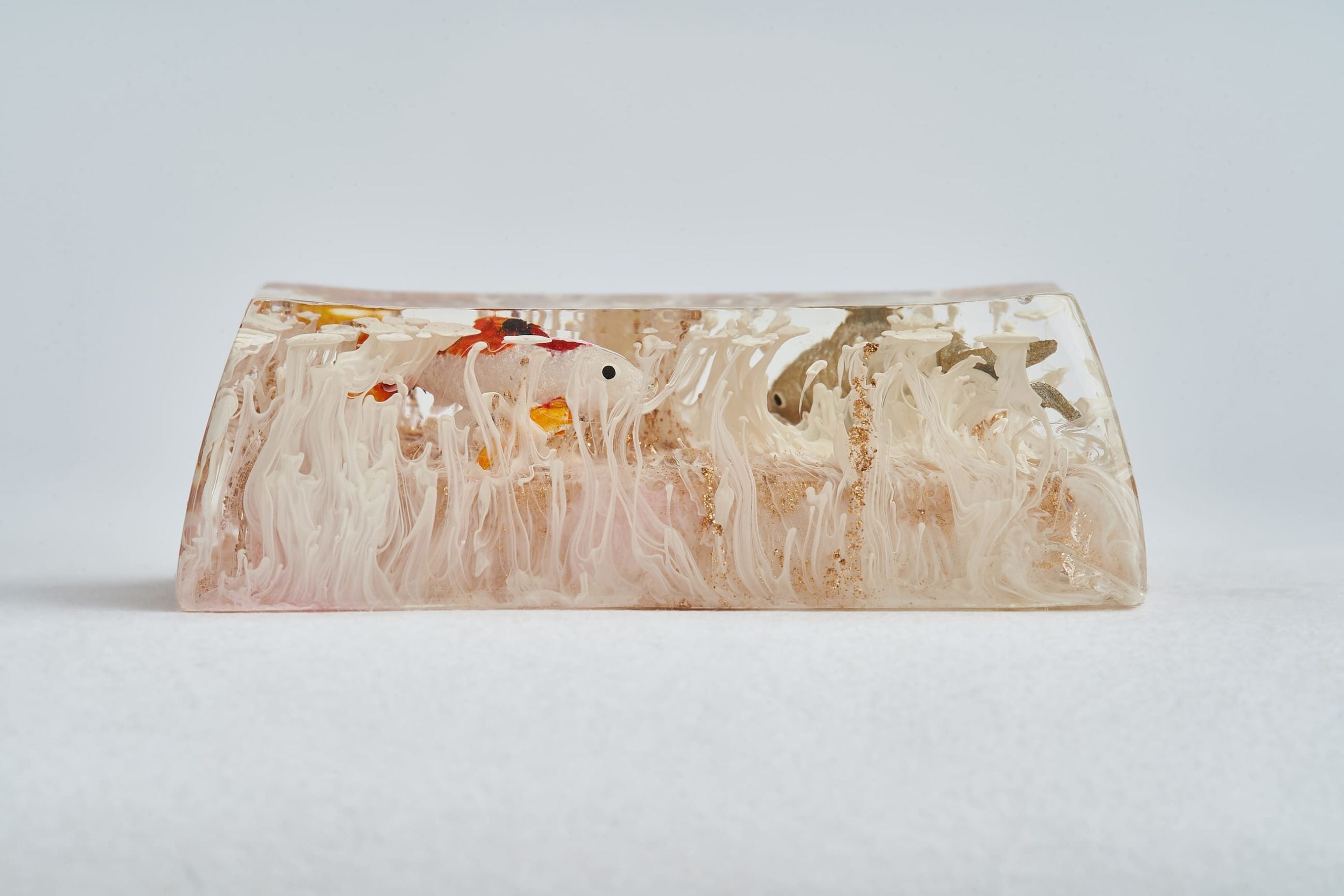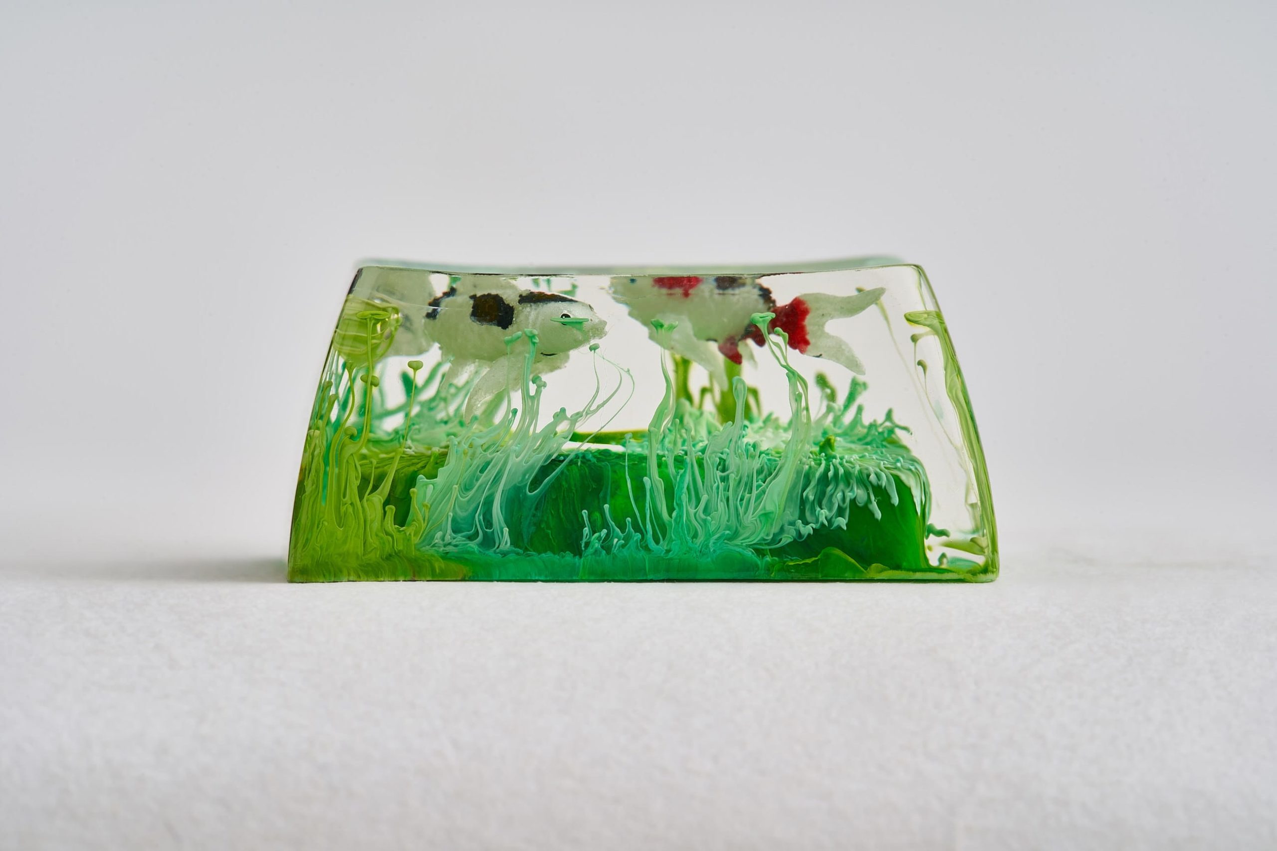 Back in the early days of 2018, at that time, Jelly Key was in the time of exploring and researching for the new effects to create the new keycaps bearing Jelly Key’s own impression. Day after day, sometimes last for months, we always tried to find out the best way to create the best effects for our keycap. Finally, the final result just worth for the Jelly Key group effort – the Eden effect of was born, an important milestone for our following keycap generations: Arowana, Zen Pond, Meditation Gems, Poring Ghoul, Zen Pond Spacebar/Enter/Shift, Dragon of Eden Enter/Backspace/Shift... and the latest is Koi II: A story of Everything is introduced to you in the group buy this time.