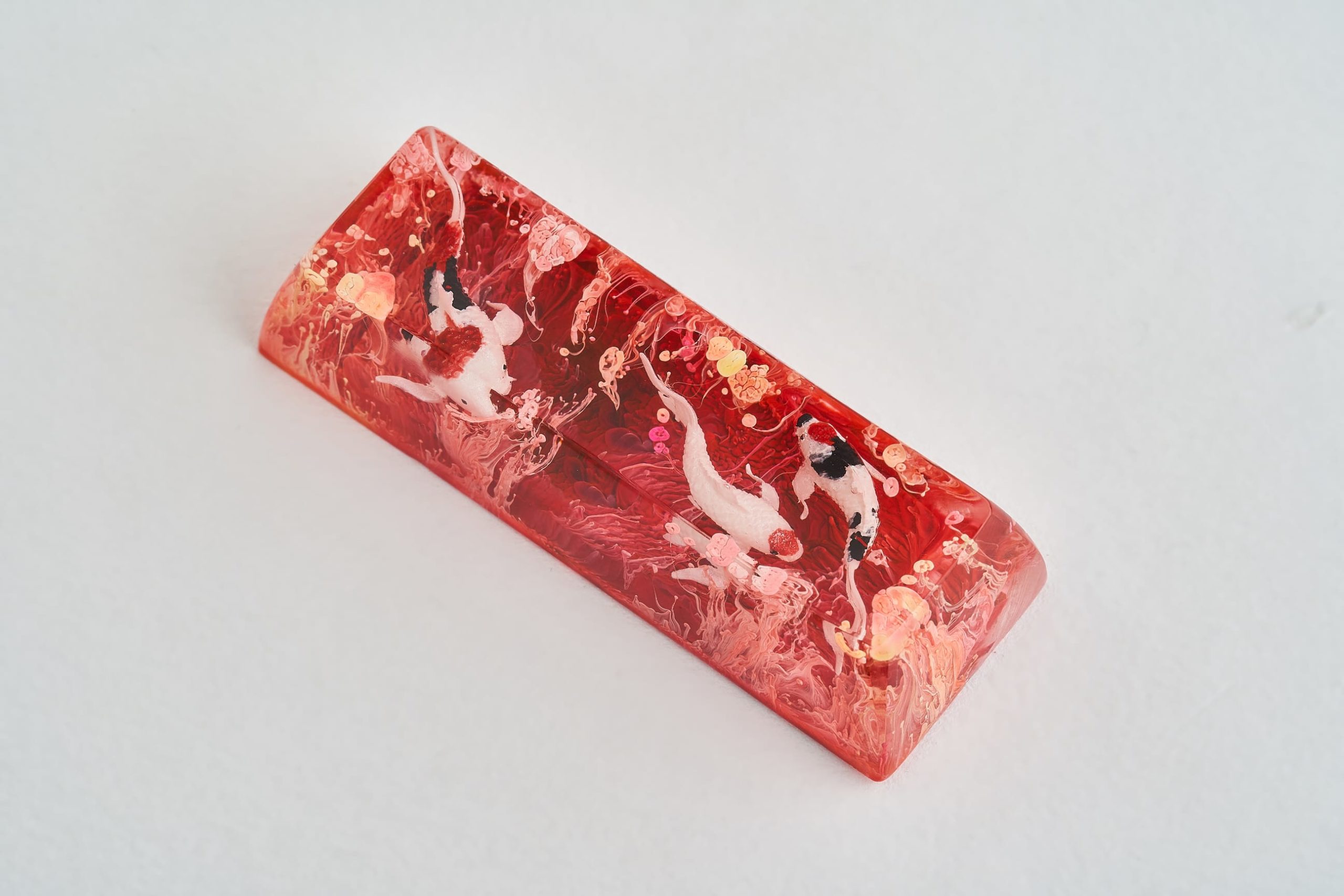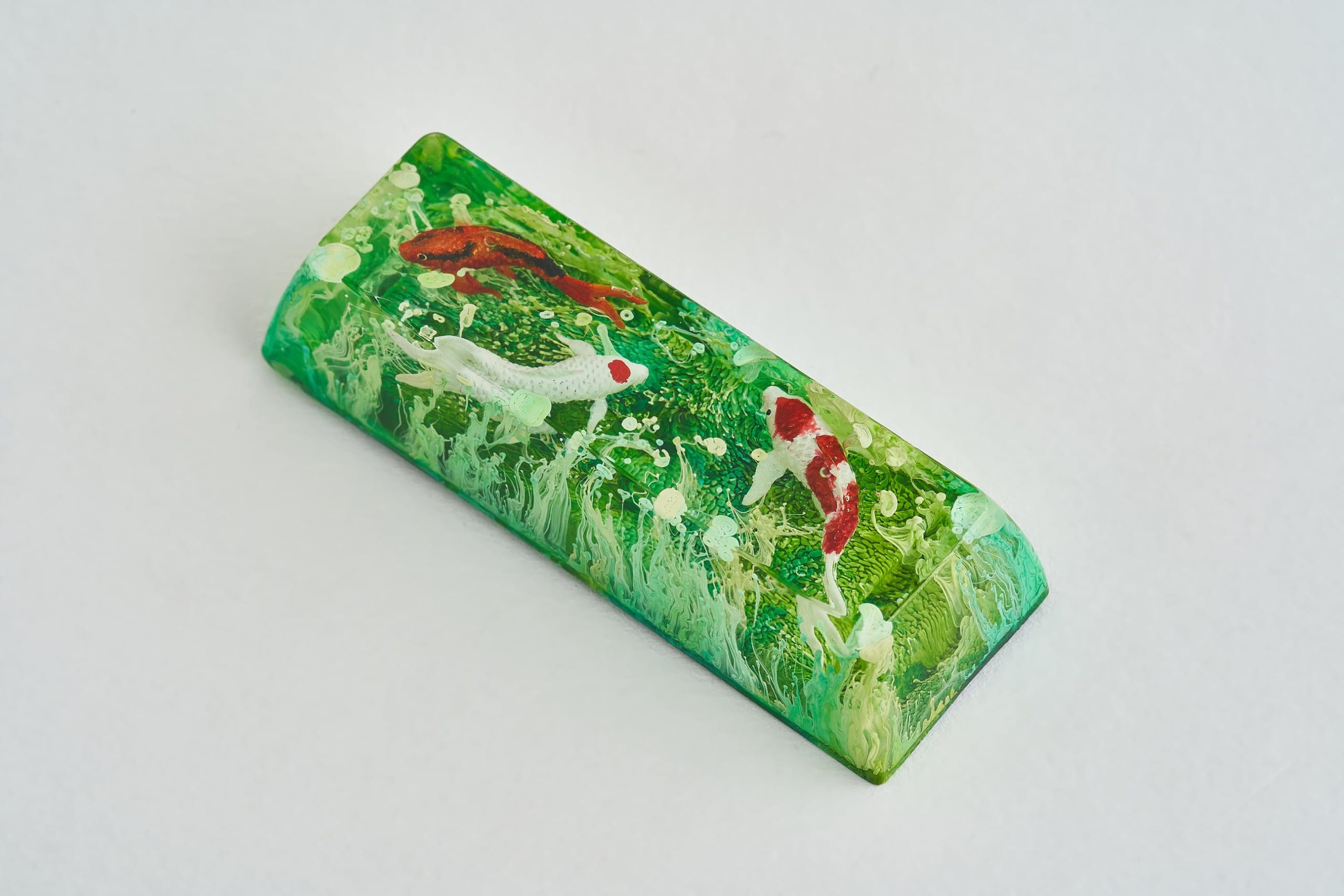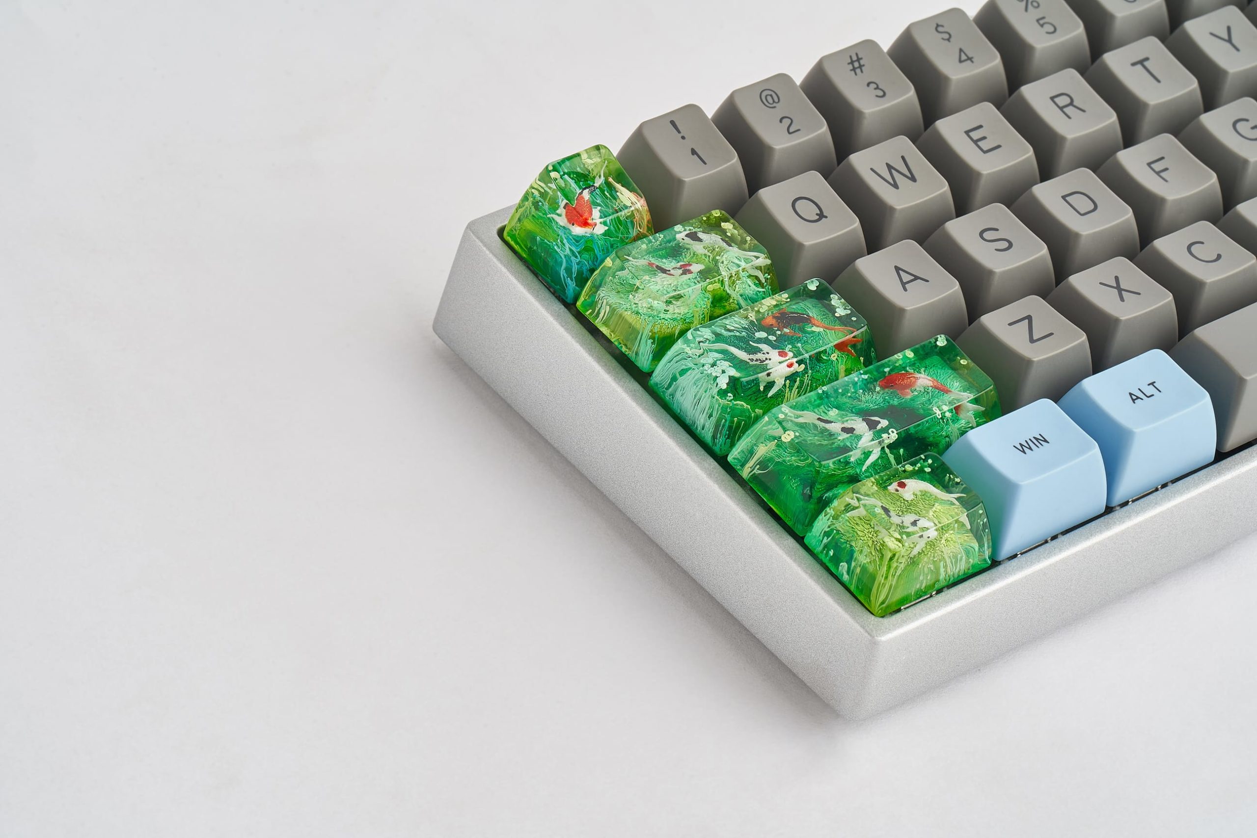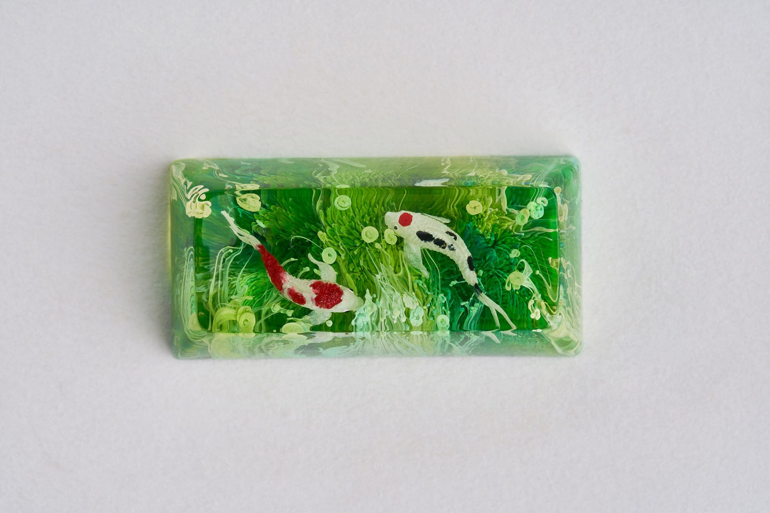 Back in the early days of 2018, at that time, Jelly Key was in the time of exploring and researching for the new effects to create the new keycaps bearing Jelly Key’s own impression. Day after day, sometimes last for months, we always tried to find out the best way to create the best effects for our keycap. Finally, the final result just worth for the Jelly Key group effort – the Eden effect of was born, an important milestone for our following keycap generations: Arowana, Zen Pond, Meditation Gems, Poring Ghoul, Zen Pond Spacebar/Enter/Shift, Dragon of Eden Enter/Backspace/Shift... and the latest is Koi II: A story of Everything is introduced to you in the group buy this time.