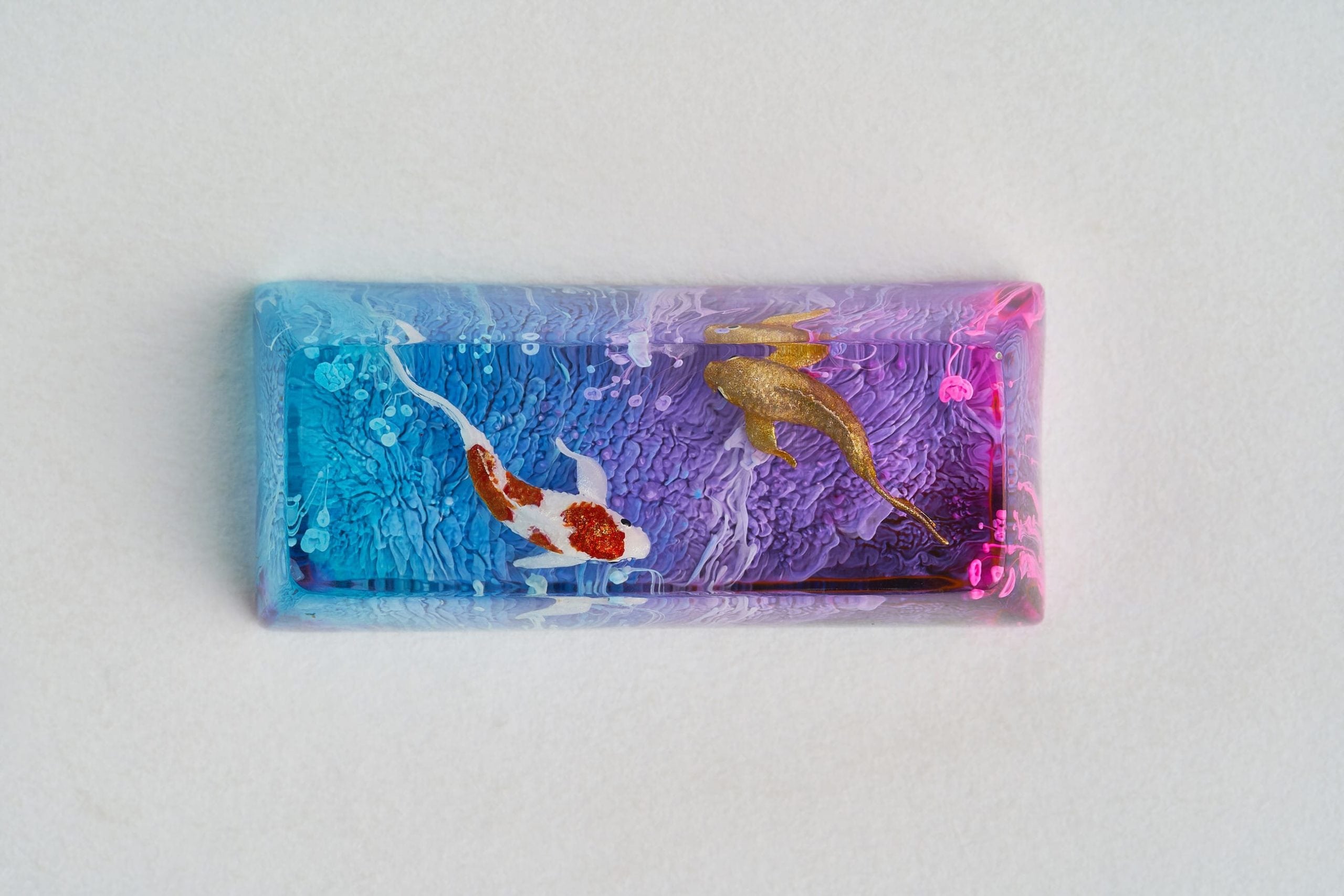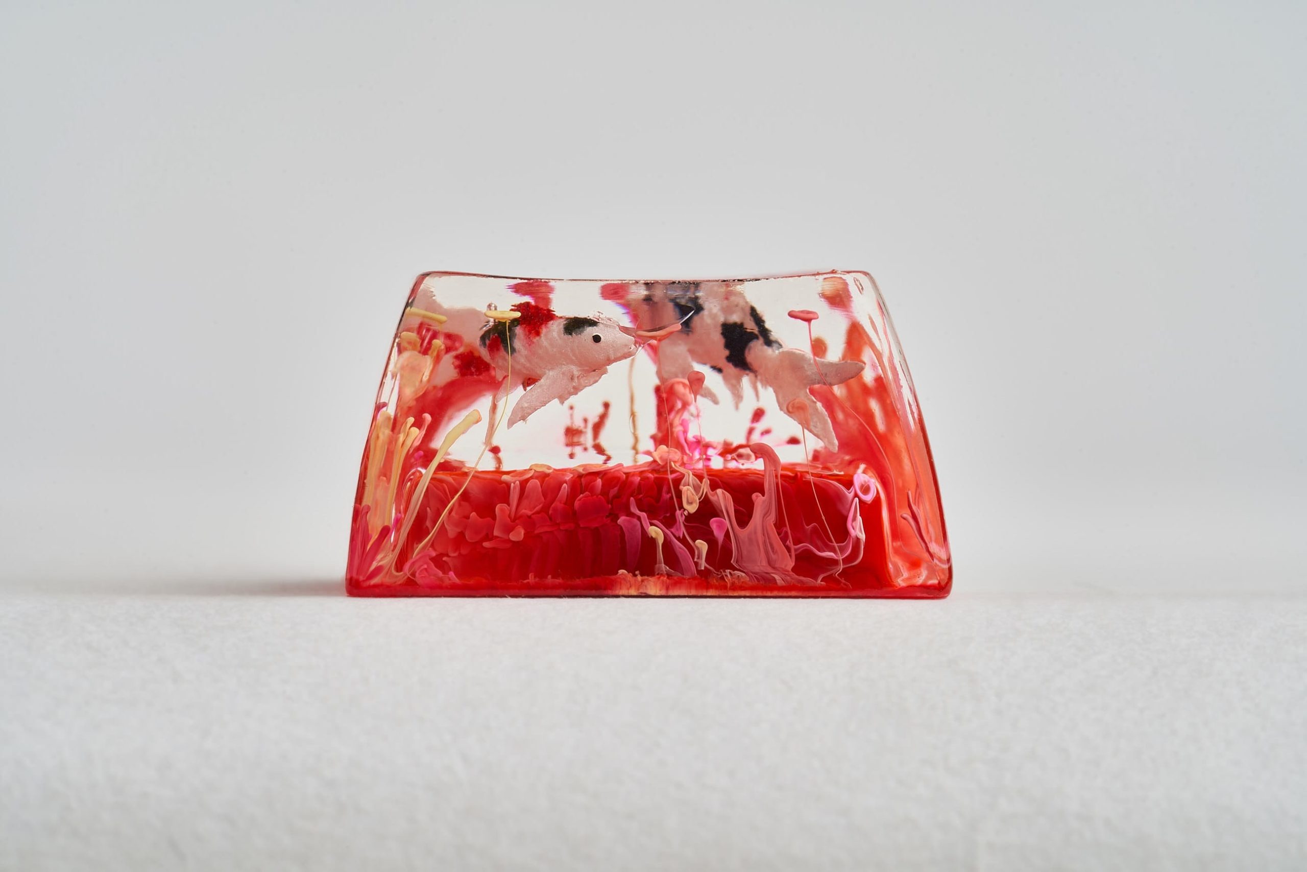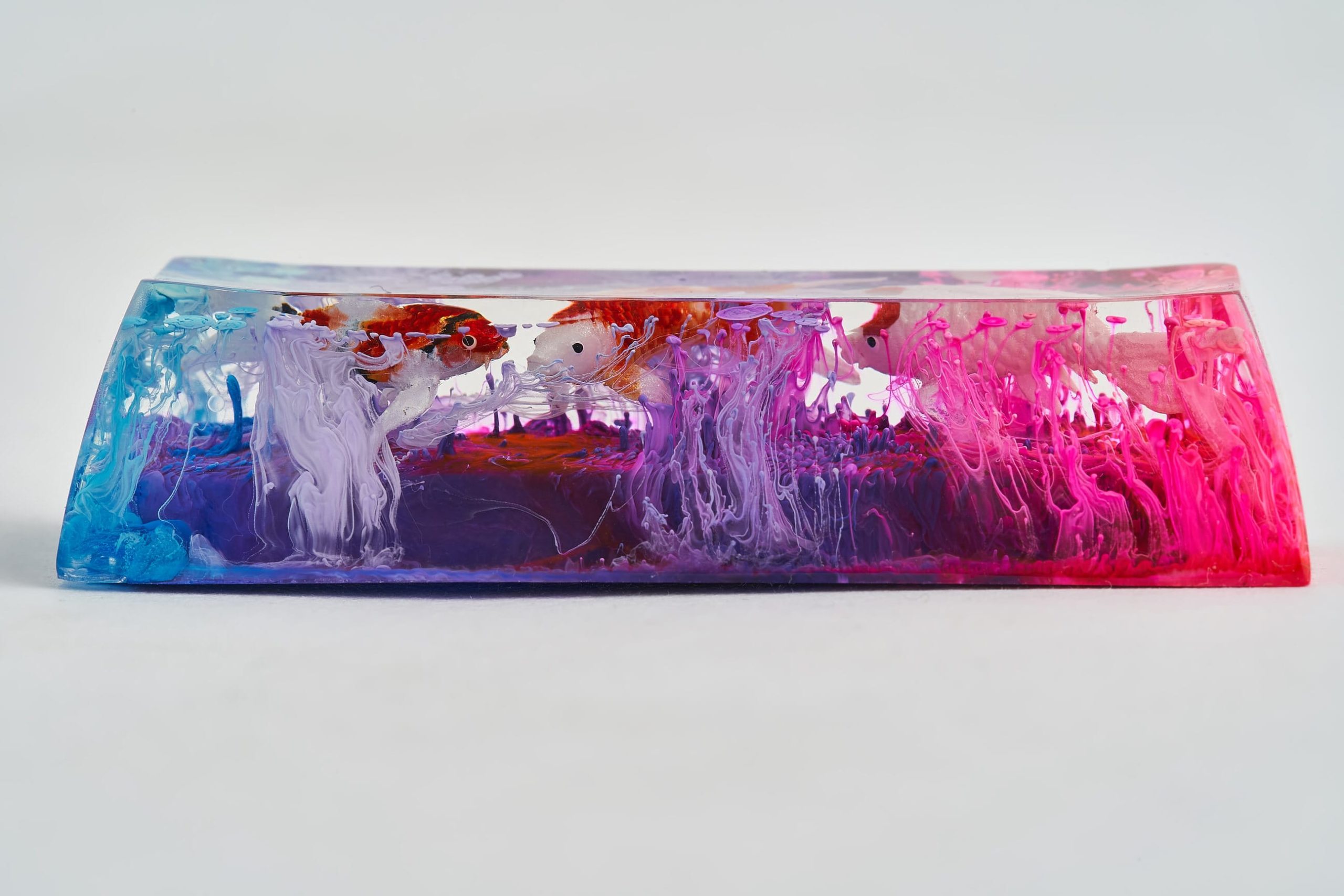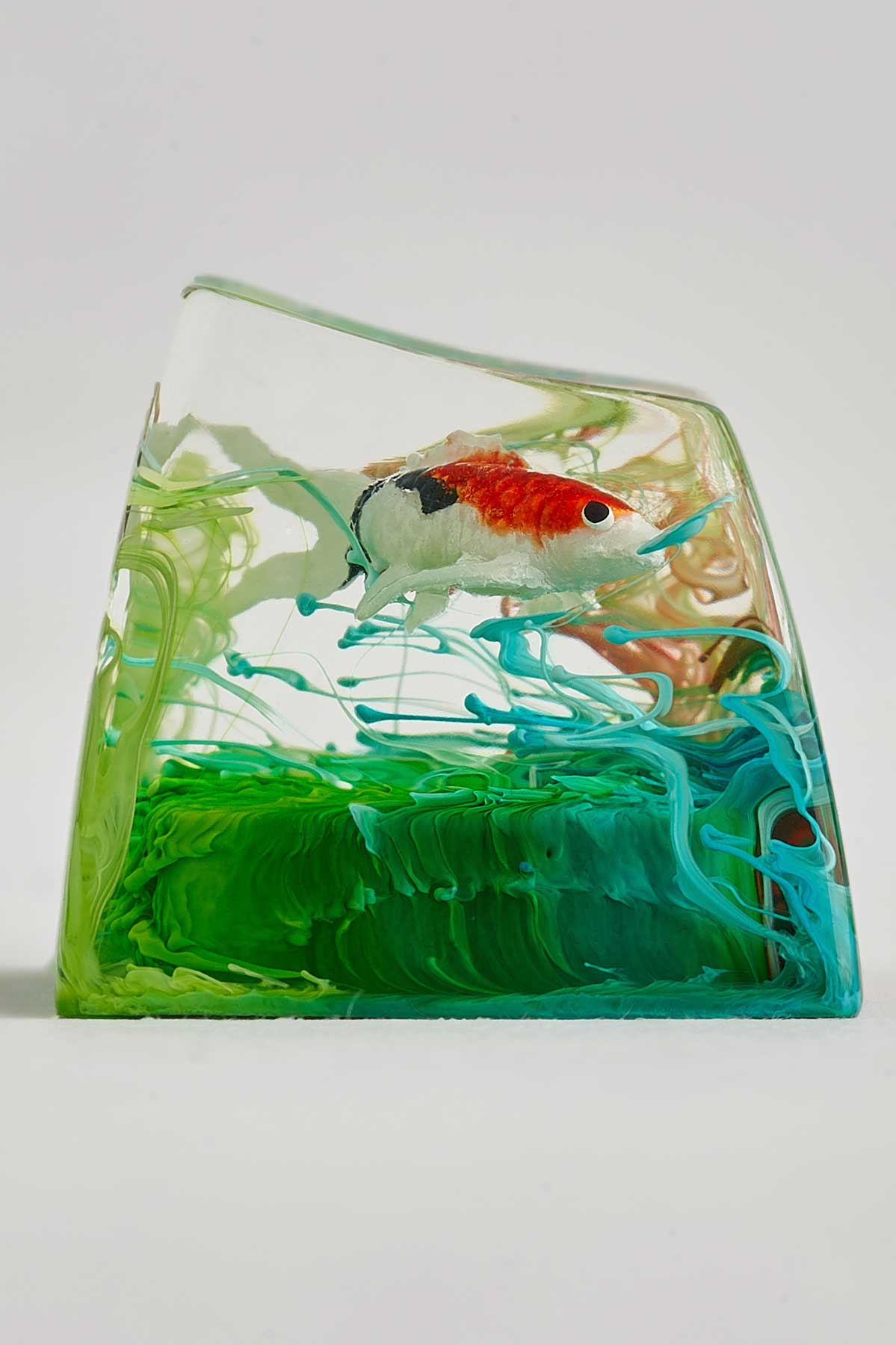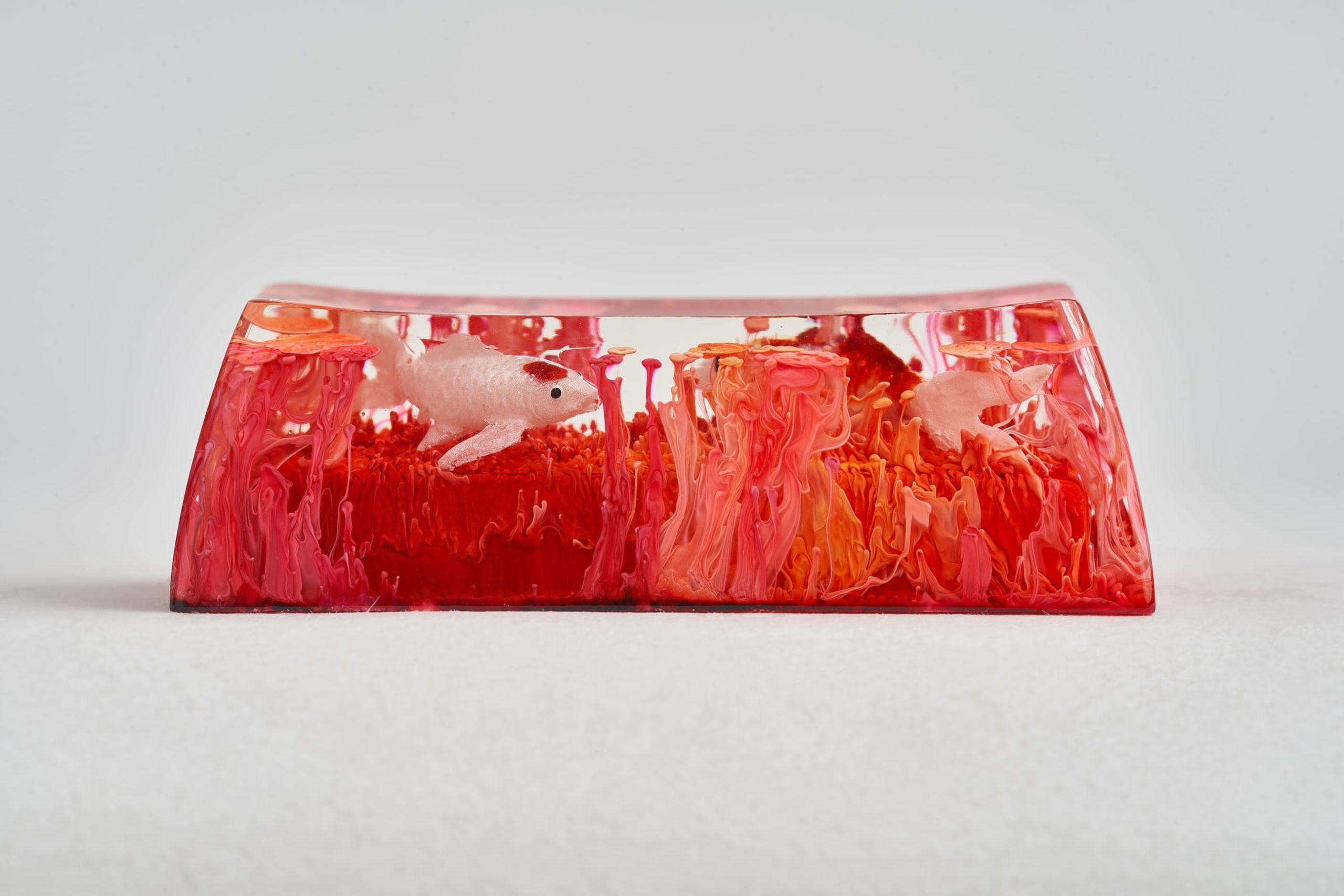 Back in the early days of 2018, at that time, Jelly Key was in the time of exploring and researching for the new effects to create the new keycaps bearing Jelly Key’s own impression. Day after day, sometimes last for months, we always tried to find out the best way to create the best effects for our keycap. Finally, the final result just worth for the Jelly Key group effort – the Eden effect of was born, an important milestone for our following keycap generations: Arowana, Zen Pond, Meditation Gems, Poring Ghoul, Zen Pond Spacebar/Enter/Shift, Dragon of Eden Enter/Backspace/Shift... and the latest is Koi II: A story of Everything is introduced to you in the group buy this time.