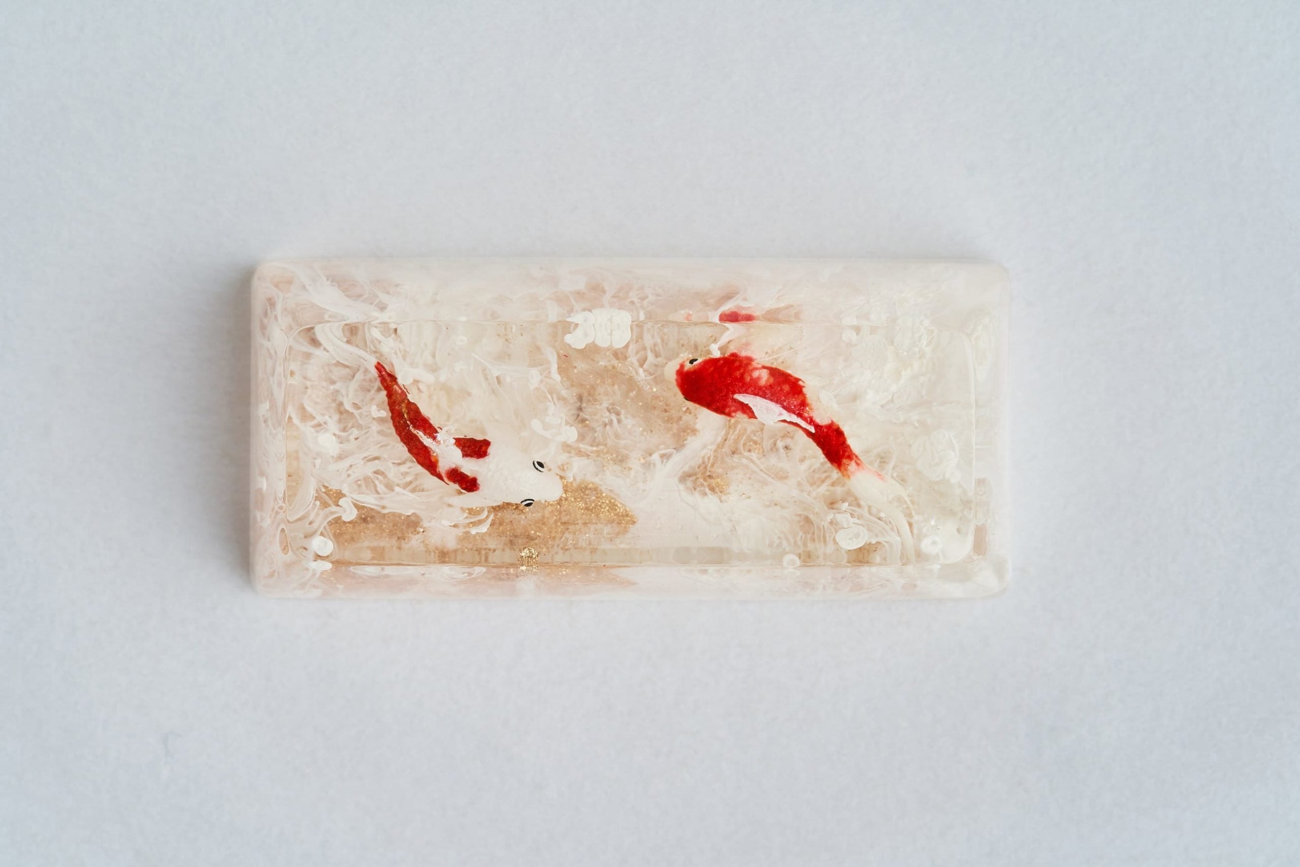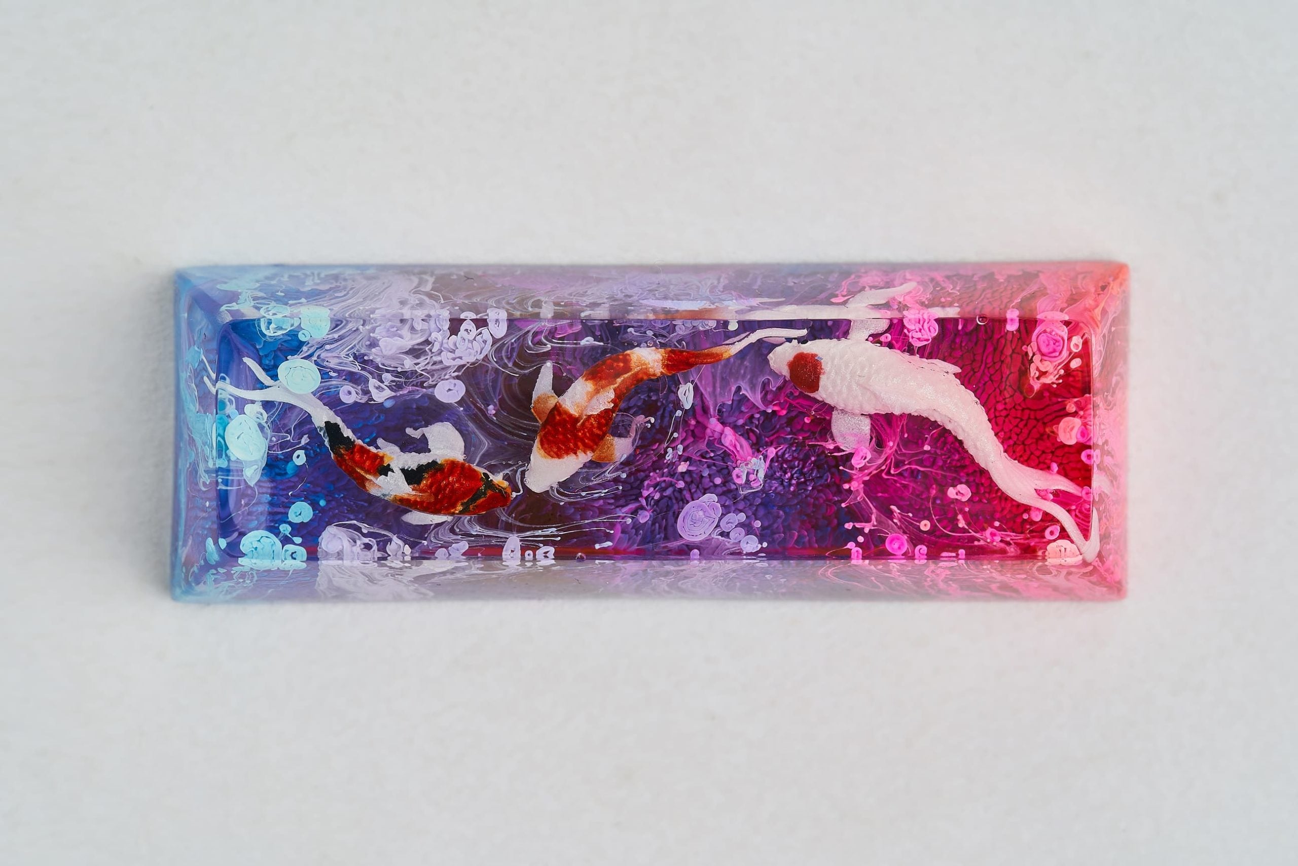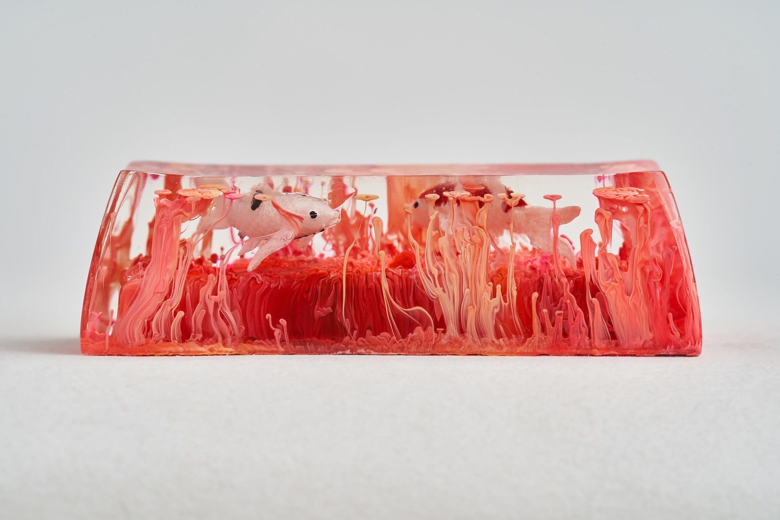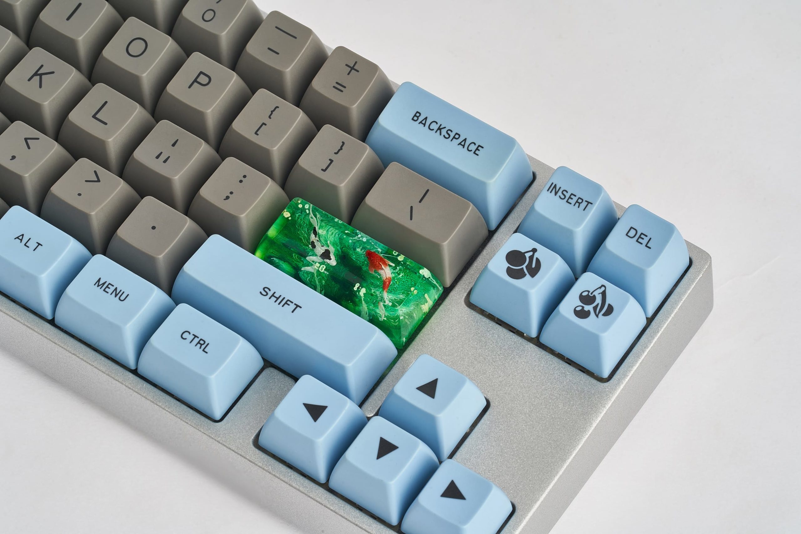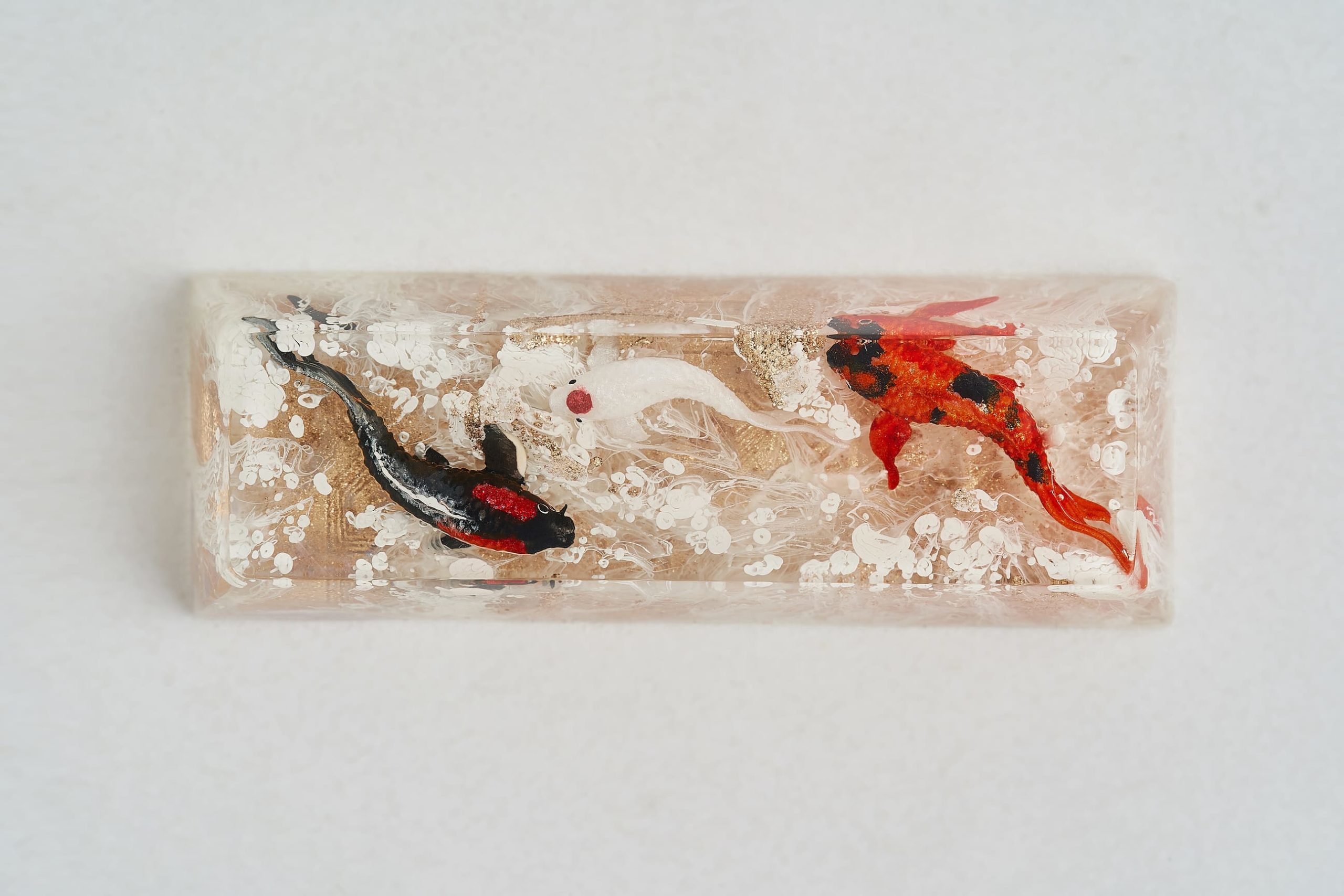 Back in the early days of 2018, at that time, Jelly Key was in the time of exploring and researching for the new effects to create the new keycaps bearing Jelly Key’s own impression. Day after day, sometimes last for months, we always tried to find out the best way to create the best effects for our keycap. Finally, the final result just worth for the Jelly Key group effort – the Eden effect of was born, an important milestone for our following keycap generations: Arowana, Zen Pond, Meditation Gems, Poring Ghoul, Zen Pond Spacebar/Enter/Shift, Dragon of Eden Enter/Backspace/Shift... and the latest is Koi II: A story of Everything is introduced to you in the group buy this time.