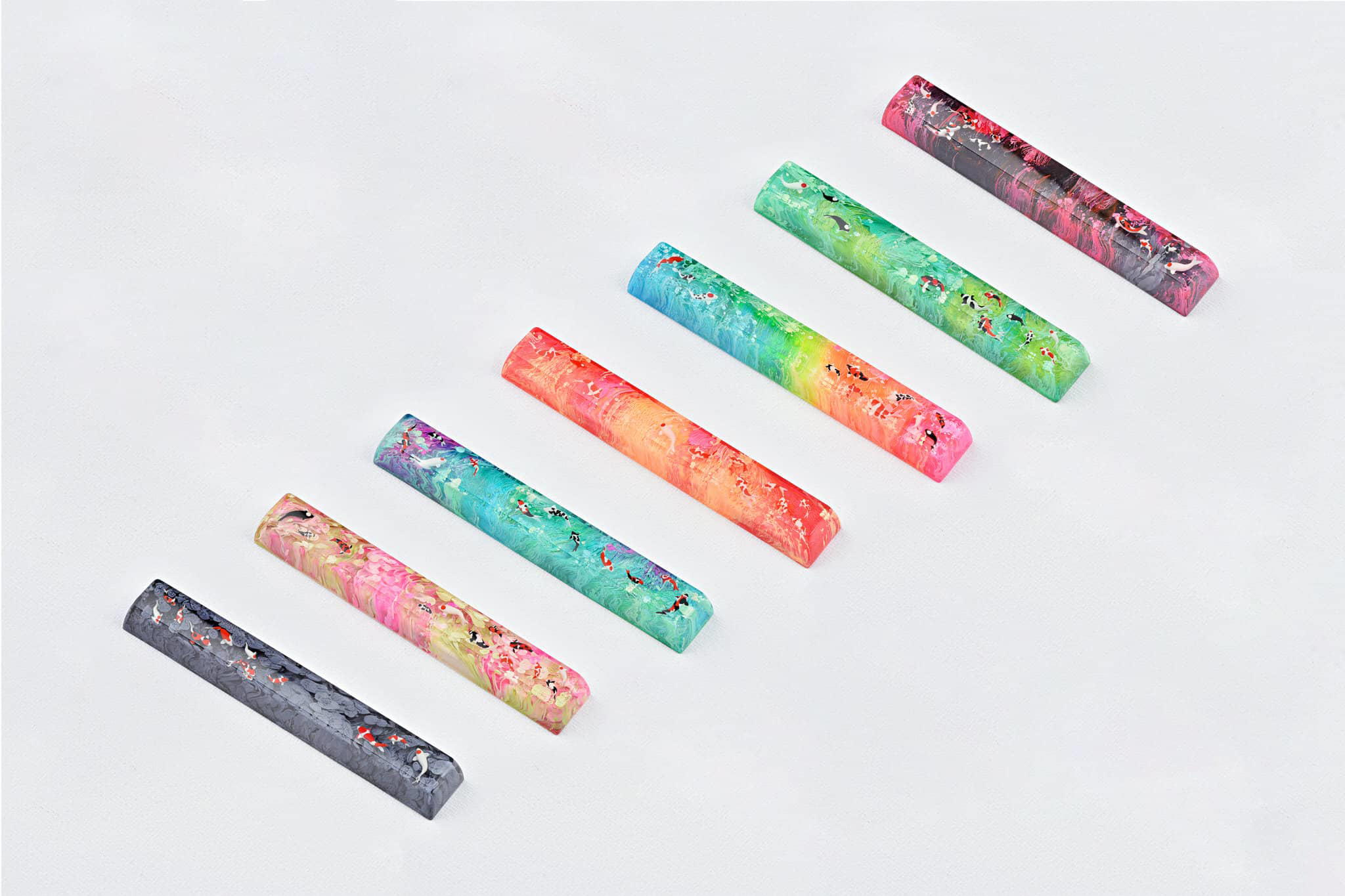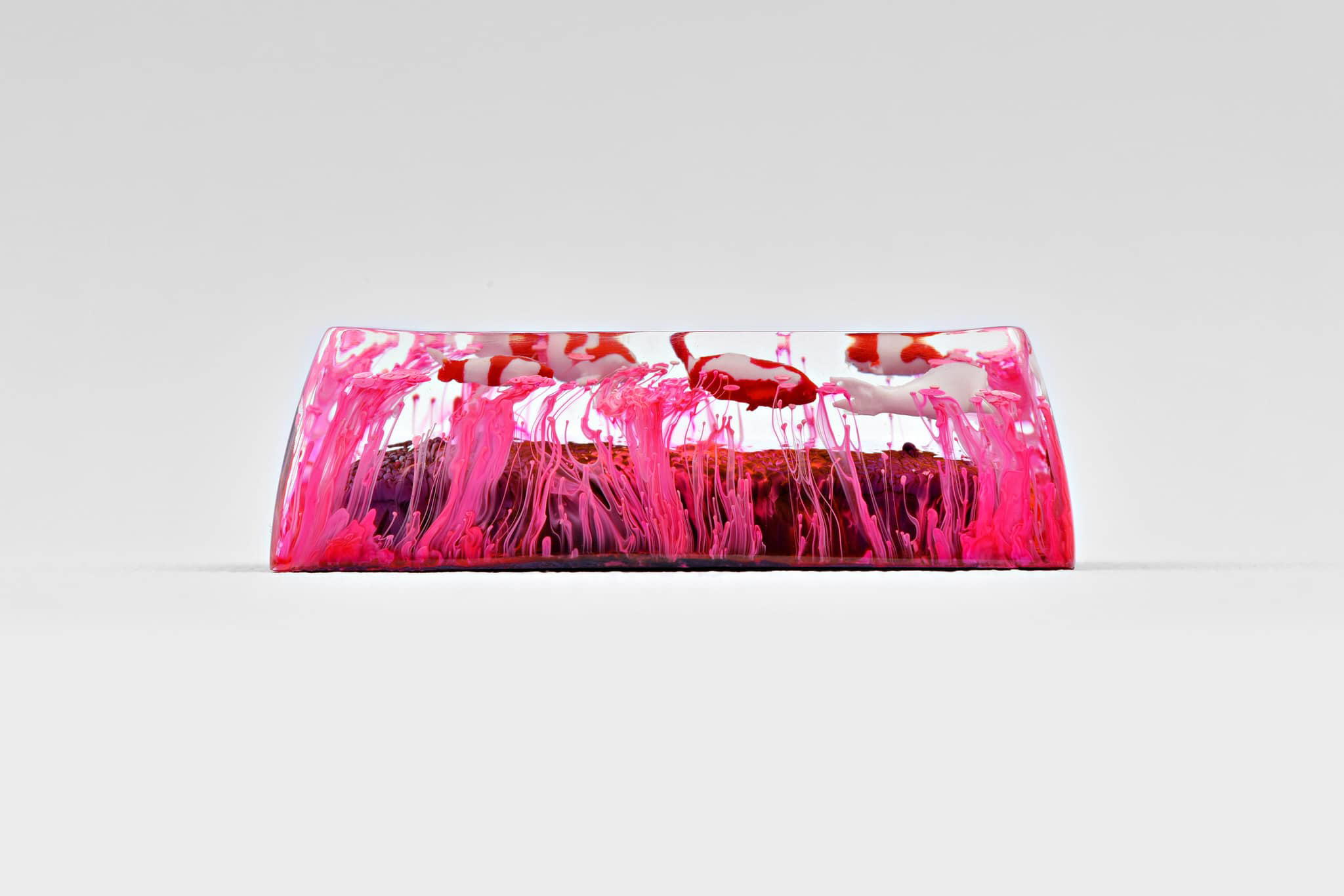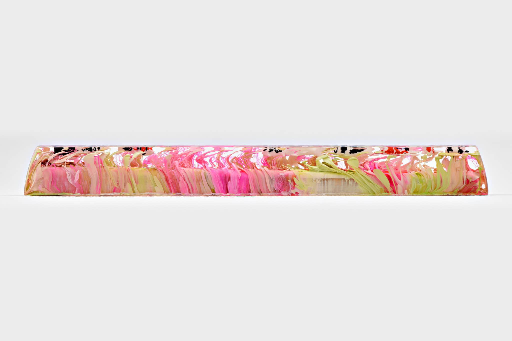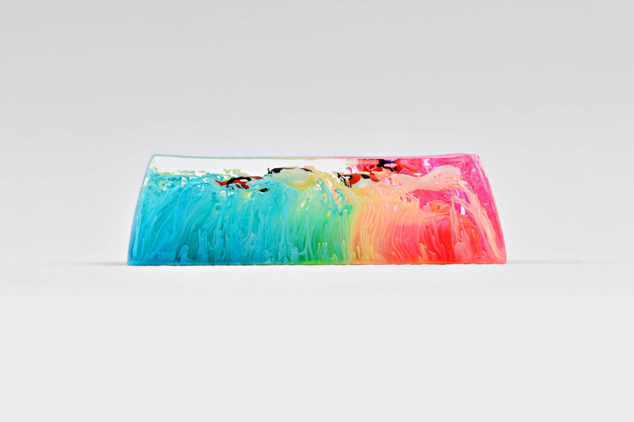 Alright. It’s about the magic ink we’ve been talking about since we first providing the Jelly Eden artisan keycap series, throughout the period. We’d like to call the art of mixing alcohol ink with resin is the Pouring Art. It concludes the abstract and random aspects in performance. The reaction of alcohol ink in resin brings about a hypothetical effect that is occasionally used in Interior design for some specific purposes. Which its elegant fluids play a key role in rising the power of imagination.