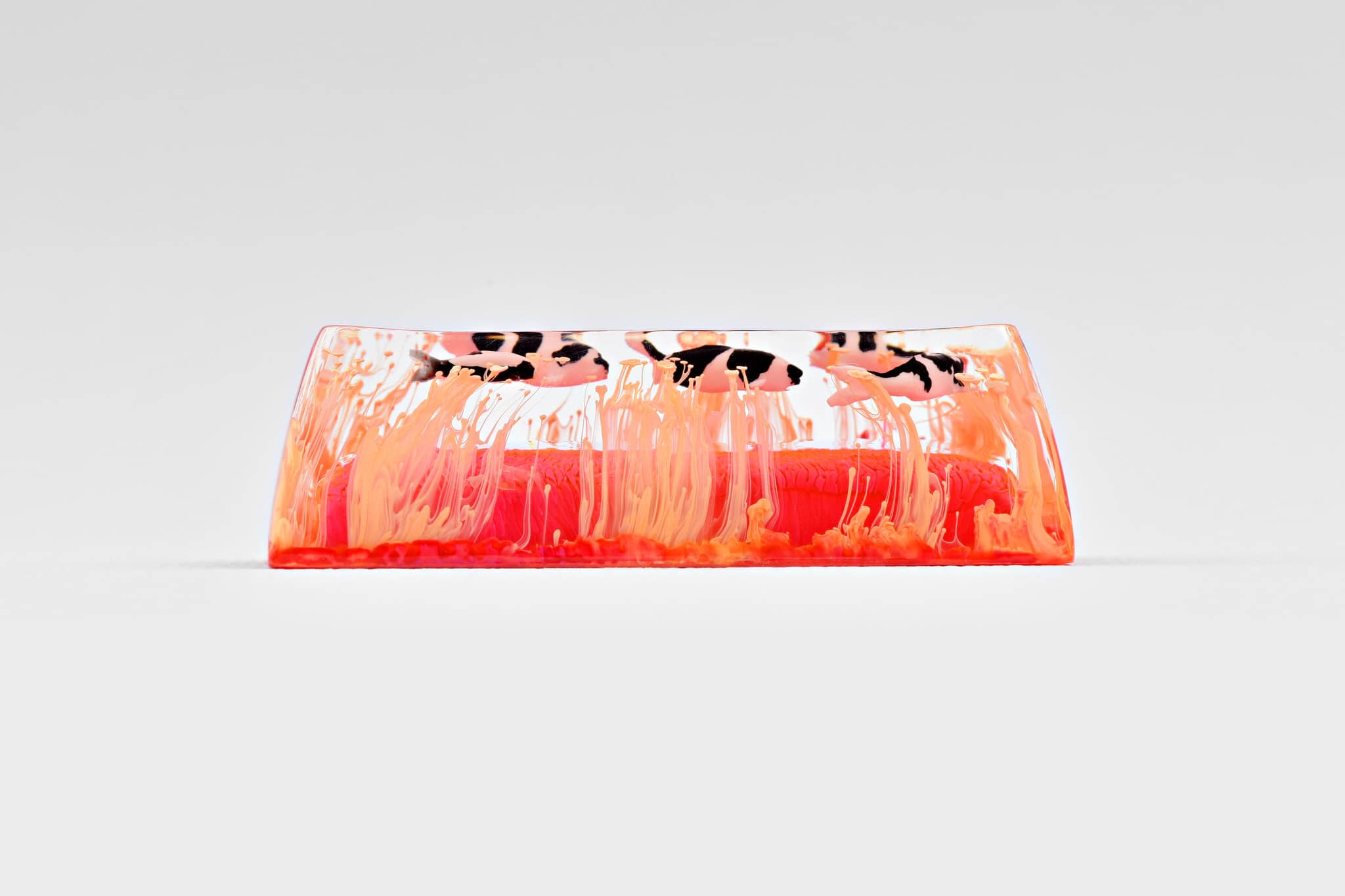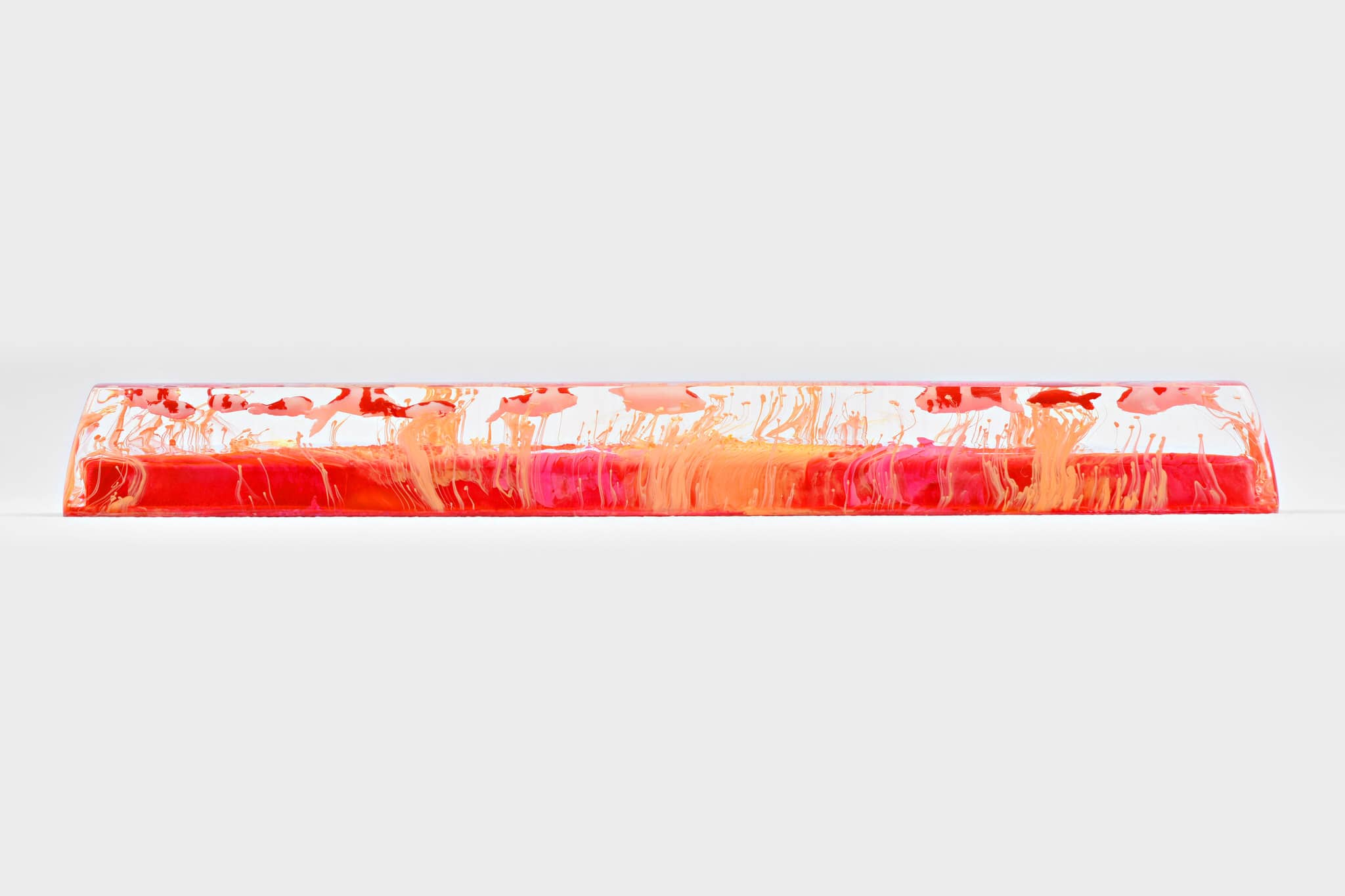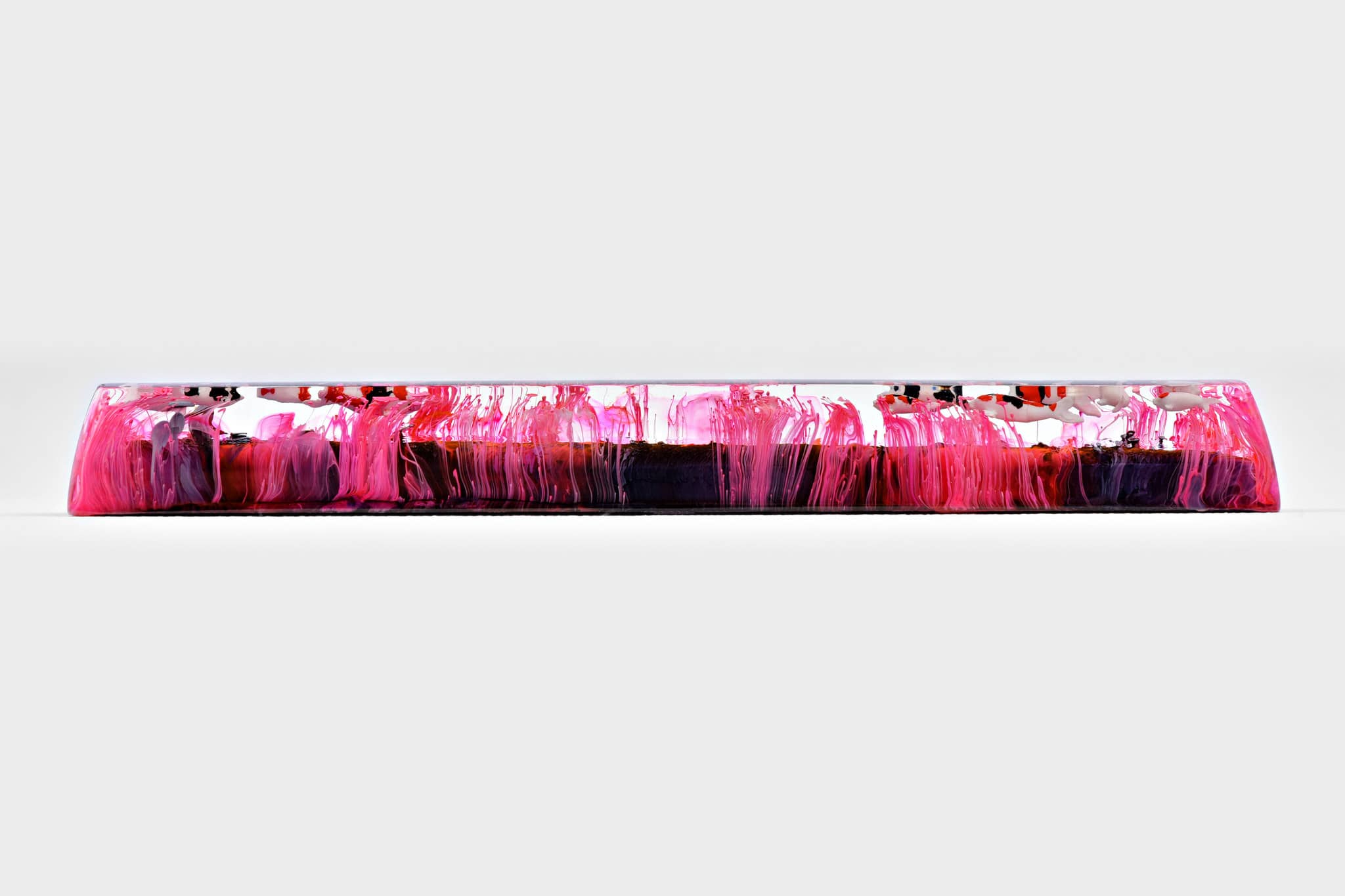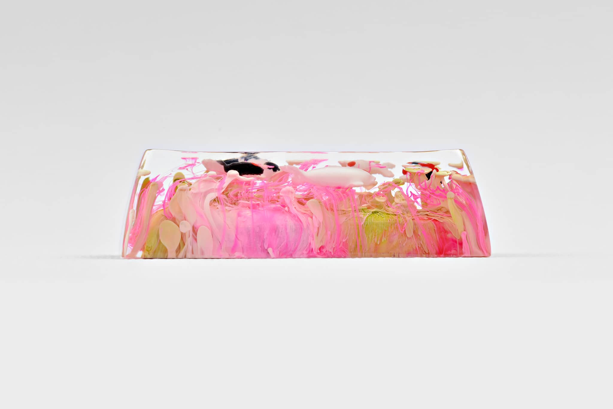 Alright. It’s about the magic ink we’ve been talking about since we first providing the Jelly Eden artisan keycap series, throughout the period. We’d like to call the art of mixing alcohol ink with resin is the Pouring Art. It concludes the abstract and random aspects in performance. The reaction of alcohol ink in resin brings about a hypothetical effect that is occasionally used in Interior design for some specific purposes. Which its elegant fluids play a key role in rising the power of imagination.