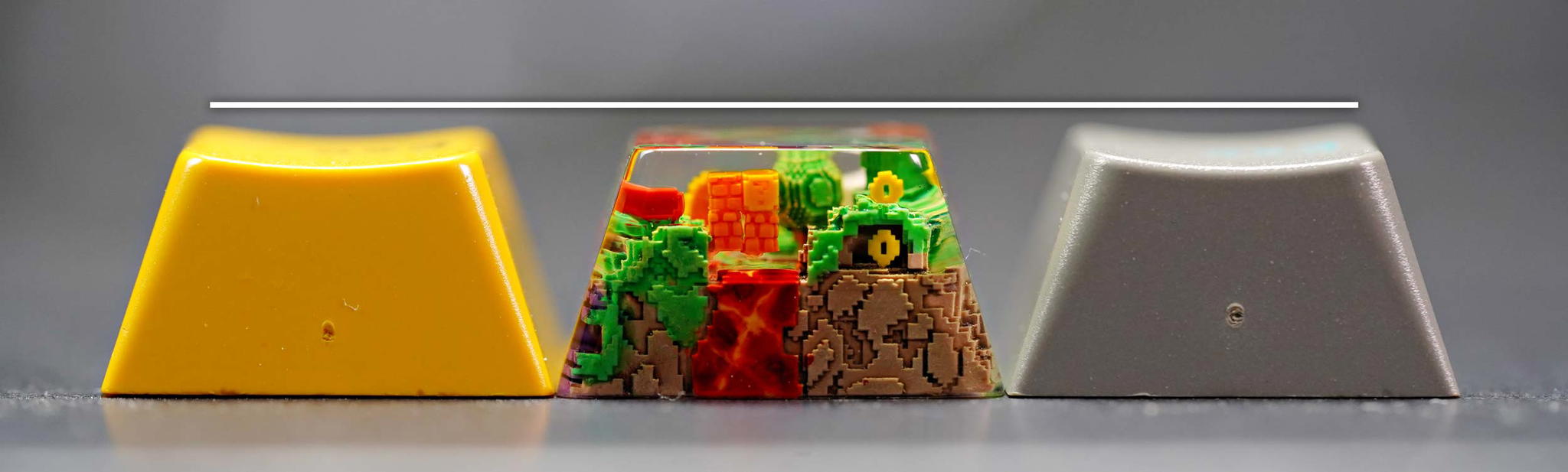 Ever since the beginning when Jelly Key made our very first artisan keycaps, especially for landscape series, we have to say that making inside details and casting resin over them in Cherry profile keys are our biggest challenge.