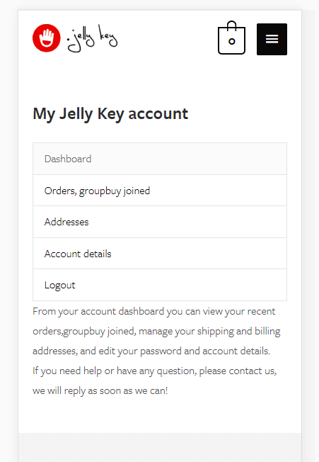 First, in previous email we informed you that Jelly Key website had been moved to a new system, for better order management and shipping tracking. We had move all of your old orders except your password because of security issue. But you can recover your password by going to Lost password – and follow the direction at My Jelly account.