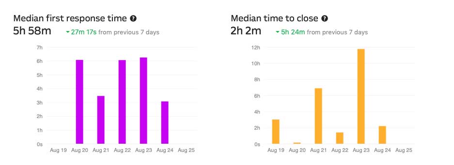 2 years ago, our Median first response time is 14 hours, lately is 5 hours. It’s a real improvement.