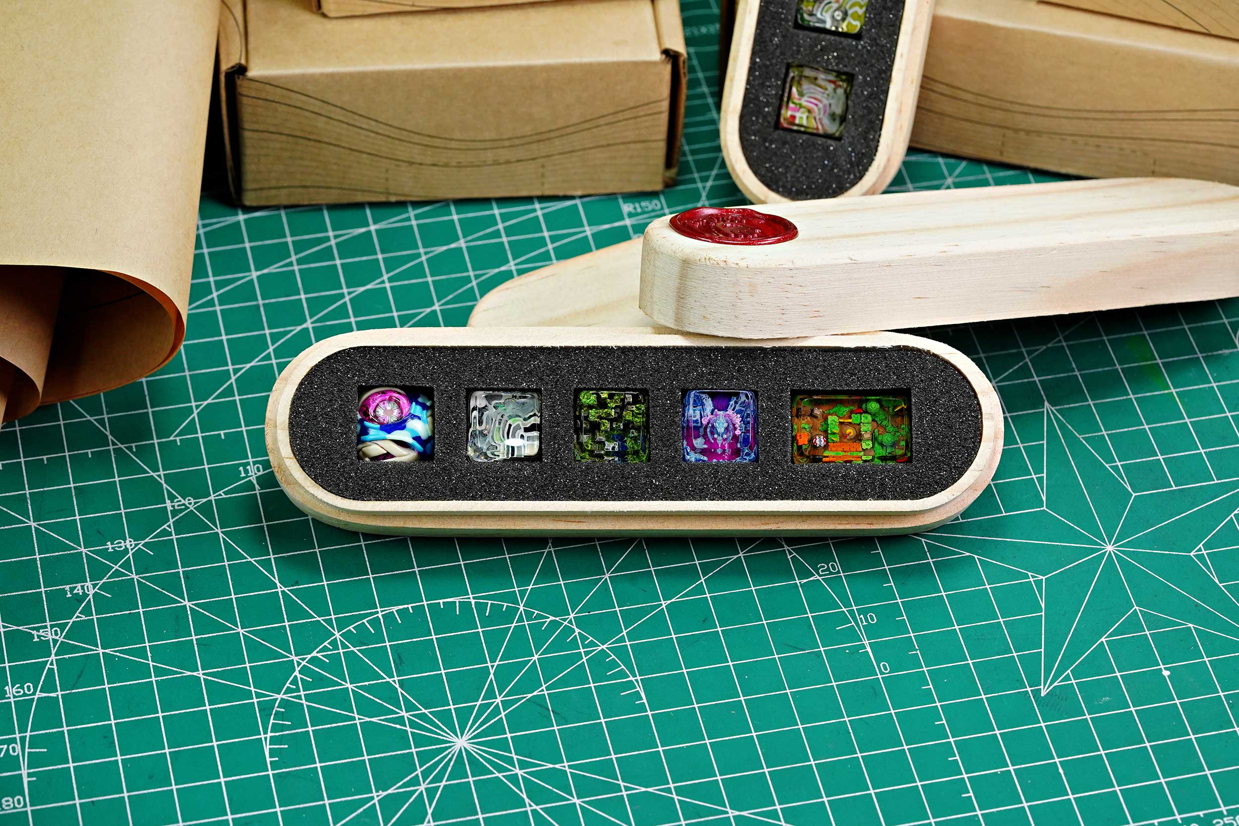 Another crucial step we take in the packaging improvement voyage this time is how many artisan keycaps can be packed in a box. In the past, one box can contain only one keycap, regardless of the key type. Henceforward, when you have compound orders, multiple Jelly Key crafts can be loaded in just a single package. We believe this would considerably enhance the space efficiency during delivery and also for you to keep the collection better.