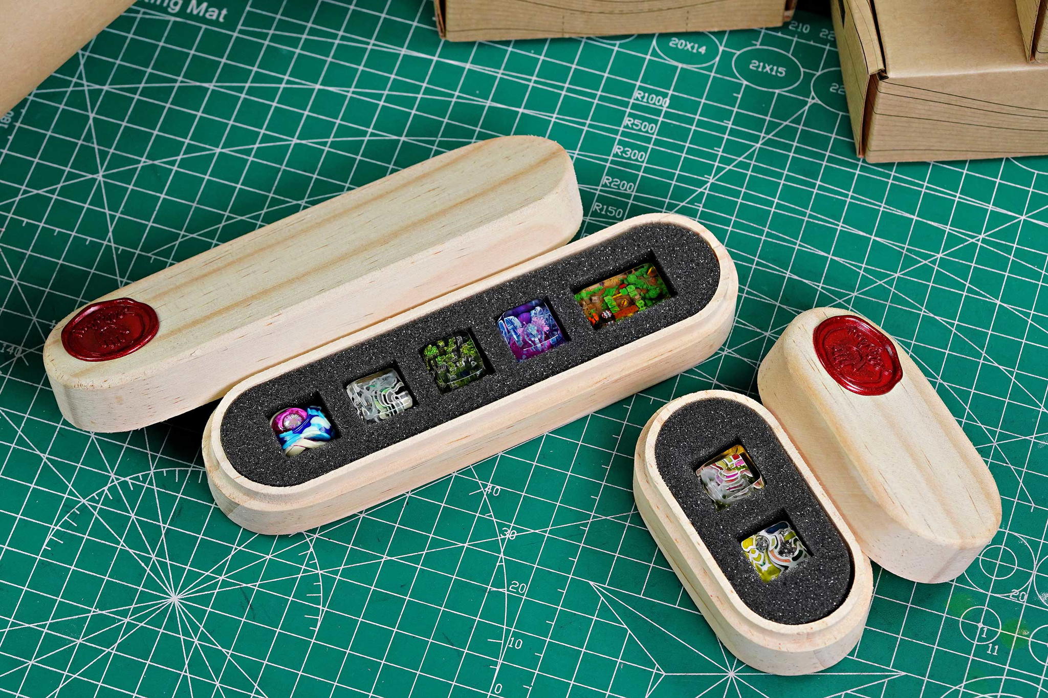 Another crucial step we take in the packaging improvement voyage this time is how many artisan keycaps can be packed in a box. In the past, one box can contain only one keycap, regardless of the key type. Henceforward, when you have compound orders, multiple Jelly Key crafts can be loaded in just a single package. We believe this would considerably enhance the space efficiency during delivery and also for you to keep the collection better.