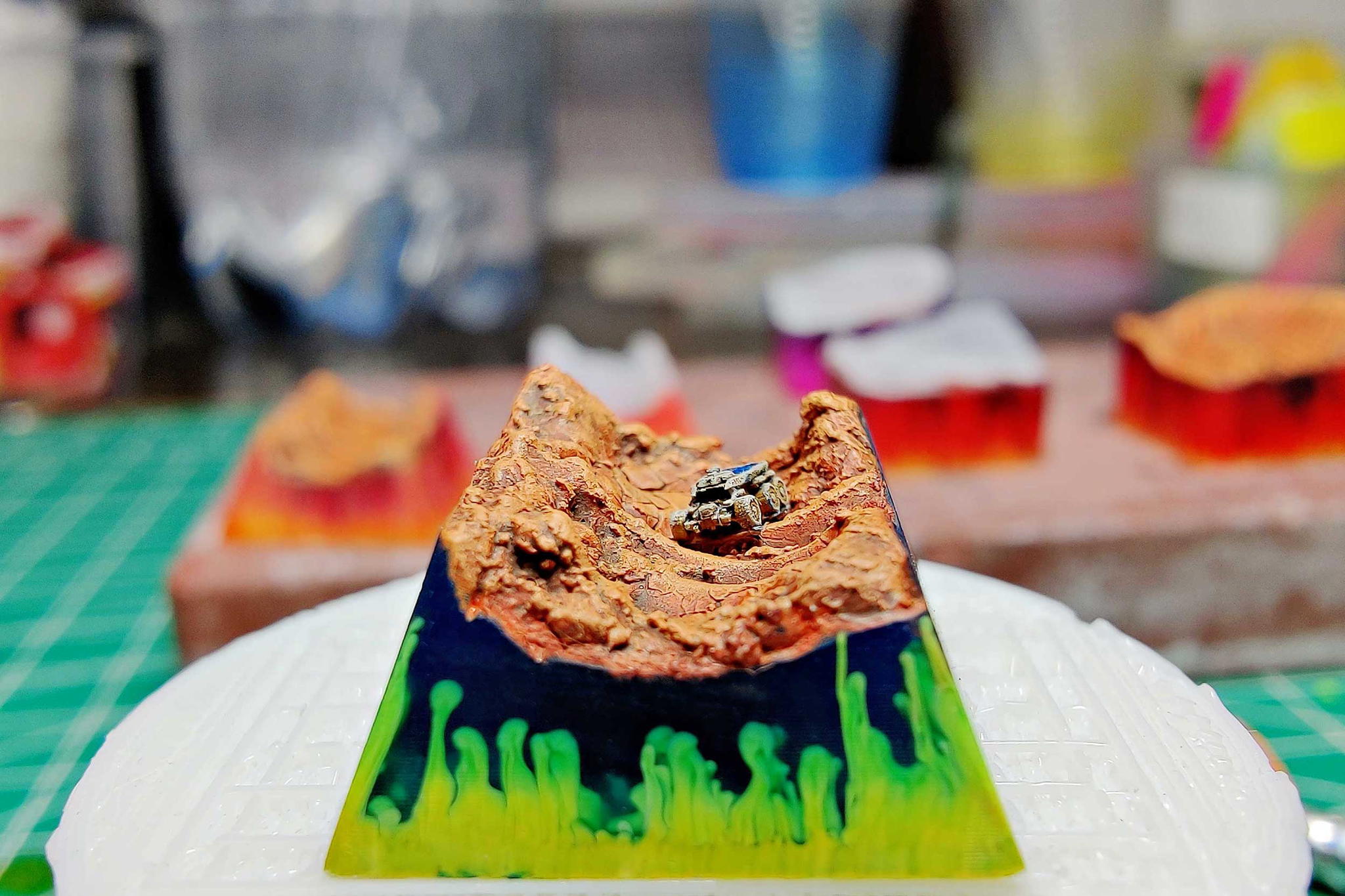 Our Butterscotch team is still producing these spectacular planets, and we are so excited to say that the first keycap batches of this collection have been sent to the shipping service already. Its production is in progress but we promise you, the whole team is working at their full capacity to have them ready for delivery. Our Jelly Key artists have to utilize their craftsman skills to the very best as this series is very challenging to make, considering a wide range of tiny details inside. To replicate these sophisticated pieces such as self-propelled vehicles, human outposts, energy stations in space, or especially the terrestrial planet’s surface, we have to try out many different materials to make them look as much realistic as possible.