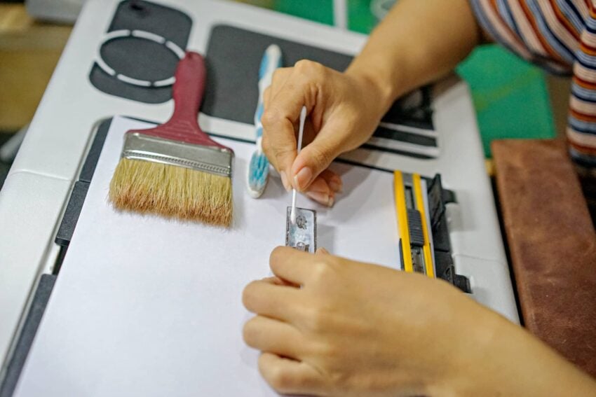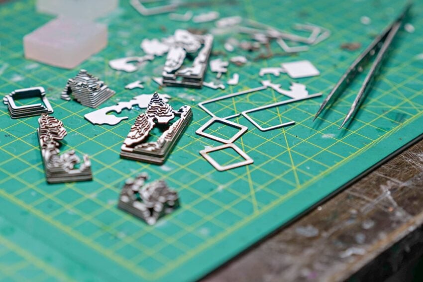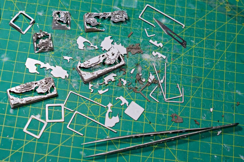 The topography design was first formed in the imagination, then we drew layer by layer in the 2D app, from the base to the top and down the bottom layer gradually. Then we sent the sheets of wood to have them laser cut for very tiny sharp shapes. Next step, laser cut pieces would be piled and stuck on each other in an order that our artisan maker had to spend 2 hours for one each topography. When applied this method from making a 1u cap to an Enter cap, we’re like restart everything from the beginning, to calculate the suitable size of the wooden bottom layers that they would fit in the size of enter cap edge.